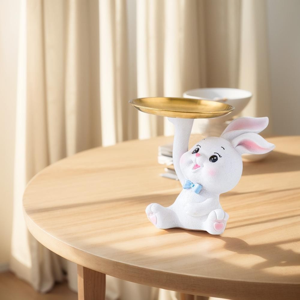 Free and fast shipping , shipping take up 1-7 Business Days 30 Day Return Accepted EASY PAYMENT via PayPal, Credit Card, PayPal Credit, Google Pay... Figurine Animal with Tray Resin White Small Modern Carved Free Stand Decor Item Description > > > Cute Rabbit/Cat Storage Tray Multifunctional Creative Figurines Ornaments Resin Rabbit Sculpture Key Tray Living Room Porch Desk Home Decoration Feature: 1. Excellent Material: Crafted from premium, environmentally friendly resin, our creative figurines ornaments stand out for their robustness, longevity, and resistance to daily wear. Their vibrant, gleaming colors enhance any room, while the smooth, refined texture ensures a touch of elegance. 1. Completely safe and non-toxic, they provide peace of mind with their odorless composition. 2. Clever Design: Featuring delightful rabbit and lazy cat motifs, our figurine tray infuses any space with energy and animation. The realistic and endearing depictions create a sense of warmth and harmony, introducing a distinct natural allure to your decor. 3. High Practicality: Beyond its artistic allure, this tray is immensely functional. Designed to neatly organize keys, jewelry, cosmetics, and other small essentials, it adds a layer of fun and practicality to your routine, making daily organization a delightful affair. 4. Artistic Aesthetics: Each piece is a testament to exceptional craftsmanship, with attention to detail that ensures smooth lines and impeccable finishes. Ideal for collecting or gifting, it reflects sophistication and a refined artistic sensibility, distinguishing the owner's taste for elegance and creative expression. 5. Versatile Application: Our statue candy dish enhances the aesthetic appeal and cozy ambiance of any room, whether it's the living room, bedroom, or study. Its compatibility with various decor styles, from modern minimalism to rustic and Scandinavian, makes it a versatile addition to your home, enriching the artistic atmosphere. Specification: Product material: resin + metal Product features: easy to clean, anti-corrosion and anti-rust, round and anti-scratch Scope of application: living room, study room Product size: Bow Tie Rabbit: 150*150*50.00mm/5.91x5.91x1.97Inch Sweater bunny: 200*180*140mm/7.87x7.09x5.51inch Sweater cat: 175*170*150mm/6.89x6.69x5.91inch Note: Due to the different monitor and light effect, the actual color of the item might be slightly different from the color showed on the pictures. Thank you! Please allow 1-2cm measuring deviation due to manual measurement. Package includes > > > 1 x Tray Ornaments Picture Show > > > REVIEWS The product came very well packaged. I'm very happy. thank you for everything. Seller strongly recommended. This is great! I definitely recommend! Product looks amazing Delivery was fast. Excellent seller, great communication. I advise everyone to buy it!