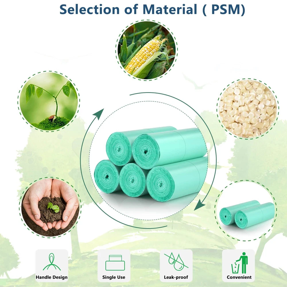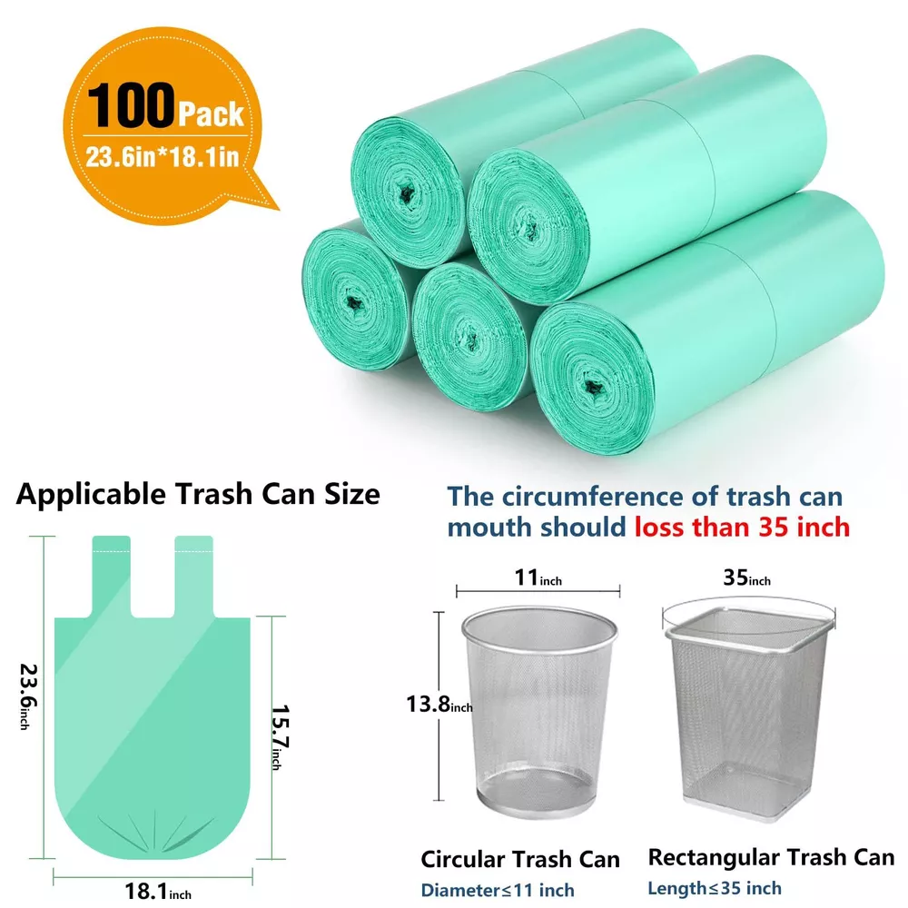 Biodegradable Garbage Bags: Our 4 gallon biodegradable trash bags with handles are made of Plastarch material(PSM), which is based on natural renewable plant starch extract. Small compost bags can be decomposed in industrial composting facilities without causing damage to the environment 15-20 Liter Capacity Small Trash Can Liners: The size of our 4 gal trash bags is 18 inches * 23.6 inches, 4 gal/15L, which fits round garbage cans with diameter ≤ 11”, height ≤ 13.8”; rectangular wastebaskets with perimeter ≤ 35” and height ≤ 13.8”. Our small trash bags 4 gallon are thick, sturdy and durable enough for cleaning daily rubbish but avoiding sharp stuffs Tear & Leak Resistant: Our 5 gallon trash bags have medium thickness with Star Seal Bottom helps to avoid from leaks, excellent tensile strength help to avoid from tears or rips. We ensure that you can carry without worry dirty water leak or trash fall off. They have been tested to withstand amaximum weight of 11 lb (5-6 kg), which are strong enough for daily life. In Terms Of Detail, The breakpoint design makes it easy to separate them and avoid the trouble of tearing Multi-purpose Biodegradable Bags: The 4 gallon compostable trash bags can be used for various types of trash around the house, living room, kitchen, bedroom, office, bathroom trash can liners, etc. From food wastes to baby diapers and even garden wastes. The compostable garbage bags will handle the wastes perfectly. Compared to plastic bags, these 4 gallon trash bags biodegradable are more suited to handle both organic and inorganic wastes Small Garbage Bags with Handles Design: small compostable bags 4 gallon have a sturdy handles that are designed for extra strength to safely lift, carry, tie and transport garbage and sanitary disposal with minimal effort. They are easy to close and effectively lock the bad smell inside the bag. These mini trash bags are translucent. It can help you identify the contents of the garbage so that sorting and recycling of it better