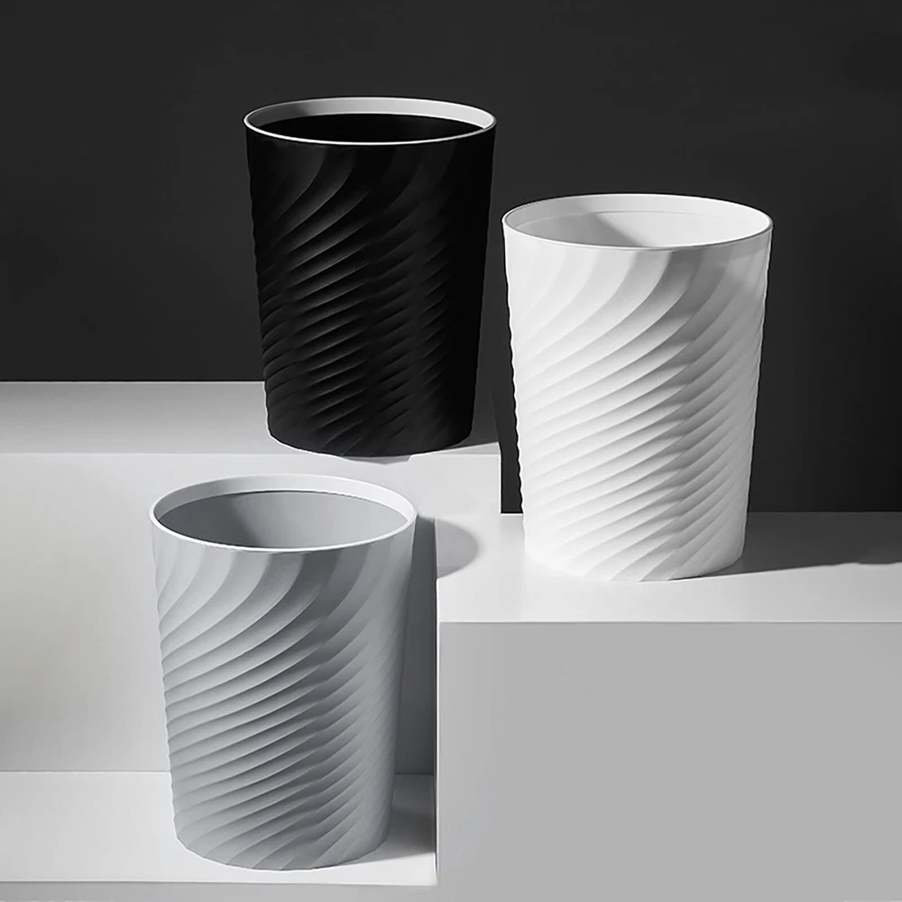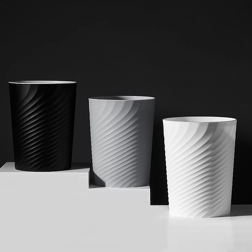 【Small Trash Can】Measures: 7.87" diameter x 10.04" high, 1.8 gallon/ 6.8 liter capacity.It works for small bathroom perfectly and is good quality. 【Small Compact Space】Screw thread shape design and look great, perfect for bathroom, office, bedroom, living room and other small spaces. Also great for college dorms, apartments and RVs. 【Premium Material】Small waste basket is made of durable plastic and will not chip, rust or dent. Easy to clean, just wipe with a damp cloth. 【Home Decorations】Bathroom trash can with a threaded design is simple and stylish, and can be used as a home decoration. The bottom is raised to reduce wear and increase service life. 【After Sale】HOLTPHIL Trash Can*NO-WORRIES-PURCHASE provided*---Any defective product will be fully refunded. If you have any questions about our small garbage can, please us, and we will help you solve the problem within 18 hours, thank you.