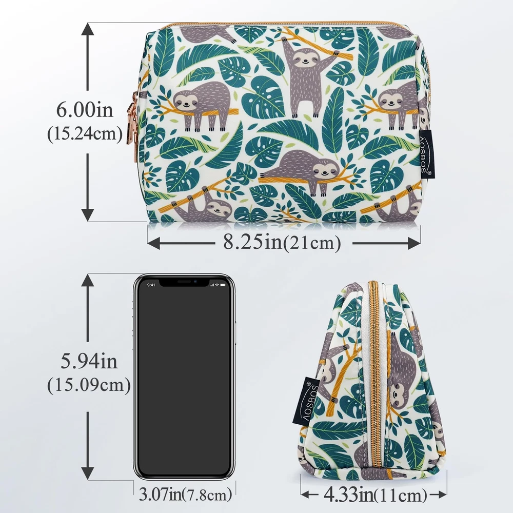 Aosbos Small Makeup Pouch Travel Size Makeup Bag Cosmetic Travel Bag Makeup Bags for Women Cosmetic Pouch Cosmetic Bags Makeup Case Make Up Bag for Purse Green Leaf Carefully selected materials, eliminating any attempts to pass off inferior quality as premium: High-quality outer fabric, soft and skin friendly lining, exquisite sewing and workmanship, and SBS metal zipper make this cosmetic bag more delicate and durable 8.25 × 4.33 × 5.90 IN: Large capacity main compartment can accommodate personal cosmetics necessary for travel. Two small pockets with elastic bands are used to store small items, and a transparent mesh bag is used to store makeup brushes, keep makeup bags in order Easy-access Design: This cosmetics bag has a unique feature that allows it to open wide, making it easy to put in or take out cosmetics. It's also very convenient to find small items stored within the bag A great gift for women, sisters on Christmas, teacher's day, Valentine's day and new year. Female travel companion, exquisite and large capacity, suitable for carrying in handbag and backpack, easy to carry 100% Satisfaction: We are always committed to your 100% satisfaction, If you are not completely satisfied with our products, please tell us and we will help you solve any problem within 24 hours Description 8.25 × 4.33 × 5.90 IN The SBS zipper of this small makeup bag is strong and durable There are Two small built-in pockets inside this cosmetic travel bag Mesh bag inside makeup organizer bag is designed to help find stored items The dazzling appearance, golden shiny zipper and soft silky material make you indulge in luxury. It is perfect as a gift for friends, sisters and women The middle layer is filled with high-density self restoring memory foam, which can keep the original shape of the cosmetic bag, and has a good shock absorption effect, playing a good role in protecting the cosmetics SHIPPING Domestic Buyers - We have confidence in our products, but if you are not fully satisfied please contact us within 30 days of purchase and you will get full refund. - We ship within 3 business days of payment, usually sooner - We offer FREE shipping on all orders! - We only ship to the lower 48 states, no APO/FPO addresses or PO Boxes allowed International buyers – please note: Import duties, taxes, and charges aren't included in the item price or postage cost. These charges are the buyer's responsibility. - Please check with your country's customs office to determine what these additional costs will be prior to bidding or buying. * Order Cancellation Policy ** You can return a product for up to 30 days from the date you purchased it. 1. The seller reserves the right to cancel the special case only due to eBay cancellation fee. 2. The decision of seller is the final. 3. The seller will respond to the cancellation request within 2 business days. Please wait for the result of cancellation. 4. In case the cancellation is not completed by some reasons, the buyer can follow the options below to get the refund. 4.1 The buyer can reject the item when it arrives. 4.2 The buyer can send the item back to the seller within 30 days If the buyer receives item (USA Shipment ONLY). The seller will provide the FREE return label to the buyer when the buyer opens " Return Item" case on eBay by using the reason as "Change my mind" ONLY. 5. When buyer has placed the order. The order will be processed and completed by automatic warehouse system within 5 minutes. In case that buyer sends the cancellation request after 5 minutes of placing the order, the request will be rejected. **Sending direct message to cancel the order is not allowed for every case.* Return Policy For the return case - If buyer would like to return the items for refund or replacement, please CONTACT SELLER to receive the free return label from seller. The refund or replacement will be processed with the tracking number of return label which is provided by seller only. The other ways of return which are not approved by seller will not be processed for the refund or replacement.