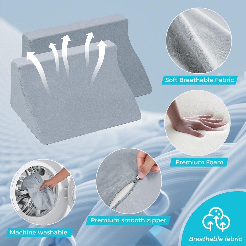 These small wedge pillows are a game-changer for better sleep and comfort! The gentle elevation helps with acid reflux and snoring while supporting proper spine alignment. I love how versatile they are—great for side sleepers, post-surgery recovery, pregnancy, or even wheelchair support. The two-pack is perfect for adjusting positions, and the firm yet soft foam keeps its shape all night. A must-have for anyone needing extra comfort!