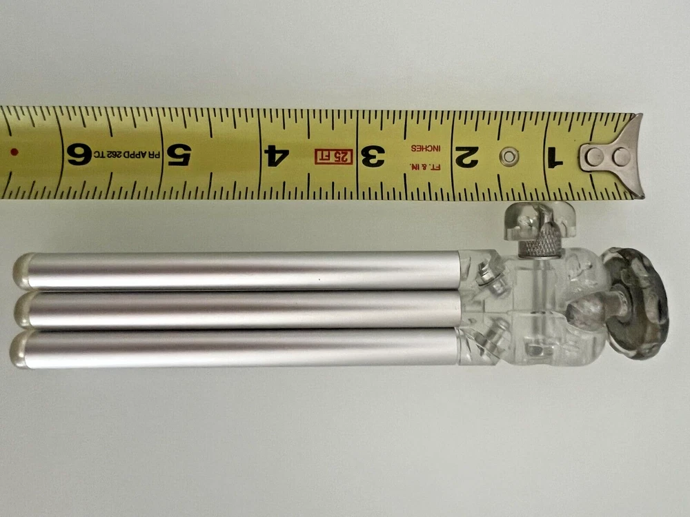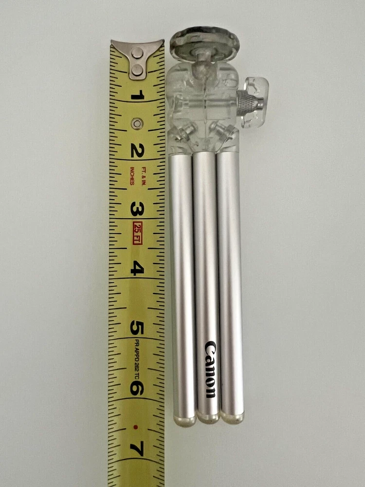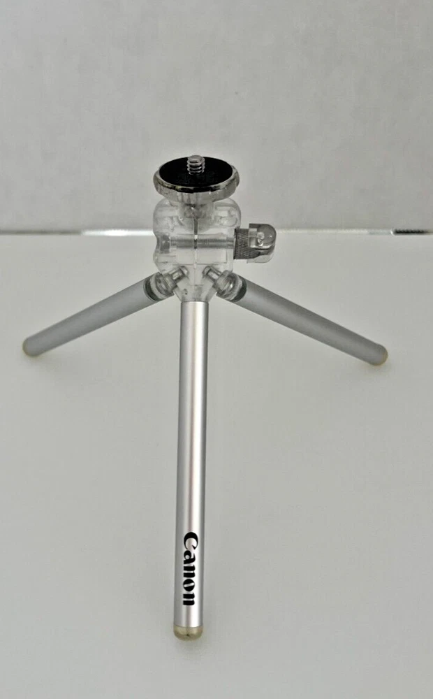 Item is compatible for digital cameras with screw point on the bottom Small compact for easy transport and set up. Side screw adjustment release and adjustement of angle Easy standing and folding from 3 point leg stand. Inspect all pictures before purchase. Tripod is as pictured.