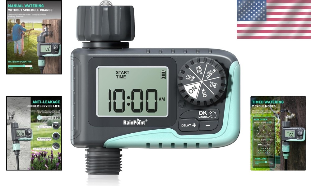 Automated Garden Hose Timer with Rain Delay & Customizable Settings - 1 Outlet ‹ › ‹ › ‹ › ‹ › ‹ › ‹ › ‹ › ‹ › ‹ › ‹ › Automated Garden Hose Timer with Rain Delay & Customizable Settings - 1 Outlet - Easy Programming Program - Rain Delay & Manual Mode - Big LCD Screen Display - Multi-Scene Hose Timer - Product Contains Water Timer*1 and User Manual*1 Features: Customizable watering settings: Start Time, Watering Duration, and Watering Frequency Rain Delay mode for 24, 48, or 72 hours Manual Mode for custom watering times from 1 min to 8 hrs Big LCD screen display for easy monitoring Can be used in the garden, lawn, yard, and other outdoor spaces Includes Water Timer and User Manual Benefits: Effortless customization for precise watering schedules Rain Delay feature to adapt to weather changes Manual Mode allows on-demand watering without disrupting programmed schedules Easy-to-read display for convenient monitoring Versatile usage in various outdoor settings Includes all necessary components for quick setup and use Why choose our Automated Garden Hose Timer? Ensure your garden and lawn are always watered efficiently and effectively with our Automated Garden Hose Timer. With customizable settings, rain delay feature, manual mode, and a large LCD screen display, this timer offers convenience and precision in managing your watering needs. From daily maintenance to adapting to weather conditions, this timer is a versatile tool for any outdoor space. Say goodbye to manual watering hassles and keep your plants healthy and happy with our Automated Garden Hose Timer. Order yours today! Shipping Free & Fast Shipping - We offer free shipping to most of the USA with a normal delivery time of 3-7 days. However, due to the current situation, additional delivery time (up to 3 weeks) may be required for some items. Alternative Carriers - We may use alternative carriers (e.g. USPS, FedEx, UPS, etc.) to ensure your package arrives safely and on time. Due to the use of multiple carriers, we are unable to provide a tracking number automatically. Handling Time - Orders are processed and shipped within 1-2 business days of receiving cleared payment. Shipping Restrictions - Shipping to Alaska, Hawaii, Puerto Rico, Guam, and other US territories may incur shipping charges or delivery restrictions. Please contact us before ordering, or your order can be refunded/cancelled. State Restrictions - There may be restrictions based on your state of purchase. For example, certain items may not be shipped to California due to state regulations. Contact for Tracking Updates - If you require tracking updates or have any concerns about the delivery of your order, please feel free to contact us, and we will be happy to assist you. Return 30-Day Hassle-Free Returns - We want you to be completely satisfied with your purchase. If you are not, you can return the item within 30 days of receiving it for a full refund or exchange. Easy Return Process - To start a return, simply contact us and we will provide you with a prepaid return shipping label and detailed instructions. Restocking Fee - There are no restocking fees for returns. However, the buyer is responsible for return shipping costs if the return is not due to a seller's error. Refund Processing Time - Refunds will be processed within 5 business days of receiving the returned item in its original condition. Payment We accept all major credit cards, PayPal, and Apple Pay for your convenience. Your payment information is secure and encrypted to ensure a safe and seamless transaction. Please complete your payment within 3 days of purchase to avoid any delays in shipping. Feedback Your feedback is extremely important to us. We strive to provide the best products and customer service possible. If you are satisfied with your purchase, please take a moment to leave us a positive review. If you have any concerns or issues with your order, please contact us before leaving negative feedback. We are committed to resolving any problems and ensuring your satisfaction. Contact Us If you have any questions or concerns, please feel free to reach out to our customer support team. You can contact us through the eBay messaging system. We are available Monday to Friday, 9:00 am to 5:00 pm EST, and we will do our best to respond to your inquiry within 24 hours. Thank you for supporting our small family business! Set Includes: Hose Features: Digital,Rain Delay,Manual,Programmable,Start Time Setting,Watering Frequency Setting,Rain Delay Function,Manual Watering Mode,Big LCD Screen Display Smart Home Protocol: Sprinkler Timer Smart Home Compatibility: Sprinkler Timer Suitable For: Garden,Lawn,Yard Material: Plastic Type: Tap/Hose Timer Brand: Unbranded Number of Zones: 1 Number of Watering Programs: Not Set Number of Outlets: 1 Model: Not Set MPN: Not Set Manufacturer Warranty: Not Set Threaded Connection: Not Set Watering Duration: Up to 3 hours Watering Frequency: Every 1-7 days Number of Items in Set: 1 Product Line: Not Set Control Style: Digital Power Source: Battery Color: Gray Item Length: Not Set Item Width: Not Set Battery Type: AAA Item Weight: 0.25 kilograms