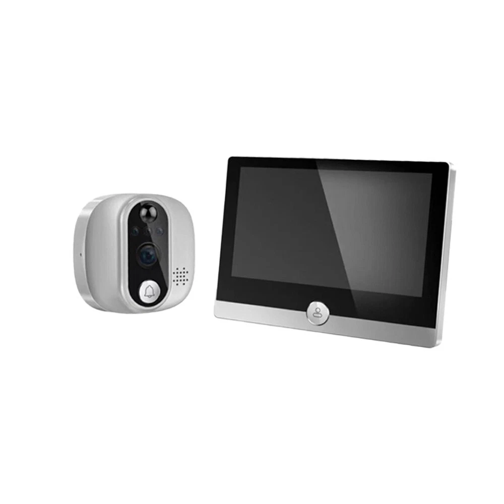 Brand: Unbranded/Generic storage: Support 32G memory card(maximum)(not included) suitable door holes: within 14-50mm(diameter), 35-120mm(door thickness ) Types: WiFi Doorbell Peephole Camera with monitor Support: remotely view, talk, take photos, record videos Location: Indoor Only Display Technology: LCD Features: Wi-Fi, Motion Detection, High Definition, 4.3 Inch Color Display, Smart APP Control, Infrared Night Vision & Two-way Audio, Easy to install, built-in rechargeable battery, built-in speaker and microphone, automatically switch, wide angle Color Mode: Color Day/B&W Night ASIN: 1WDV95OZVL Models: WiFi Peephole Viewer Video Doorbell Model: Smart Peephole Camera UPC: Does Not Apply MPN: Does not Apply Smart Home Protocol: Infrared gtin13: Does Not Apply Maximum Resolution: 1920x1080 Type: WiFi Video Doorbell Peephole Camera