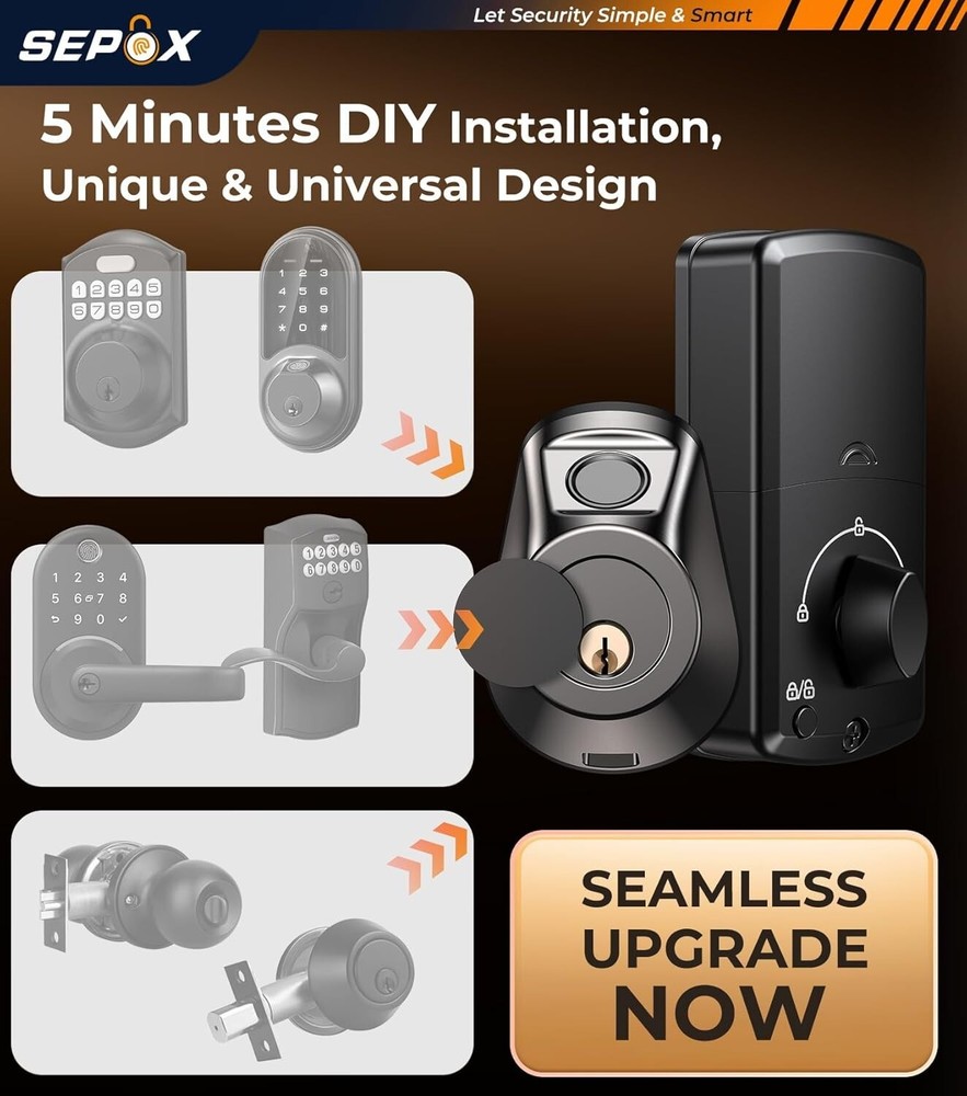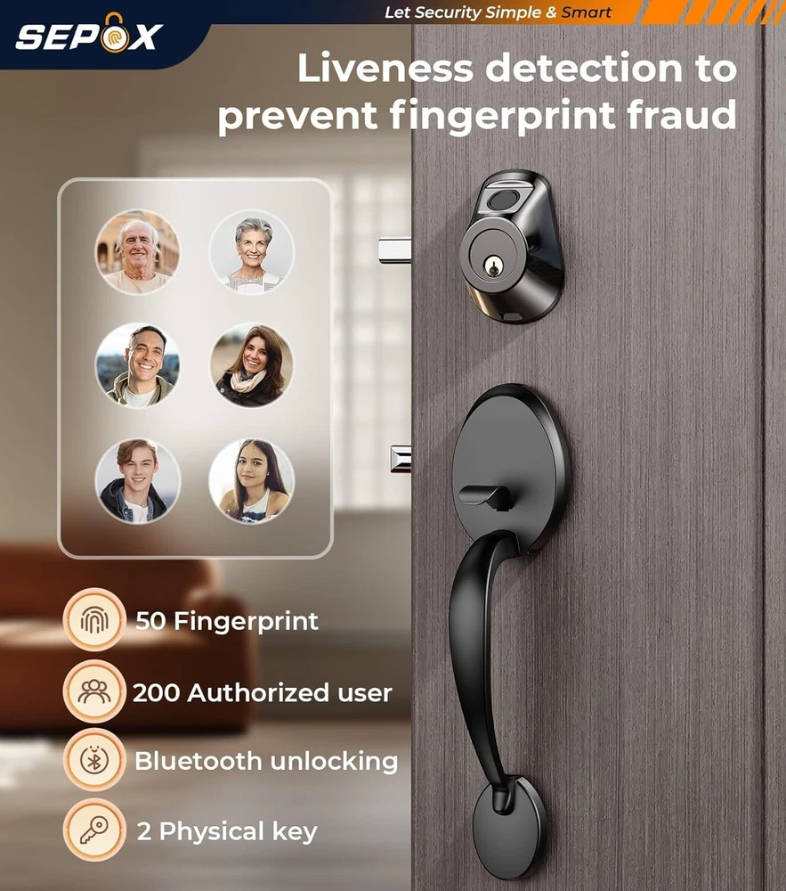 MULTIPLE UNLOCK METHODS FOR ULTIMATE CONVENIENCE AND SECURITY: π― Unlock in a flash! Fingerprint, Bluetooth, WiFi, and emergency key options for ultimate convenience and security. Fits homes, offices,Air bnb and more. HIGH-STRENGTH MATERIAL FOR UNMATCHED DURABILITY AND PROTECTION: γπͺ Built tough! Aerospace-grade aluminum alloy and IP45 weatherproof for unmatched durability and protection. Outdoor, Front door-ready. SMART HOME INTEGRATION FOR REMOTE CONTROL AND MANAGEMENT: π€ Smart home magic! Managed via Tuya or Smart Life app. Bluetooth & WiFi support. Control from anywhere. Supporting Apple iPhone, Android devices like Samsung, Motorola, Google, and So on... It supports Both Bluetooth and WiFi connectivity (Wifi gateway sold separately) EFFORTLESS INSTALLATION AND SETUP: π οΈ Install in a breeze! Fits most US standard doors without drilling. Easy setup. Follow the video guide. USER AUTHORIZATION FOR UP TO 200 USERS: π₯ Authorize up to 200 users! Secure access management via the app. Bluetooth access after authorization. LONG-LASTING BATTERY LIFE WITH TYPE-C EMERGENCY CHARGING PORT: π Long battery life! 8-11 months on 4 AA batteries. Low battery alert. Type-C emergency charging