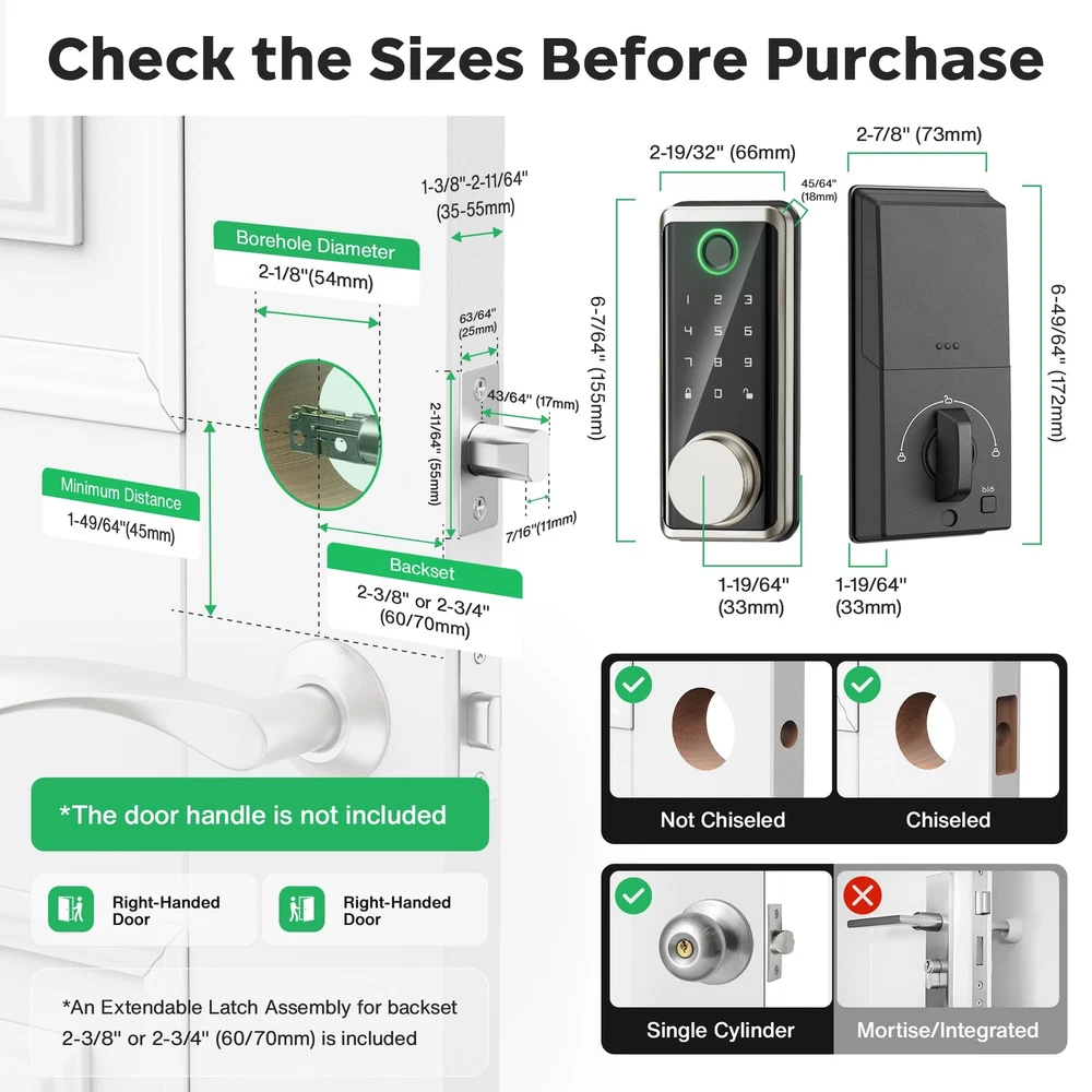 Sophia Keyless Entry Door Lock, Smart Auto Locks for Front Door & Key Fobs & Remote Control, Keypad Deadbolt Digital, Fingerprint Door Lock with Code, Cerraduras Inteligentes, IP68, Satin Nickel Description Features: Effortless Keyless EntryThe keyless entry door lock has multiple unlocking methods to get into your home, including fingerprint, password, IC card, NFC devices, Smart APP, and mechanical lock to ensure convenient entry. You will not be locked out or need to spend time searching pockets and bags. Smart ManagementYou can add & delete users, generate passwords for others, and view the unlocking records; Multiple smart devices can be controlled by one APP. A Tuya GATEWAY (SOLD SEPERATELY) IS REQUIRED FOR REMOTE CONTROL and checking real-time unlocking records Enhanced SecurityThe waterproof IP68 smart door lock has undergone rigorous extreme temperature testing and can withstand a usage environment of -4 to 122 F. The fingerprint door lock uses customized high-tech chips with accurate biometric recognition technology (please cover the entire fingerprint as much as possible when registering). Equipped with a curved screen with anti-peeping keypad, the keypad deadbolt has auto-locking, one-touch locking, and anti-theft alarm functions. Responsive & Accurate RecognitionThe front door lock with code uses customized high-tech chips, which is responsive to password and fingerprint verification. Built-in mature biometric technology - fingerprint recognition, the electronic door lock can accurately identify the user at the moment of pressing down the finger (less than 0.3S) after every edge of the fingerprint is fully recorded. Full Control with One APPUsing Tuya APP or Smart Life APP not only allows remote unlocking for visitors, or generate one-time, time sensitive, or permanent passwords sharing them with your visitors, but also enables remote viewing records of door lock unlocking and anti-theft alarms anytime & anywhere. Additionally, some functions of the dead bolt locks for exterior doors can be set by the Apps (such as adjusting the Extend Unlock(for auto-lock) and volume of automatic door locking). Fit to All DoorsThe smart deadbolt lock is compatible with both left and right handed doors. Automatically identify the unlocking direction after installation. Ideal for houses, Airbnb, apartments, offices, and hotels. Quick InstallationNo extra drilling needed. Just one Phillips screwdriver you can finish the installation the combination door lock within a few minutes. Please refer to the user manual and the QR codes for detailed installation instructions. Includes all accessories(cylinder*1, mechanical keys*2, IC card*2, screw kit*1, user manual*1, installation template*1). Cost-effective Solution for LandlordsEconomical and efficient solution for Airbnb hosts, apartment managers and house owners to seamlessly manage and monitor large number of digital door locks through a single application. No need to spend time handing over mechanical keys or key cards before visitors enter and exit the house. You'll Get 2-year Support and Lifetime Customer Service Product Details: Brand: SOPHIA Special Feature: Remote Control(Tuya WiFi Gateway Hub Sold Seperately), Auto-lock, NFC/Key FOB, Normally-open Mode, Remote Unlock, One-time Code, Scheduled Code, Anti-peeping, Anti-theft Alarm, Emergency Power Supply, One-Touch Lock, Scratch-Resistant, Back-Lit Keypad See more Lock Type: Biometric, Deadbolt, Combination Lock, Keypad Item dimensions L x W x H: 9.06 x 7 x 3.46 inches Material: Zinc Brand: SOPHIA Special Feature: Remote Control(Tuya WiFi Gateway Hub Sold Seperately), Auto-lock, NFC/Key FOB, Normally-open Mode, Remote Unlock, One-time Code, Scheduled Code, Anti-peeping, Anti-theft Alarm, Emergency Power Supply, One-Touch Lock, Scratch-Resistant, Back-Lit Keypad Lock Type: Biometric, Deadbolt, Combination Lock, Keypad Item dimensions L x W x H: 9.06 x 7 x 3.46 inches Material: Zinc Recommended Uses For Product: Office, Hotel/Airbnb, Apartment, Front Door (Tuya Smart Hub Sold Seperately) Style: Keyless Color: Satin Nickel Number of Pieces: 1 Finish Type: Nickel Included Components: smart lock*1, cylinder*1, mechanical keys*2, IC card*2, screw kit*1, user manual*1, installation template*1 Controller Type: Tuya Bluetooth Mesh Shape: Rectangular Control Method: App, Remote, Touch, Voice Connectivity Protocol: Tuya WiFi Gateway Hub Sold Seperately, 2.4GHZ Bluetooth Mesh Model Name: DK600-SN Manufacturer: SOPHIA Part Number: DK600-SN Item Weight: 2.66 pounds Product Dimensions: 9.06 x 7 x 3.46 inches Country of Origin: China Item model number: DK600-SN Finish: Nickel Special Features: Remote Control(Tuya WiFi Gateway Hub Sold Seperately), Auto-lock, NFC/Key FOB, Normally-open Mode, Remote Unlock, One-time Code, Scheduled Code, Anti-peeping, Anti-theft Alarm, Emergency Power Supply, One-Touch Lock, Scratch-Resistant, Back-Lit Keypad Batteries Included?: No Batteries Required?: Yes Date First Available: July 29, 2024 Handling We will ship all orders within 3 business days of payment. Delivery We do not ship outside of the Continental US. Feedback We take our reputation seriously, we buy and sell online, so we understand the value of trust. If you are unsatisfied with your order, please contact us and we will work with you to resolve it to your satisfaction.