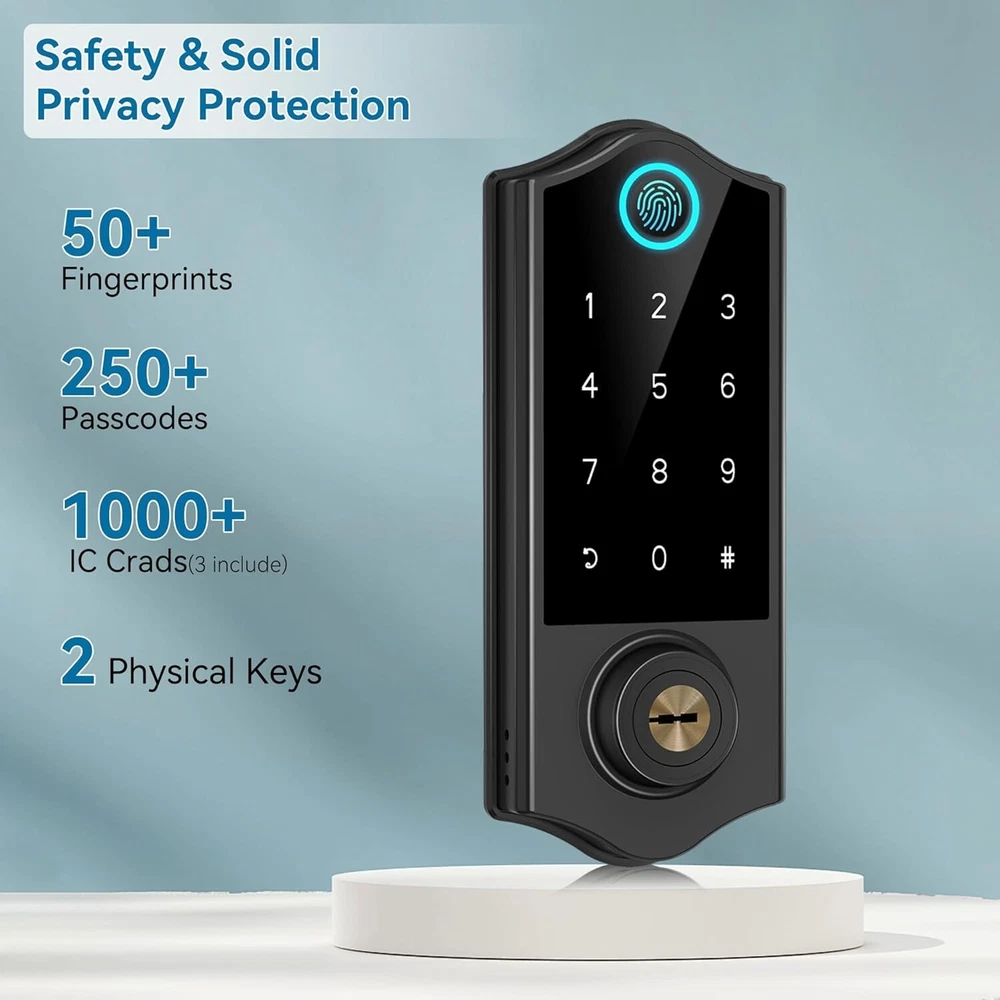 Biometric Deadbolt Lock with Touchscreen & Auto-Lock – Secure Home Solution ‹ › ‹ › ‹ › ‹ › ‹ › ‹ › ‹ › ‹ › ‹ › Biometric Deadbolt Lock with Touchscreen & Auto-Lock Your secure home solution awaits with our advanced Biometric Deadbolt Lock, a state-of-the-art locking system designed for ultimate convenience and security. Features: All-in-One Fingerprint Door Lock: Access your home via fingerprints, smartphone app, passcodes, IC cards, physical keys, or e-keys. Biometric Fingerprint Access: Instantly unlock your door with a quick fingerprint scan—goodbye to lost or copied keys! App Management: Generate and share one-time, permanent, scheduled, and recurring access codes, while managing access rights and viewing logs. Remote Control & Voice Control: Pair with Gateway (sold separately) for remote locking/unlocking via app; compatible with Alexa and Google Assistant. Enhanced Security: Features auto-lock, Anti Peeping password keypad, privacy mode, and silent mode to ensure peace of mind. Versatile Installation: Fits doors with thickness ranging from 1.38 inch to 1.97 inch (35 mm - 50 mm), accommodating both left and right handed doors. Benefits: Experience unparalleled convenience with keyless entry. Eliminate concerns about lost or stolen keys and access codes. Manage your home’s access effortlessly via a mobile app. Enhanced security features are designed to keep your home safe. Ideal for homeowners, Airbnb rentals, and those seeking modern security solutions. Why Choose Our Biometric Deadbolt Lock? Transform your home security with our next-generation Biometric Deadbolt Lock. Offering multiple access options and remote management, this sophisticated lock allows for seamless entry while maintaining the highest standards of safety. The robust design includes advanced security features, ensuring your home remains a sanctuary. Take control of your access management with user-friendly app connectivity and enjoy the peace of mind that accompanies cutting-edge technology. Elevate your home security today—secure your Biometric Deadbolt Lock with Touchscreen & Auto-Lock now! Shipping Free & Fast Shipping - We offer free shipping to most of the USA with a normal delivery time of 3-7 days. However, due to the current situation, additional delivery time (up to 3 weeks) may be required for some items. Alternative Carriers - We may use alternative carriers (e.g. USPS, FedEx, UPS, etc.) to ensure your package arrives safely and on time. Due to the use of multiple carriers, we are unable to provide a tracking number automatically. Handling Time - Orders are processed and shipped within 1-2 business days of receiving cleared payment. Shipping Restrictions - Shipping to Alaska, Hawaii, Puerto Rico, Guam, and other US territories may incur shipping charges or delivery restrictions. Please contact us before ordering, or your order can be refunded/cancelled. State Restrictions - There may be restrictions based on your state of purchase. For example, certain items may not be shipped to California due to state regulations. Contact for Tracking Updates - If you require tracking updates or have any concerns about the delivery of your order, please feel free to contact us, and we will be happy to assist you. Return 30-Day Hassle-Free Returns - We want you to be completely satisfied with your purchase. If you are not, you can return the item within 30 days of receiving it for a full refund or exchange. Easy Return Process - To start a return, simply contact us and we will provide you with a prepaid return shipping label and detailed instructions. Restocking Fee - There are no restocking fees for returns. However, the buyer is responsible for return shipping costs if the return is not due to a seller's error. Refund Processing Time - Refunds will be processed within 5 business days of receiving the returned item in its original condition. Payment We accept all major credit cards, PayPal, and Apple Pay for your convenience. Your payment information is secure and encrypted to ensure a safe and seamless transaction. Please complete your payment within 3 days of purchase to avoid any delays in shipping. Feedback Your feedback is extremely important to us. We strive to provide the best products and customer service possible. If you are satisfied with your purchase, please take a moment to leave us a positive review. If you have any concerns or issues with your order, please contact us before leaving negative feedback. We are committed to resolving any problems and ensuring your satisfaction. Contact Us If you have any questions or concerns, please feel free to reach out to our customer support team. You can contact us through the eBay messaging system. We are available Monday to Friday, 9:00 am to 5:00 pm EST, and we will do our best to respond to your inquiry within 24 hours. Buy it now and enjoy a pleasant shopping experience! UPC: Not Set Model: Not Set Unit Quantity: 4.51 lb Material: Zinc Suitable For: Front Door,Garage Door,Side Door,Back Door,New Home,Apartment,Airbnb,Rental,Vacation House,Gifts for Men,Gifts for Women,Gifts for Wife,Gifts for Husband,Christmas,Family Mounting: Universal Features: Anti-Peeping Password,Passcode Unlock,Weather Resistant,Auto-Lock,One-Touch Lock Items Included: Door Handlesets,User Manual,Screw Accessories,3 Fobs,2 Keys Brand: Unbranded Type: Deadbolt Color: Black Finish: Polished Item Height: Not Set Throw Length: Not Set Item Width: Not Set Cross Bore Diameter: 2.5 in MPN: Not Set Number in Pack: 4 Style: Not Set Item Depth: 4 in Country/Region of Manufacture: Not Set Door Handing: Universal/Reversible Item Weight: 4.51 lb Manufacturer Warranty: Not Set ANSI Grade: ANSI Grade 3 (Good) Unit Type: lb Fixings Supplied: Not Set