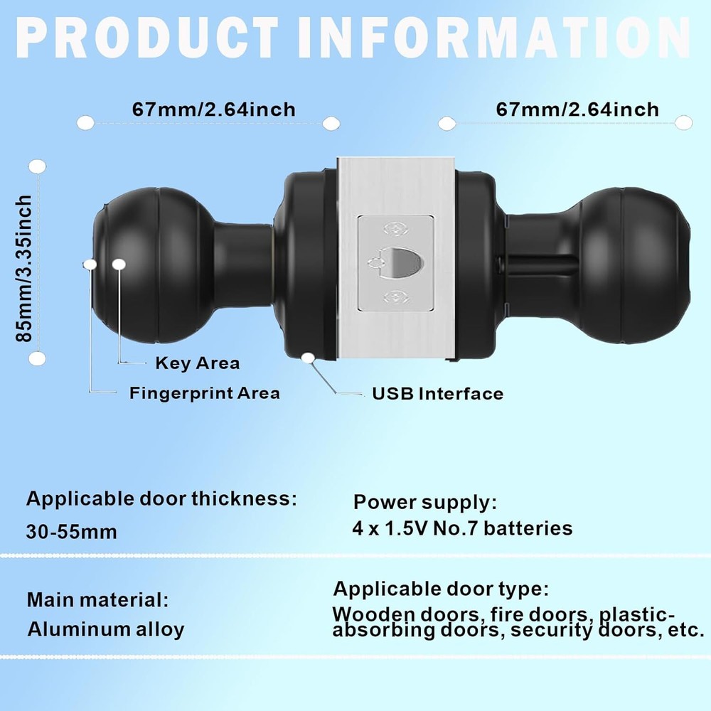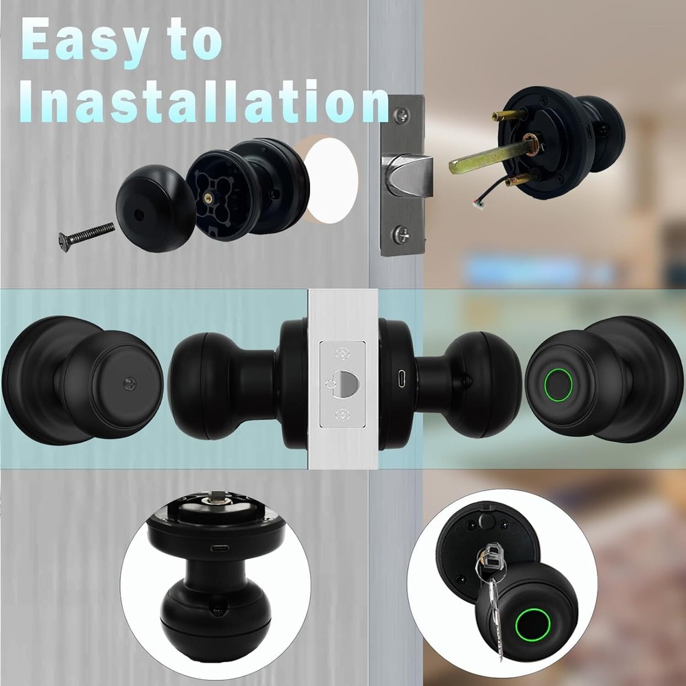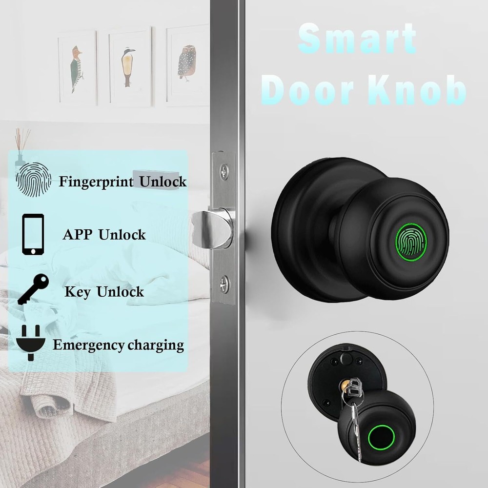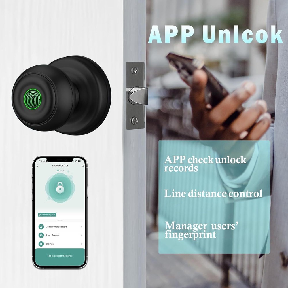 Biometric Door Lock Fingerprint Door Knob with App Control Smart Door Lock 3 in 1 Smart Door Lock: Smart door lock has a fingerprint unlocking, APP unlocking, key unlocking 3 unlocking methods & 3 in 1 perfect fingerprint smart door lock smart door handle! Intelligent Life: A key fingerprint door lock supports APP control, check the unlocking record through APP, more secure unlocking, semiconductor fingerprint sensor allows you to quickly access fingerprint management, up to 20 fingerprints, intelligent security technology will guard you and your family's safety! Premium Design & High Quality Material: Biometric door lock is made of high quality aluminum alloy material, it is clear, smooth and easy to clean, and with classic door handle design, it also adds fingerprint lock and APP unlock function, it is the ideal choice of smart door lock for bedroom door, office, hotel, apartment! Easy Installation: The smart door handle door lock can be easily installed in minutes with a screwdriver, we have detailed installation instructions, very easy to install, fits most US doors, meets your every need! Note: The smart door lock is suitable for wooden doors between 30-55mm, fire doors, security doors, etc. 4 AAA batteries are required for installation, when you low battery mode after the USB interface can also be used for emergency power supply, but please note that do not charge, replace the batteries again, if there are other problems feel free to consult us!