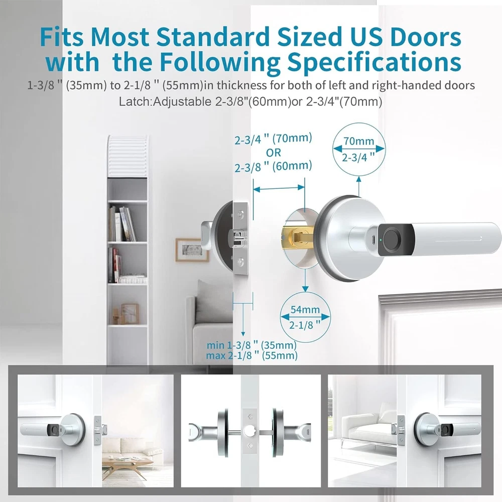 Biometric Fingerprint Door Lock with App Control - Smart Security Solution < class="slides"> ‹ › ‹ › ‹ › ‹ › ‹ › ‹ › ‹ › ‹ › ‹ › Biometric Fingerprint Door Lock with App Control Experience the ultimate in home security with our advanced Biometric Fingerprint Door Lock, smartly designed to offer you an unparalleled level of convenience. Features: APP Control for All: Effortlessly manage your door lock through a dedicated app, allowing you to unlock the door, manage users, add or remove fingerprints, set passage mode, and silence notifications – all at your fingertips. 3 Ways to Unlock: Enjoy the flexibility of APP unlock, fingerprint unlock, and a mechanical key as a reliable backup. Forgetting your key is no longer a concern! Upgraded Fingerprint Sensor: Enhanced with a 360° fingerprint reader, this lock can store up to 100 fingerprints, boasting a 98.5% recognition accuracy. Unlock your door within a swift 0.3 seconds, thanks to a 35% larger sensor area for exceptional stability and accuracy. DIY Installation: This lock fits most standard single-cylinder US doors with a hassle-free installation process. Tools are included, and no extra drilling is required. Compatible door thickness ranges from 1-3/8" (35mm) to 2-3/16" (55mm), adjustable latch at either 2-3/8" (60mm) or 2-3/4" (70mm). Buy with Confidence: Enjoy peace of mind with a 12- and free lifetime technical support. Our detailed installation guide and straightforward instructions ensure a seamless setup experience. Why Choose Our Biometric Fingerprint Door Lock? Unlock the door to a smarter, safer future with our state-of-the-art fingerprint door lock. Crafted for optimal convenience, this smart lock integrates effortlessly with your lifestyle, ensuring a secure environment without the hassle of traditional keys. Elevate your home security and experience advanced technology at your fingertips – order your Biometric Fingerprint Door Lock today and step into the future of smart living! Shipping Free & Fast Shipping - We offer free shipping to most of the USA with a normal delivery time of 3-7 days. However, due to the current situation, additional delivery time (up to 3 weeks) may be required for some items. Alternative Carriers - We may use alternative carriers (e.g. USPS, FedEx, UPS, etc.) to ensure your package arrives safely and on time. Due to the use of multiple carriers, we are unable to provide a tracking number automatically. Handling Time - Orders are processed and shipped within 1-2 business days of receiving cleared payment. Shipping Restrictions - Shipping to Alaska, Hawaii, Puerto Rico, Guam, and other US territories may incur shipping charges or delivery restrictions. Please contact us before ordering, or your order can be refunded/cancelled. State Restrictions - There may be restrictions based on your state of purchase. For example, certain items may not be shipped to California due to state regulations. Contact for Tracking Updates - If you require tracking updates or have any concerns about the delivery of your order, please feel free to contact us, and we will be happy to assist you. Return 30-Day Hassle-Free Returns - We want you to be completely satisfied with your purchase. If you are not, you can return the item within 30 days of receiving it for a full refund or exchange. Easy Return Process - To start a return, simply contact us and we will provide you with a prepaid return shipping label and detailed instructions. Restocking Fee - There are no restocking fees for returns. However, the buyer is responsible for return shipping costs if the return is not due to a seller's error. Refund Processing Time - Refunds will be processed within 5 business days of receiving the returned item in its condition. Payment We accept all major credit cards, PayPal, and Apple Pay for your convenience. Your payment information is secure and encrypted to ensure a safe and seamless transaction. Please complete your payment within 3 days of purchase to avoid any delays in shipping. Feedback Your feedback is extremely important to us. We strive to provide the best products and customer service possible. If you are satisfied with your purchase, please take a moment to leave us a positive review. If you have any concerns or issues with your order, please contact us before leaving negative feedback. We are committed to resolving any problems and ensuring your satisfaction. Contact Us If you have any questions or concerns, please feel free to out to our customer support team. You can contact us through the eBay messaging system. We are available Monday to Friday, 9:00 am to 5:00 pm EST, and we will do our best to respond to your inquiry within 24 hours. Buy it now and enjoy a pleasant shopping experience! Model: Smart Fingerprint Door Lock Unit Quantity: 1 Material: Zinc,Zinc Alloy Suitable For: Interior/Room Door,Bedroom Door,Office Door,Apartment Door,Airbnb Door Mounting: Universal Features: Biometric,APP Control,Fingerprint Unlock,Mechanical Key Backup,Quiet Mode,Passage Mode,User Management,Fast Recognition Items Included: Main Parts,Front Handle,Back Handle,Single Latch,Strike Plate,2 Keys,Square Cotter,2 Spiral Tubes,Screws Type: Fingerprint Door Lock Color: Silver Finish: Painted Cross Bore Diameter: 2.5 in Number in Pack: 1 Style: Modern Item Depth: 1.95 in Door Handing: Universal/Reversible Item Weight: 1.9 lb ANSI Grade: ANSI Grade 2 (Better) Unit Type: Unit