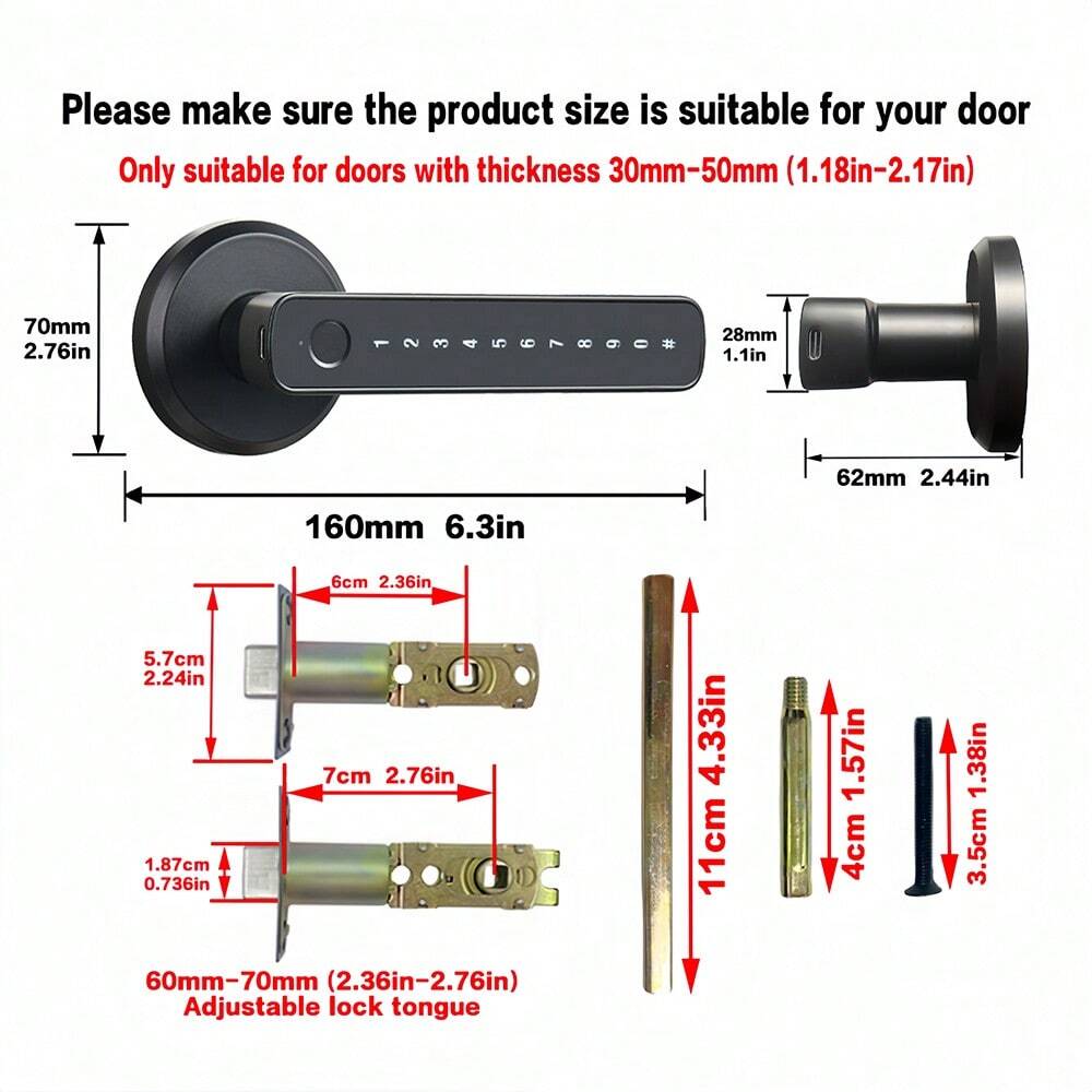 Color: Black Battery: AAA x4 (battery not included) Function: APP Bluetooth unlock, fingerprint unlock, password unlock, key unlock Accessories: small single tongue lock body x1, screw bag x1, spare key x2 Please confirm whether the product size is suitable for your door before placing an order Smart Door Lock, Biometric Fingerprint Lock, Multiple Unlocking Methods, Suitable For Bedrooms, Passages, Hotels, Apartments, Etc. Color: Black Power Supply: Battery Powered(Others Battery) Material: Iron Batteries Included: No