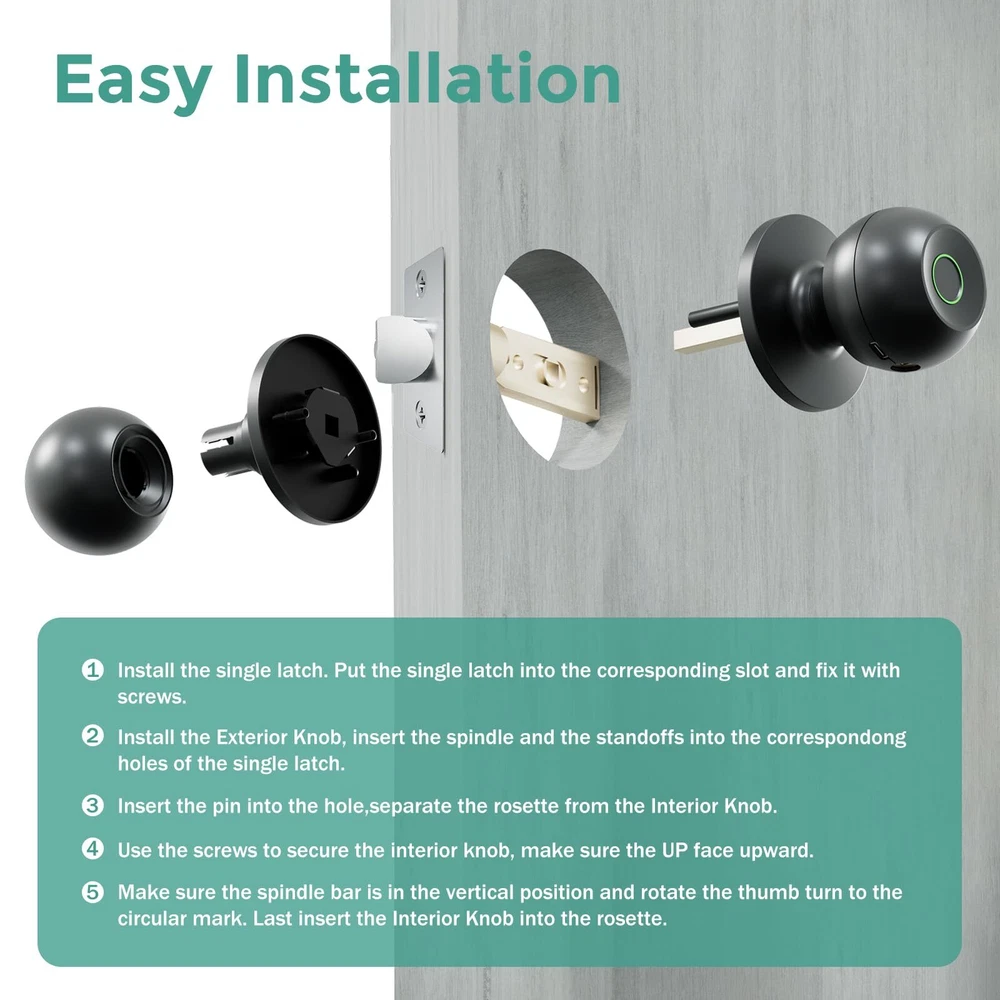 DINSTECH Biometric Door Lock, Rechargeable Fingerprint Lock with App Control, Smart Door Knob for Bedrooms, Offices, Hotels 【3 in 1 Unlock Ways】The smart door knob has 3 unlock ways, such as fingerprint unlock, App control, emergency back-up keys, is a perfect fingerprint door lock to get keyless entry door lock. 【Rechargeable & Emergency Unlock】The bluetooth lock no need to purchase batteries repeatedly, you can use Type-C charge the smart door lock to unlock When the batteries is out of power. One year product warranty from the date of purchase and lifetime customer support. Please feel free to contact us if you have any problem. (Note: Only supports USB A-Type-C charging cable, does not support fast charging. Please charge before use.) 【Smarter, Convenient & Securer】The fingerprint door handle door lock support App control, which can easily get fingerprint manage. With bluetooth, you can unlock with your phone. You can check operate records, auto lock, passage mode, privacy mode, help you creat a smarter and much convenient life, keeps your home secure. 【Classic upgrade design】The Smart door handle continues the classical door knob design, but it adds fingerprint lock function and modern app control. It is a very ideal fingerprint door knob smart lock for bedroom door, office, apartments, hotels, garages. 【Easy to Install】The fingerprint door knob can be easily installed with a screwdriver within minutes. The biometric door lock fits most US door, easily replace with existing door locks. We offer detail installations steps and videos for you. SHIPPING Domestic Buyers - We ship within 3 business days of payment, usually sooner - We offer FREE shipping on all orders! - We only ship to the lower 48 states, no APO/FPO addresses or PO Boxes allowed - We have confidence in our products, but if you are not fully satisfied please contact us within 30 days of purchase and you will get full refund. International buyers – please note: Import duties, taxes, and charges aren't included in the item price or postage cost. These charges are the buyer's responsibility. - Please check with your country's customs office to determine what these additional costs will be prior to bidding or buying. * Order Cancellation Policy ** You can return a product for up to 30 days from the date you purchased it. 1. The seller reserves the right to cancel the special case only due to eBay cancellation fee. 2. The decision of seller is the final. 3. The seller will respond to the cancellation request within 2 business days. Please wait for the result of cancellation. 4. In case the cancellation is not completed by some reasons, the buyer can follow the options below to get the refund. 4.1 The buyer can reject the item when it arrives. 4.2 The buyer can send the item back to the seller within 30 days If the buyer receives item (USA Shipment ONLY). The seller will provide the FREE return label to the buyer when the buyer opens " Return Item" case on eBay by using the reason as "Change my mind" ONLY. 5. When buyer has placed the order. The order will be processed and completed by automatic warehouse system within 5 minutes. In case that buyer sends the cancellation request after 5 minutes of placing the order, the request will be rejected. **Sending direct message to cancel the order is not allowed for every case.* Return Policy For the return case - If buyer would like to return the items for refund or replacement, please CONTACT SELLER to receive the free return label from seller. The refund or replacement will be processed with the tracking number of return label which is provided by seller only. The other ways of return which are not approved by seller will not be processed for the refund or replacement.