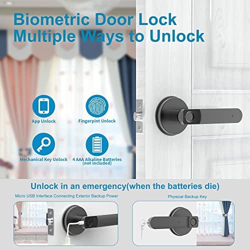 Return Policy Fast Delivery Trusted seller Biometric Door Lock with Smart APP Fingerprint Knob Remote Control with APP Smart Door Knob for Home/Bedroom/Office/Apartment/Airbnb Black Product Description APP Control for All: fingerprint door lock supports APP full control, including APP unlock, user management, fingerprint add or remove, passage mode and silence mode setting. Bring you a much more convenient and smarter life 3 Ways to Unlock:Advanced 3-in-1 Biometric Door Lock. APP Unlock and Fingerprint Unlock - You don't need to carry the key with you or worry about finding it everyw, the mechanical key unlocks as a backup (Please put at least 1 key in the available place in case of emergency such as the battery runs out) Upgraded Fingerprint Sensor:The smart door knob is equipped with an upgraded 360° fingerprint reader, which supports storage of up to 100 sets of fingerprints, with a recognition accuracy rate of up to 98.5%, and recognizes your fingerprint within 0.3 second, and the area of the fingerprint sensor is increased by 35% to enable recognition more accurate and stable DIY installation:Fits most standard single-cylinder US doors. The simple installation takes minutes with a screwdriver(included). No extra drilling. Door thickness: between1-3/8" (35mm) to 2-3/16"(55mm), adjustable latch 2-3/8"(60mm) or 2-3/4"(70mm). Please check your door size before purchase Buy with Confidence : Your satisfaction is our greatest joy. We not only provide detailed installation guide and clear user instruction but also 12 months warranty and free life-time technical support. If you have any questions, please feel free to contact customer service Shipping Returns Payment Shipping Shipping is FREE to all addresses other than APO/PO boxes in the lower 48 states. All our stock ships from US-based warehouses. Shipped via USPS or UPS (depending on location and package weight) Unless stated otherwise, all orders will ship within 24-72 hours of your payment being processed. Check our feedback to see the great reviews of FAST shipping we offer. Returns Seller does not accept returns Payment We currently accept payment via eBay managed payments only. Once payment is cleared, we will dispatch your shipment within 1-3 business days. Please refer to the "Shipping" tab for more information regarding shipping speed to your destination.