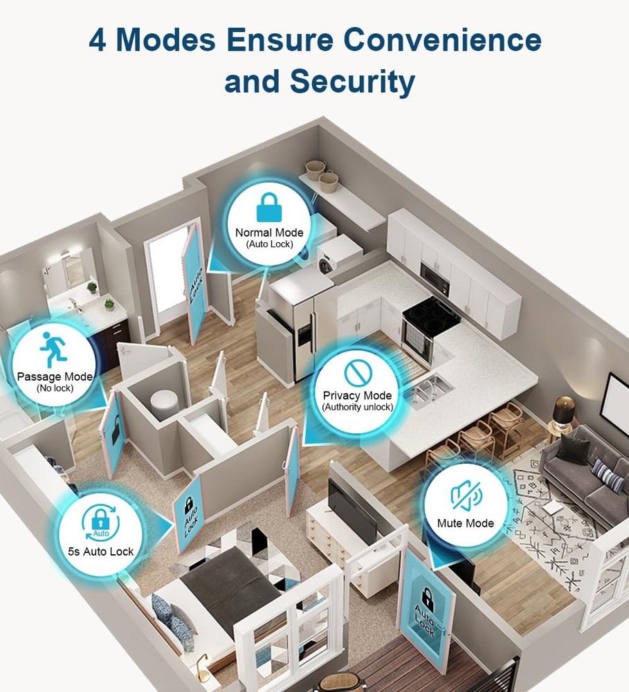 Fingerprint Door Lock, Smart Fingerprint Door Knob with Lock, Biometric Door Lock with App Control & Key, Keyless Thumbprint Entry Door Lock for Bedroom, Front Door, Home, Apartment Office-Silver 3-IN-1 BIOMETRIC DOOR KNOB: The ultimate security solution for your smart home or office. Whether you prefer the convenience of a thumbprint door knob, the security of App control, or the reliability of traditional keys, the smart door knob meets your need. Great fingerprint door lock for bedroom, living room, apartment etc. THREE MODES FINGERPRINT DOOR KNOB: Designed to provide convenience and enhanced privacy to homeowners. Easily switch modes by rotating your thumbprint around the smart door knob. The modes are passage mode, entrance mode, and privacy mode. Perfect bedroom door knobs with lock to keep unwanted guests like roommates or kids from entering your peaceful space. SMART AND CONVENIENT: finger print door Knobs come with an app (Detailed in the manual) to manage fingerprints, view unlocking records, lock/unlock and privacy mode to help create smarter door locks for bedrooms. Note: App Control within Bluetooth Range. If you want Wi-Fi control, need a separately purchased gateway. Whether you own a hotel or Airbnb, you can grant temporary access to guests and revoke it easily, all from your smartphone. SECURITY DESIGN DOOR LOCKS: The biometric door knob with lock blends style and functionality. It can recognize your fingerprints, store 20 fingerprints, and 5s Auto locking feature to ensure your home is safe. Fingerprints are stored locally and not uploaded to the cloud to ensure your family's privacy. This keyless entry door lock also features a visual power display and a low-battery alarm function. Note that the battery is not removable and life may vary depending on how often the biometric door lock is used. Please check the dimensions before purchasing the smart lock. RECHARGEABLE & EASY INSTALLATION: The fingerprint door lock has a built-in 400mAh rechargeable battery that takes 3 to 4 hours to charge fully(Need to use USBA-TypeC cable). The door lock is easy to install with a screwdriver and fits most US doors. Tips: When install interior knob, both Exterior and Interior Knobs have to be inserted according to the 'UP' sign on the top so that they can stay in place. And the spindle bar is in the vertical position. The thumb turn adjustment arrow points to the center dot and the 'UP' sign, then the arrow is inserted upward on the mounting, you can use a little force to get the rear lock completely in.