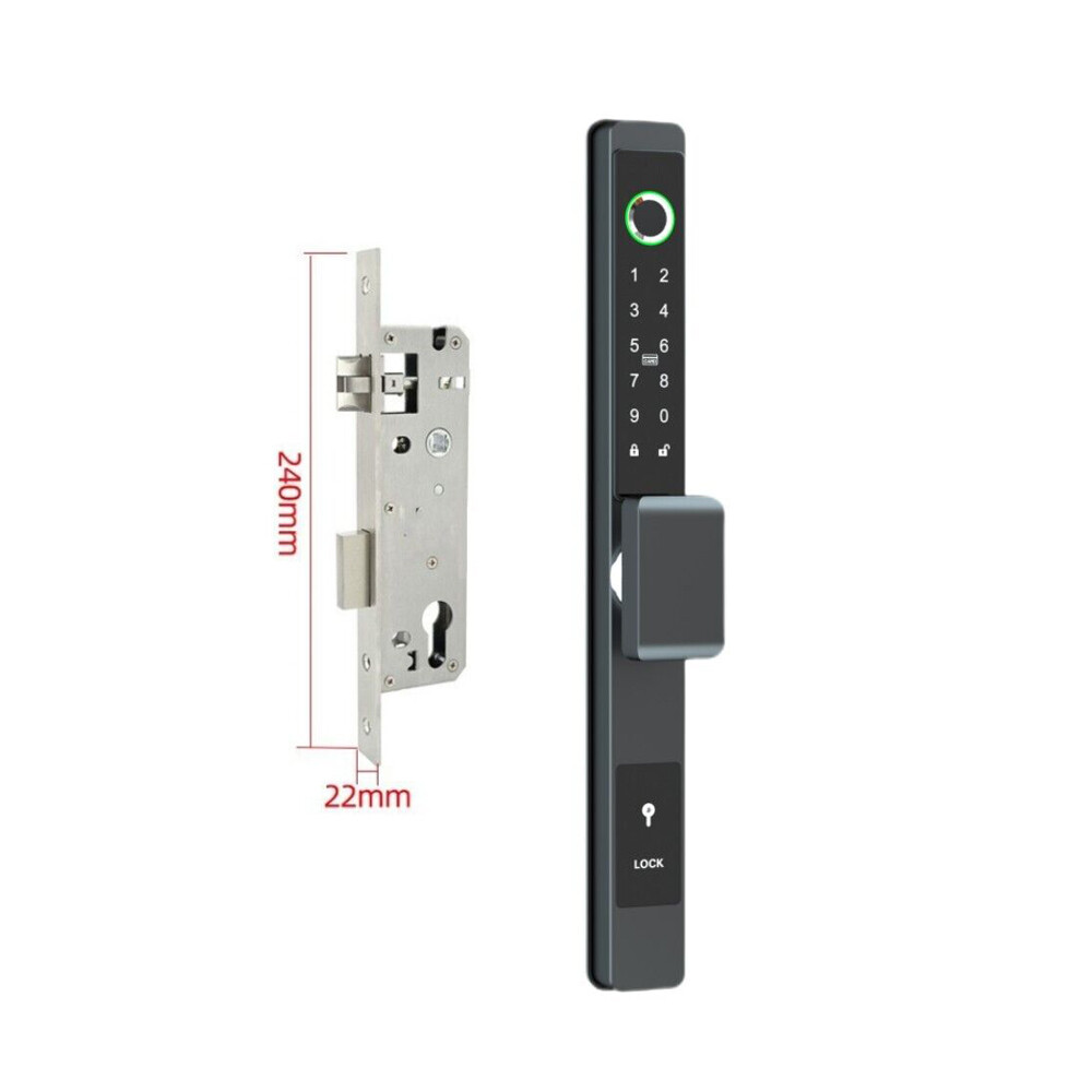 Specifications Main materials:Insulating aluminum alloy Main board adopts Financial-grade security chip Original bio-semiconductor fingerprint scanner imported from Sweden. Modern fashion touchscreen panel. Changeable function between passage lock and household lock. Dry finger can use the fingerprint lock normally. 9V batteries backup power interface. Low voltage alarm function. Unlock ways: fingerprint + code + card + key+app Fingerprint collected time: <1s. FAR: <0.00001%. FRR: <0.01%. Capacity: 250pcs fingerprints + 1000 cards + 250 group codes. Available cards: Mifare1 IC/S50 card Working Temperature: 0 °C ~ + 70 °C Static current/Dynamic current :< 65μA/<350mA. Power supply: 6V (4*1.5V AA alkaline batteries). Battery life: normally opening door for 50,000 times Size:316mmx31mmx19mm App software:TTLock app