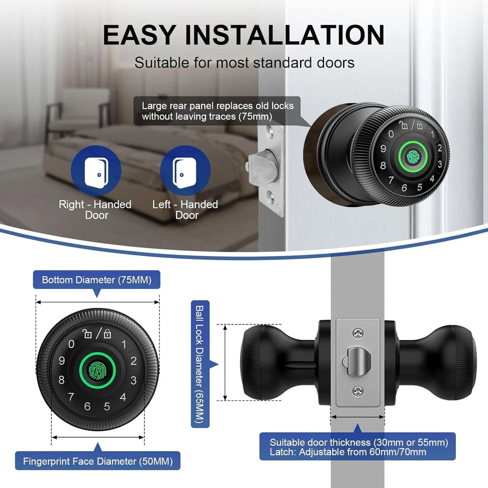 Biometric Keyless Entry Door Lock with Emergency USB Charging - Modern Black ‹ › ‹ › ‹ › ‹ › ‹ › ‹ › ‹ › ‹ › ‹ › Biometric Keyless Entry Door Lock with Emergency USB Charging - Modern Black Features: 4-IN-1 UNLOCK WAYS: Offering flexibility with fingerprint unlock, App control, emergency backup keys, and password button unlock. UPGRADED BIOMETRIC DOOR KNOB: With a fingerprint resolution of 508DPI and an incredible false recognition rate of <0.001%, it recognizes your fingerprint in just 0.1 seconds, capable of storing up to 100 fingerprints and 100 password combinations. AUTO LOCK & SAFETY PROTECTION: Features a 5-second automatic locking function, one-piece locking function, anti-peeping password lock, pass mode, low battery alarm function, and one-touch door opening for ultimate security. EMERGENCY CHARGING: Powered by 4 AA alkaline batteries (not included), and in case of low power, utilize the built-in Type-C port for emergency unlocking (for emergency use, not rechargeable). DURABLE & EASY INSTALLATION: Fits most American doors with a door thickness of 35-55mm, and an adjustable distance from the door edge to the handle hole of 60-70mm, easily installable with a screwdriver in minutes. Why Choose Our Biometric Keyless Entry Door Lock? Elevate the security of your home with our state-of-the-art Biometric Keyless Entry Door Lock. Designed for modern living, it offers an unparalleled combination of convenience, safety, and aesthetic appeal. The ability to unlock your door with just a fingerprint means you’ll never have to fumble for keys again, while the option for emergency unlocking ensures peace of mind during unexpected moments. With easy installation and a stunning modern design in sleek black finish, this lock not only enhances your home security but also complements your interior. Experience the ultimate in security technology - order your Biometric Keyless Entry Door Lock today! After-Sales Support: Enjoy dedicated after-sales support with our commitment to respond within 24 hours for any inquiries. We also offer a 30-day money-back guarantee, 12 months warranty, and lifetime technical support to ensure your complete satisfaction. Shipping Free & Fast Shipping - We offer free shipping to most of the USA with a normal delivery time of 3-7 days. However, due to the current situation, additional delivery time (up to 3 weeks) may be required for some items. Alternative Carriers - We may use alternative carriers (e.g. USPS, FedEx, UPS, etc.) to ensure your package arrives safely and on time. Due to the use of multiple carriers, we are unable to provide a tracking number automatically. Handling Time - Orders are processed and shipped within 1-2 business days of receiving cleared payment. Shipping Restrictions - Shipping to Alaska, Hawaii, Puerto Rico, Guam, and other US territories may incur shipping charges or delivery restrictions. Please contact us before ordering, or your order can be refunded/cancelled. State Restrictions - There may be restrictions based on your state of purchase. For example, certain items may not be shipped to California due to state regulations. Contact for Tracking Updates - If you require tracking updates or have any concerns about the delivery of your order, please feel free to contact us, and we will be happy to assist you. Return 30-Day Hassle-Free Returns - We want you to be completely satisfied with your purchase. If you are not, you can return the item within 30 days of receiving it for a full refund or exchange. Easy Return Process - To start a return, simply contact us and we will provide you with a prepaid return shipping label and detailed instructions. Restocking Fee - There are no restocking fees for returns. However, the buyer is responsible for return shipping costs if the return is not due to a seller's error. Refund Processing Time - Refunds will be processed within 5 business days of receiving the returned item in its original condition. Payment We accept all major credit cards, PayPal, and Apple Pay for your convenience. Your payment information is secure and encrypted to ensure a safe and seamless transaction. Please complete your payment within 3 days of purchase to avoid any delays in shipping. Feedback Your feedback is extremely important to us. We strive to provide the best products and customer service possible. If you are satisfied with your purchase, please take a moment to leave us a positive review. If you have any concerns or issues with your order, please contact us before leaving negative feedback. We are committed to resolving any problems and ensuring your satisfaction. Contact Us If you have any questions or concerns, please feel free to reach out to our customer support team. You can contact us through the eBay messaging system. We are available Monday to Friday, 9:00 am to 5:00 pm EST, and we will do our best to respond to your inquiry within 24 hours. Buy it now and enjoy a pleasant shopping experience! UPC: Not Set Model: Smart Door Lock Unit Quantity: 3.1 Material: Zinc Suitable For: Front Door,Bedroom,Hotel,Office,Residential Doors,Office Doors,Hotel Doors Mounting: Universal Features: Adjustable Backset,Easy to Install,Electronic,Keyless,Self Closing,Simultaneous Locking,Fingerprint,Auto Lock Items Included: Key,Lock and Key,Manual,Lock Brand: Unbranded Type: Smart Lock Color: Black Finish: Matte Throw Length: Not Set Item Height: Not Set Item Width: Not Set Cross Bore Diameter: 3.15 inches MPN: Not Set Number in Pack: 1 Style: Modern Item Depth: 3.15 inches Country/Region of Manufacture: Not Set ANSI Grade: ANSI Grade 2 (Better) Item Weight: 3.1 lb Door Handing: Universal/Reversible Manufacturer Warranty: Not Set Unit Type: lb Fixings Supplied: Not Set