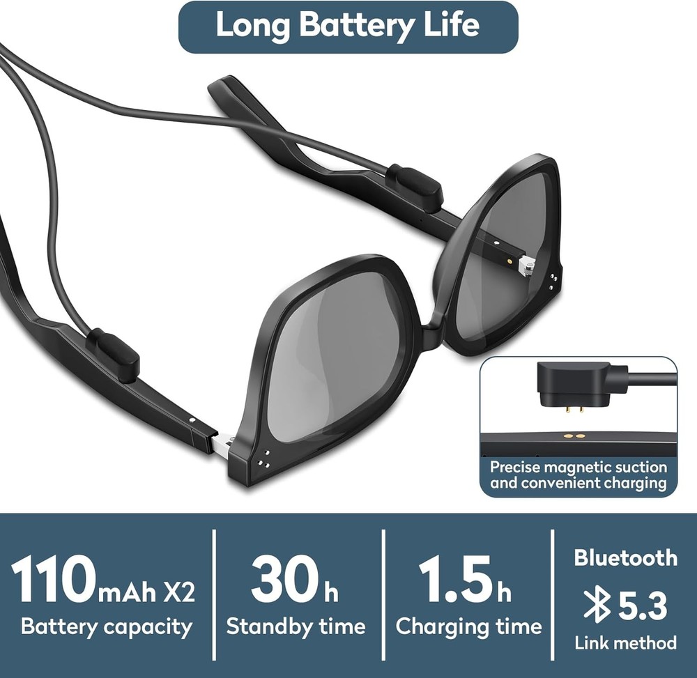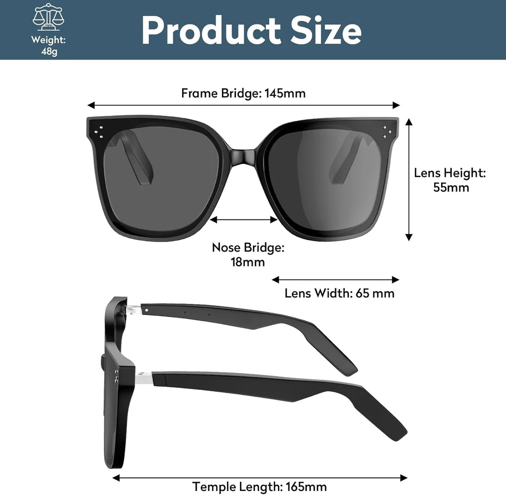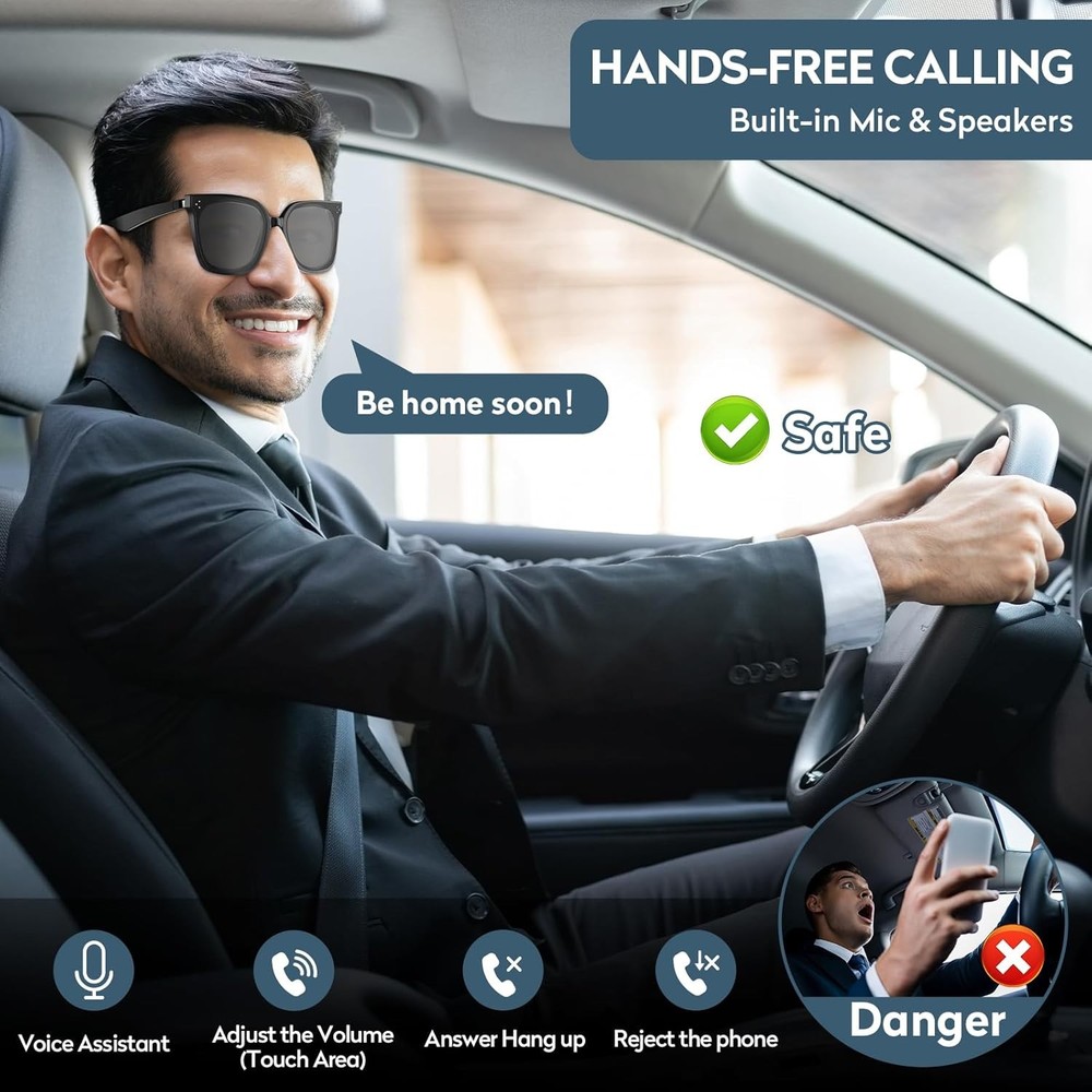 Free eBay listing template designed by dewiso.com Smart Bluetooth Glasses, UV400 Polarized Safety Sunglasses, Built-in Mic & Speakers, Wireless Music & Calls, Voice Assistant Smart Audio Sunglasses for Men & Woman, Compatible with iOS/Android FREE AND FAST SHIPPING! Built-in Microphone and Speaker: The hidden microphone in the frame lets you make hand-free calls and and answering. Talking on the phone feels like a face-to-face chat.Bluetooth Sunglasses with open-ear design lets you enjoy music or make calls while still being aware of whatâs around you. Polarized Sunglasses Lenses: Smart glasses with UV400 polarized lenses can protect your eyes from the sun and give you outstanding color, clarity and contrast.It is light and durable, so you can wear them all day long. Perfect for any time! Powerful Multifunctional Button: With the touch controls, you can handle calls, turn the volume up or down, skip tracks, play or pause, take photos and even wake up Siri. Itâs perfect for outdoor sports, taking selfies or videos, enjoying the music and answering calls hands-free while driving. Long Battery Life:The Smart Glasses have a high quality battery. It charges fully in just 1.5 hours and can last up to 8-10 hours of use. Itâs safe and long-lasting. They stay ready for 30 hours on standby. Our magnetic charging is more convenient and efficient than regular cables. Whether youâre listening to music, taking calls, or doing outdoor activities, these sunglasses have enough power to keep up with you. Latest Bluetooth 5.3: Our smart glasses come with Bluetooth 5.3, making the connection quick and steady. You won't have to worry about Bluetooth issues anymore! This unisex smart sunglasses are compatible with both iOS and Android phone. Product We offer a 30-Day Return Policy on items which you are not completely satisfied with. You have the option for a full-refund or an exchange of the item. No returns are available on items shipped outside of the US . Shipping We offer Free Shipping to the US and ship within 2 business days of payment, usually sooner. We use UPS express shipping. That's why your products are usually delivered within 3 days . Contact We try our very best to make sure every customer is completely satisfied. If there's a problem , message us! We're happy to help. 24/7 live chat available.