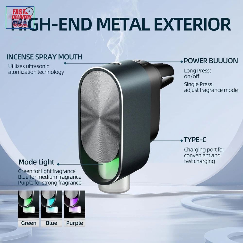 Store New Arrivals Add to Favorite View Feedback Contact Smart Car Air Freshener Diffuser - Rechargeable Car Diffuser with 3 Adjustable Modes, Ultrasonic Car Aroma Diffuser with 4 Essential Oils, Car Fresheners Long Lasting for Women Men Description Light Source Type LED Unit Count 1.0 Fluid Ounces Model Name CAR SCENT DIFFUSER Power Source Battery Powered Color Grey Material Aluminum, Polypropylene (PP) Country of Origin China Item Weight 6.4 ounces Batteries 1 Lithium Ion batteries required. (included) Number of Items 1 Coverage car interior Recommended Uses For Product Vehicle Auto Shutoff Yes Item model number M81 Runtime 1080 hours Special Feature Multiple Mist Setting, Compact, Long Lasting Aroma, Automatic Shut-Off, 360 Degree Mist Nozzle Package Dimensions 7.17 x 4.88 x 1.5 inches 【Long-Lasting Battery】 - Enjoy up to 45 days of continuous fragrance with our smart car air freshener diffuser, powered by a rechargeable 220mAh lithium battery. This car fresheners long lasting charges in just 60 minutes and activates with vehicle movement, preserving your car’s USB port. 【Adjustable Spray Modes】-Select from three spray modes with ambient lights on our rechargeable car air freshener: Fresh (green, sprays every 300 seconds), Light (blue, every 90 seconds), and Strong (purple, every 10 seconds). This car diffuser air freshener offers customizable fragrance intensity at the press of a button, providing an elegant and functional solution for maintaining freshness during your drives. 【Premium Design】-Made from durable aluminum alloy, this rechargeable diffuser for car fits most air outlets and adds a stylish touch to your car interior while effectively diffusing fragrance. Designed as a smart car air freshener, it seamlessly combines performance and aesthetics, making it an ideal car aroma diffuser for your vehicle. 【Ultrasonic Atomization】-Ultrasonic technology in this car diffuser creates a fine mist that blends with air-conditioning, neutralizing odors efficiently. Unlike traditional car fresheners, these car diffusers for essential oils offer a more natural and lasting way to refresh your vehicle. Includes three bottles of natural plant extract perfume, safe for all ages. 【Ideal for Cars】-Specifically designed for car interiors, this ultrasonic car freshener offers a refreshing and natural fragrance for women and men. Whether you’re looking for a car air freshener for women or a sleek accessory for men, this diffuser brings elegance and freshness to any drive.It also makes an excellent Valentines Day gift, adding a touch of romance and practicality to your special one's vehicle. Product Description The video showcases the product in use. The video guides you through product setup. The video compares multiple products. The video shows the product being unpacked. 1 Metallic Matte Finish 2 Precision Lock Wind Clamp 3 ESSENTIAL OIL BOTTLE ABOUT US We offer the best prices around on high quality products. Our E-store includes media such as books, movies, music and games while offering electronics, toys, sporting apparel, clothing, tools, general home, garden items and more. SHIPPING We are always working hard to ensure your package arrives as soon as possible. Please understand that some factors like weather, high postal traffic, and the performance of shipping companies are outside of our control. We offer free shipping to the lower 48 states and ship within 2 business days of payment, usually sooner. We do not accept P.O. Boxes. Please provide a physical address. For shipping outside of the continental USA, we only use eBay's Global Shipping Program.The item is shipped to KY and then sent to the rest of the world. International customers are responsible for all duties and taxes. Continue to check out in order to calculate costs for shipping the item to your country. Messages regarding eBay's Global Shipping Program MUST be directed at eBay EXCLUSIVELY. RETURNS We offer a 30-Day Return Policy on items which you are not completely satisfied with. You have the option for a full-refund or an exchange of the item. No returns are available on items shipped outside of the USA. PAYMENT We accept PayPal. CONTACT US This page content is yet to come Please ad us to your favorite seller and visit again later Thank You CUSTOMER SATISFACTION We try our very best to make sure every customer is completely satisfied. If there's a problem, message us! We're happy to help. WE ACCEPT Copyright © 2021 AutoDS. | All Rights Reserved
