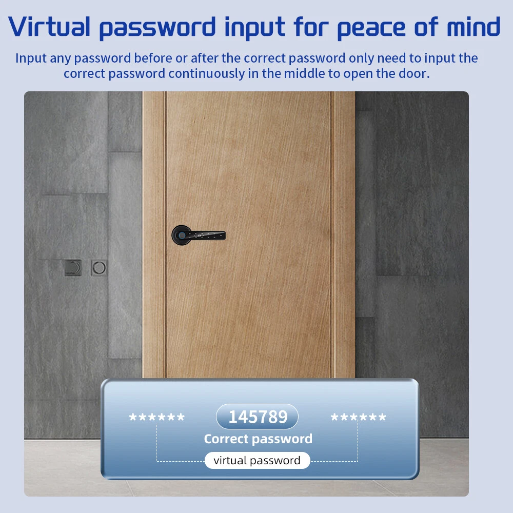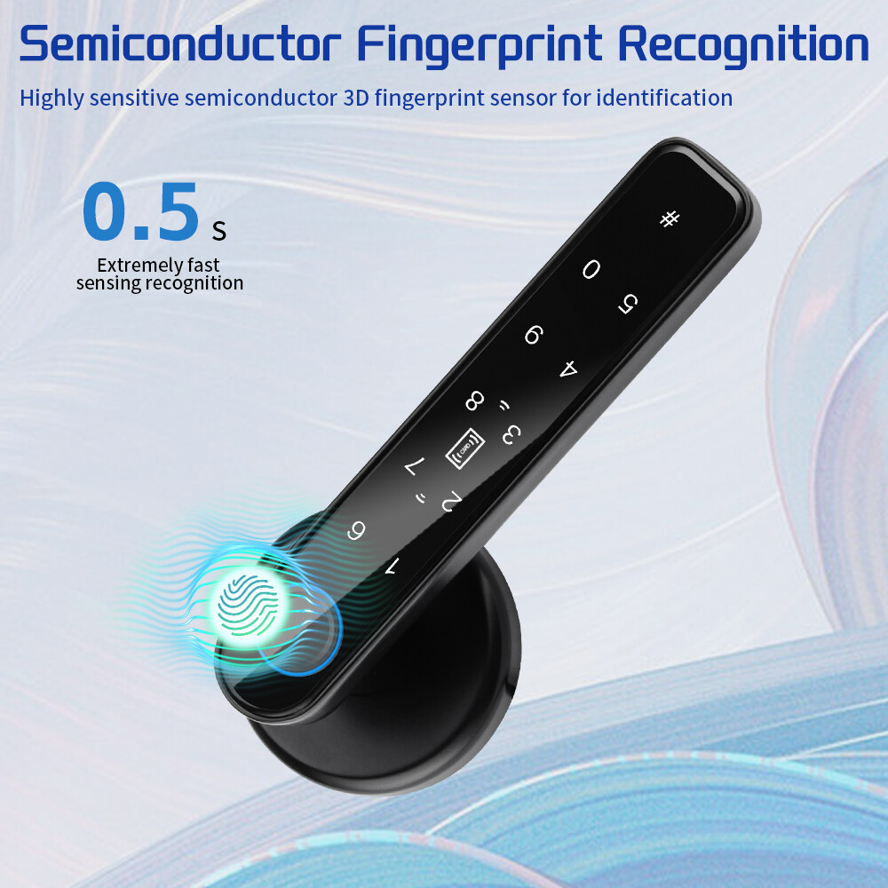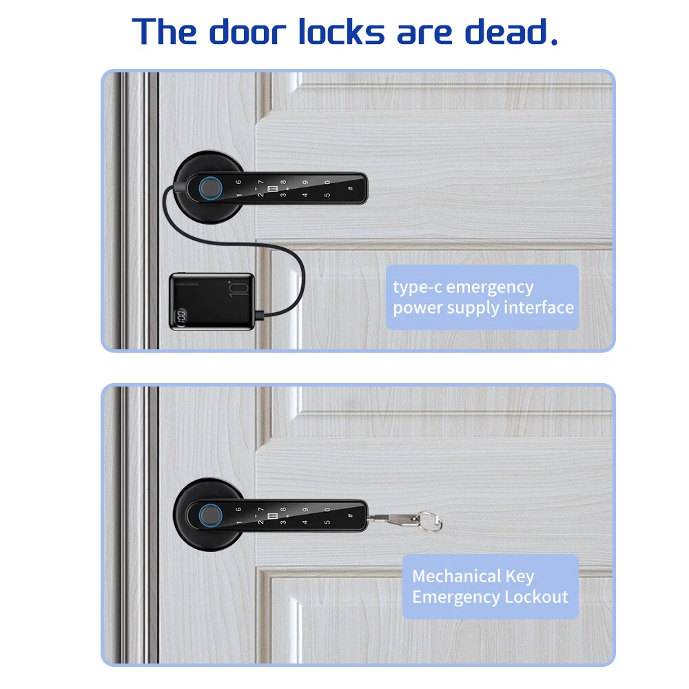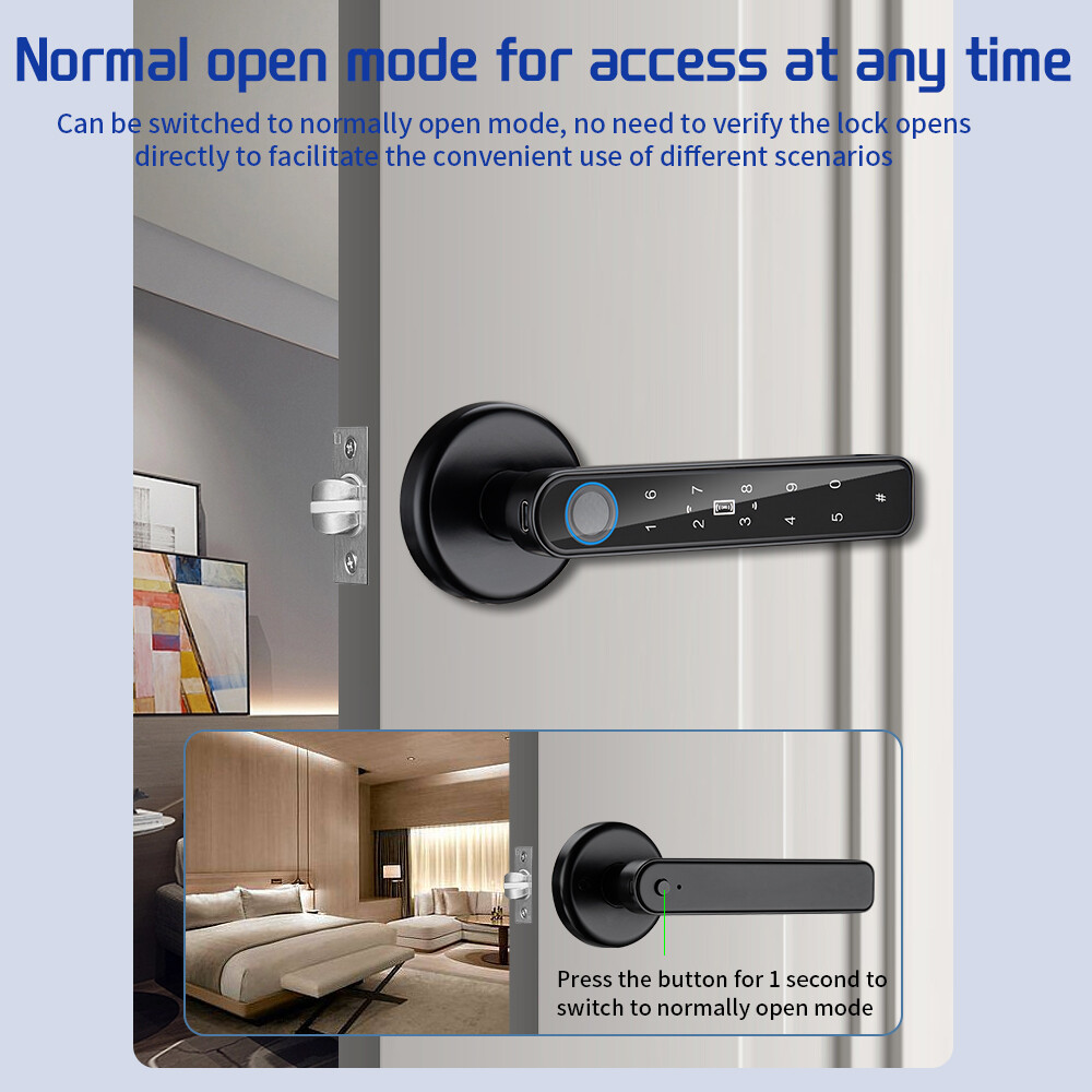 [5 Multiple Ways To Unlock]: Fingerprint + Passcode + APP Control+ IC Cards (4 PCS for 12-15 MHZ) + Physical Keys (2 PCS). The door lock supports to add 50+ fingerprints, 100 pcs IC cards. TMEZON smart door knob will provide more options for you to unlock & lock your door easier and safer. Let’s make your life more convenient and secure without keys. [TUYA APP Smart Control]: You can lock/unlock door, share E-codes, check Log records, alert prompt, manage users via TUYA Bluetooth App to unlock and manage your smart door lock more convenient anywhere anytime. (Not WIFI, No any fees charged for the APP) [Fingerprint Quick Unlock]: One touch unlock your door much more faster within 0.2 seconds with new upgraded 99% recognition rate fingerprint access technology. You don't have to worry about forgetting the key when you go out, you can use your fingerprint to unlock at any time. Note: Please wake up the lock first before unlock by fingerprinter or passcode. [Auto-Lock & Anti-Lock]: This keyless entry door lock can set to be locked automatically in 5s after the door closed while you leave home in hurry. One-Key Anti lock function set on the backside lock handle and only support the Admins to unlock it. It provide an more secure and privacy space option for you. [Voice Guide Easy Installation]: The door knob lock is designed to fit most US standard left handed and right handed doors, which can be easily installed with no drilling. The door lock handle is security for all kinds of scenarios, bedroom, hotel, offices, storeroom, apartment, room. APP:TUYA Main material: Zinc alloy Emergency power supply: Type-C (shipped without wires) Power supply: 4 No. 7 alkaline dry batteries (batteries not included in shipment) Keyboard: Touch keys Sound prompt: Chinese/English voice Suitable door thickness (mm): 35-65mm Fingerprint capacity: 100 sets Standby duration:>8 months Fingerprint scanner: FPC semiconductor fingerprint head Product size: 6.5 * 15 * 2.8cm