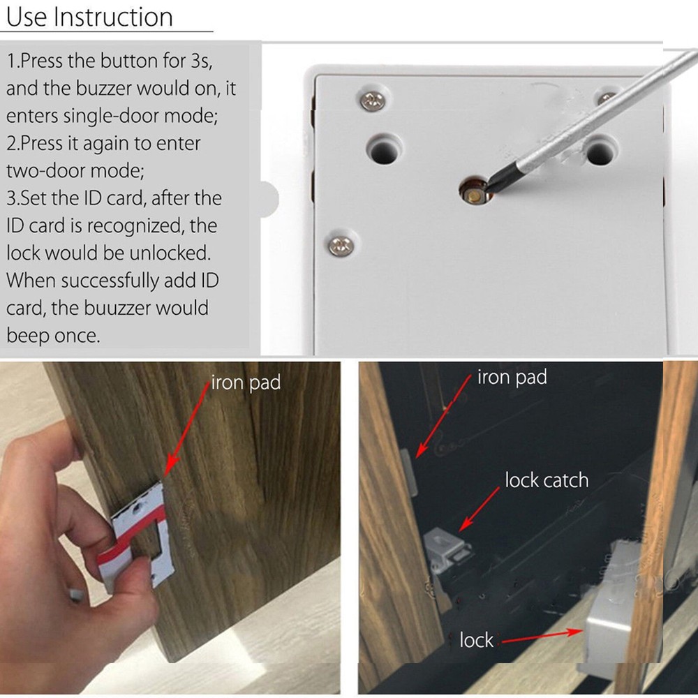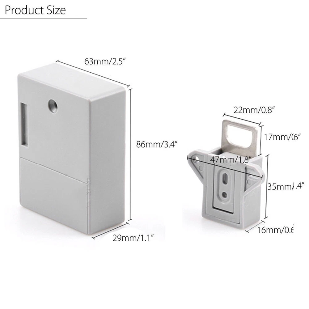 This smartlock has been set up, the battery can be used (no battery Oh ~)! Applicable to drawers, single-opening doors, double-opening doors, sliding wardrobe door. Features: Secure and conveninent, very easy to use. Mutiple applications, different functions for people to choose to apply. Applicable to drawers, single-opening doors, double-opening doors, sliding wardrobe door. Battery(not included) digital lock, veryunique and novel. It can provide safety protection of yourpersonal items while protecting your privacy. It also can improve children's safety at home, avoiding your children or kids free to open the drawers or cabinet doors. Easy to install and use. Ultra low power consumption and extended service life. Two unlock modes: According to different needs single card can be unlocked or double unlocked. Using your origin key or card can also enter the system, one key and opening more locks. Specifications: Materail: ABS Color: white Battery: 2 * AA Battery (not included) ID key color: blue Lock body: 86 * 63 * 28mm / 3.4 * 2.5 * 1.1in Lock buckle: 52 * 48 * 16mm / Weight: 150g / 5.3ounce Package size: 130 * 80 * 45mm / 5.1 * 3.1 * 1.8in Package weight: 170g / 6.0ounce Package List: 1 * Lock (Not Included Battery) 1 * Lock Buckle 1 * IC Card 1 * Screw Set 3 * Keys
