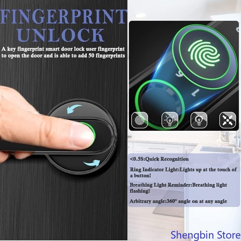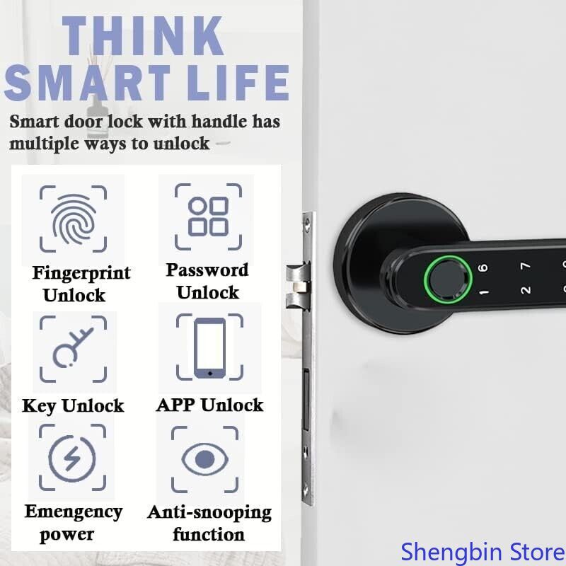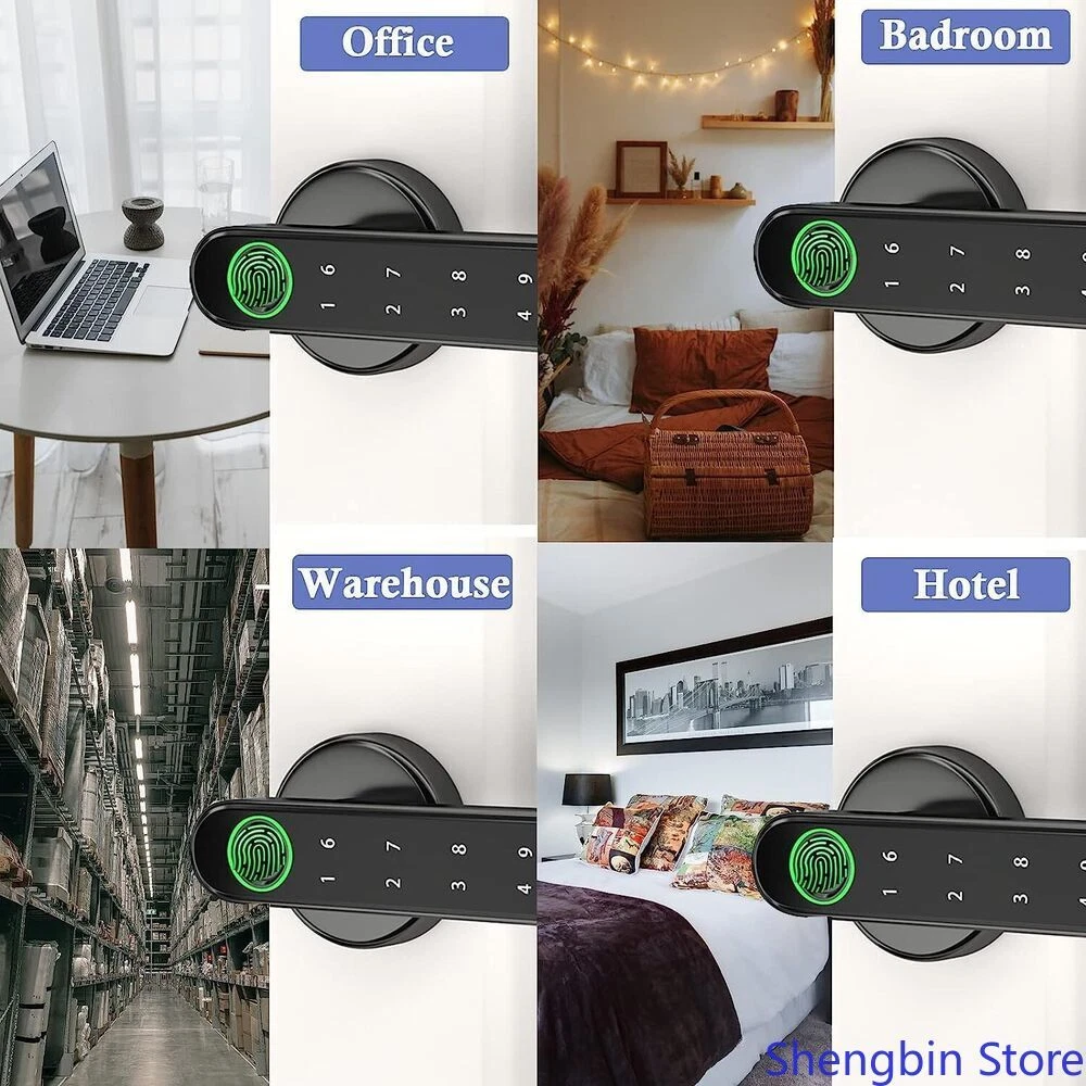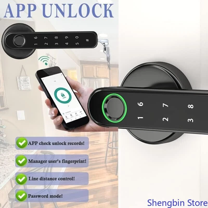 About this item: App control for all phones 4 unlocking modes Anti-snooping false password Fast always-on mode Fast always-on mode One touch to open Upgraded semiconductor sensor Easy installation USB emergency charging APPLICATION: Black Fingerprint Smart Door Lock for Home, Hotel, Office, Apartment, Bedroom, Warehouse, Office etc.
