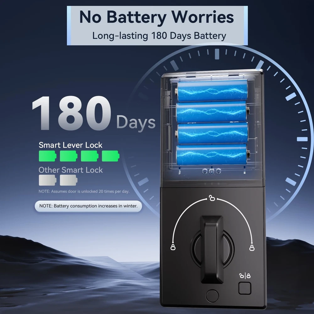 Fingerprint Smart Door Lock: Experience an ultra-fast and effortless unlocking process. Identify your fingerprint within 0.3 seconds, and unlocks your door within 1 second with a 99.99% recognition rateThe lock continuously refines its recognition with each use, ensuring quick and hassle-free entry for both parents and kids. Fingerprint Smart Door Lock: fingerprint door lock has experience an ultra-fast and effortless unlocking process. Identify your fingerprint within 0.3 seconds, and unlocks your door within 1 second with a 99.99% recognition rate. The lock continuously refines its recognition with each use, ensuring quick and hassle-free entry for both parents and kids. App Control: Keyless entry door lock deadbolt with handle set provides you with a better control experience. You can generate temporary passwords through smartphone app for your guests, delivery staff and cleaners. The valid time of the one-time code is adjustable. Even more, you could unlock the door, view real-time unlock records and add passwords via smartphone app. 5 in 1 Unlock: Keypad door lock with handle has 50 groups of fingerprints, 50 groups of keypad passcodes, Unlock via App within 50 meters, One-touch unlocking, and keys can all be used to unlock. Fingerprint door locks can generate and share one-time, permanent, timed, recurring code, custom code and erase code with diifferent visitors and your friends. Auto-Lock Convenience: Front door lock set keyless entry enjoy security with the "automatic door lock" feature, customizable to automatically lock within 10-30 seconds. Besides, there is a “one-touch lock” function on the rear lock body, making it convenient for you to lock and unlock in a timely manner. Easy to Install: Install your new electric deadbolt in minutes without any professional tools or a locksmith—just a screwdriver! The included user manual provide step-by-step instructions, ensuring a smooth setup. Designed to fit both standard left and right-hand doors, our door locks for front door is equipped with an intuitive interface that makes it easy to use for people of all ages.