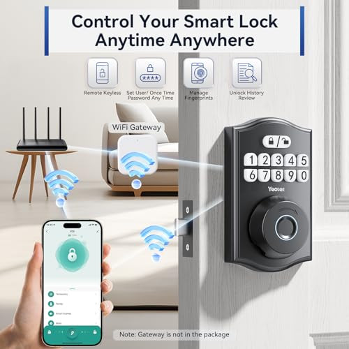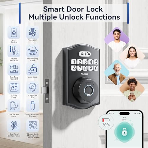 Return Policy Fast Delivery Trusted seller Fingerprint Door Lock Keyless Entry Door Lock Deadbolt with App Control Smart Door Locks for Front Door Lock with Code, Keypad Deadbolt Auto-Lock Anti-Peeping Code, Easy Installation Product Description Multifunctional Keyless Entry Door Lock: Smart door lock supports a variety of unlocking ways, including App unlock, fingerprint biometric, keypad password and mechanical key. You can set up to 50 passwords and 50 fingerprints for easy sharing with family, guests and employees. In addition, anti-peep code design ensures your family has a safer living environment that can meet your daily needs. Sensitive Biometric Fingerprint Door Lock: fingerprint door lock use biometric technology with higher sensitivity and accuracy, with a recognition rate of up to 99.9%. Our door locks for front door can recognize your fingerprint in just 0.3 seconds for effortless unlocking within 1 second. Say goodbye to tedious steps, shorten unlocking time, your finger is the key. Control Door Locks for Front Door Anyw: keyless door lock deadbolt is connected to Gateway (Note: Gateway is sold separately) that enables the lock to be networked. You can manage user, one-touch locking, auto-lock, vadd or delete passwords or fingerprints, view unlock records, receive real-time notifications, and more through APP. In addition, you can generate one-time code or timed code. All under your control. Reliable Deadbolt Smart Door Lock: Our door lock with code has a low battery alert (Also check door lock battery level via APP). In addition, dead bolt locks for exterior doors are powered by 4 AA batteries (Note: 4 AA batteries are not included) and also come with a Type-C emergency power port to charge the smart door lock at any time, giving you peace of mind. Easy Installation of Keypad Deadbolt Lock: You can easily install keypad door lock with deadbolt in minutes with just a screwdriver, for all US standard doors. Our door locks automatically recognize left and right doors during installation without manual adjustments. Smart deadbolt lock fits door thicknesses from 1.38" to 1.78" with backset 2-3/8" and 2-3/4". Shipping Returns Payment Shipping Shipping is FREE to all addresses other than APO/PO boxes in the lower 48 states. All our stock ships from US-based warehouses. Shipped via USPS or UPS (depending on location and package weight) Unless stated otherwise, all orders will ship within 24-72 hours of your payment being processed. Check our feedback to see the great reviews of FAST shipping we offer. Returns Seller does not accept returns Payment We currently accept payment via eBay managed payments only. Once payment is cleared, we will dispatch your shipment within 1-3 business days. Please refer to the "Shipping" tab for more information regarding shipping speed to your destination.