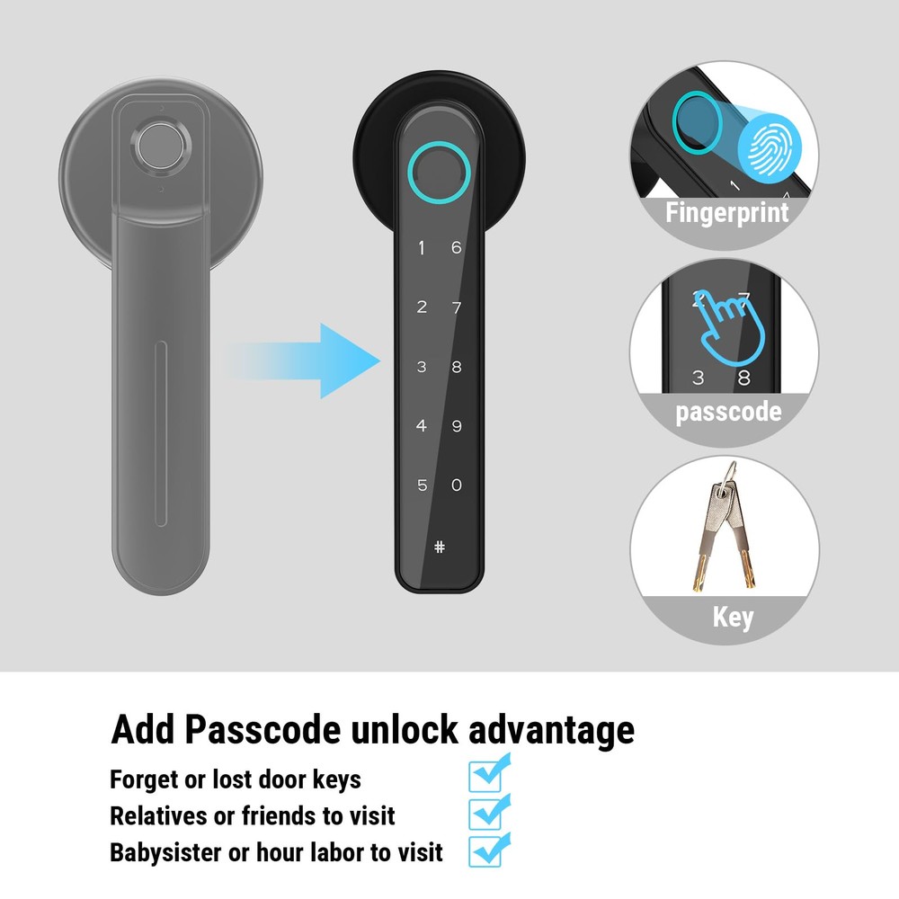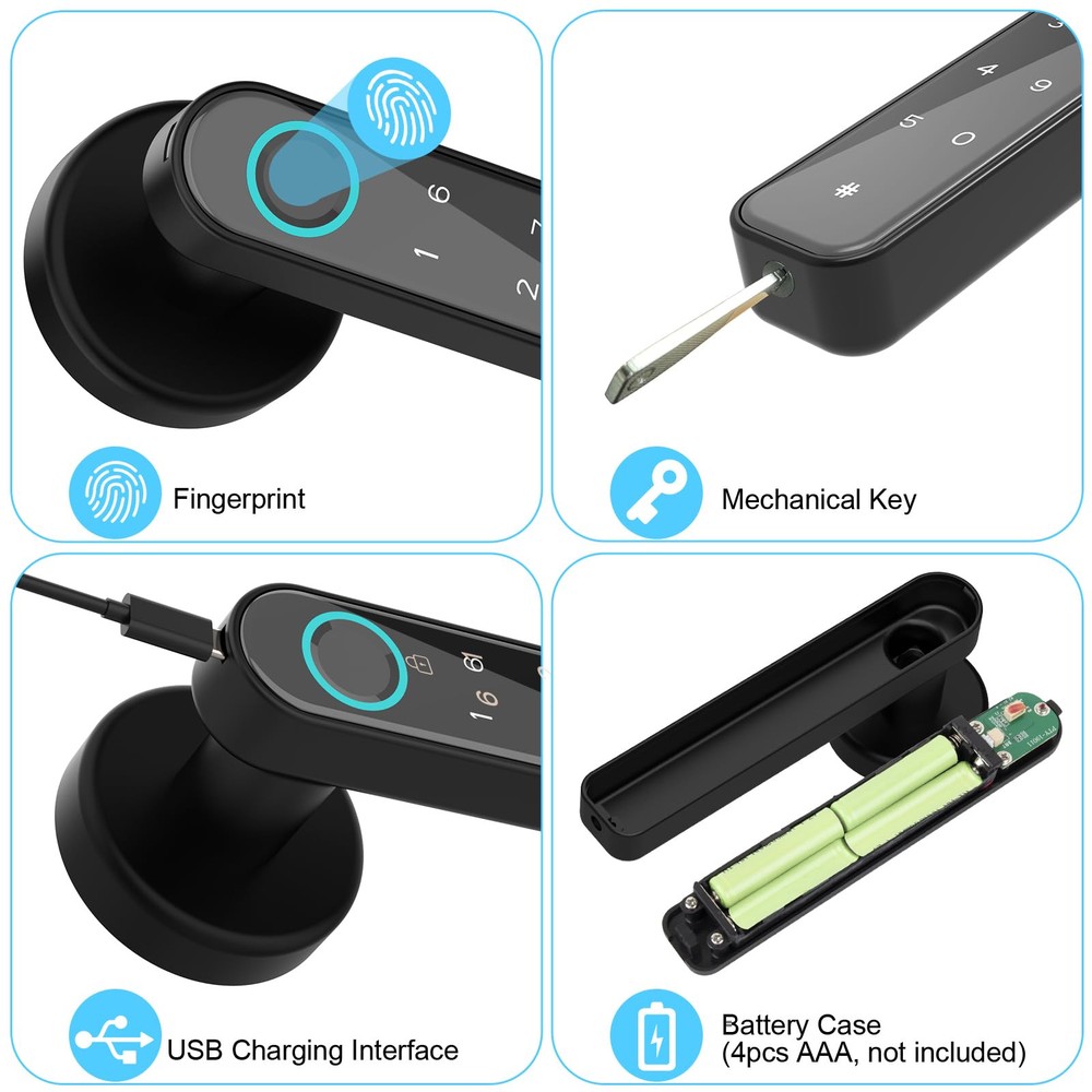 đăFINGERPRINT ONE TOUCH UNLOCKă: Fingerprint door lock adopt advanced biometric fingerprint technology, resolution is 508DPI, fingerprint recognition rate up to 98% and open the door just need 1 second. You can add 30 groups fingerprintsïŒNote: When adding a fingerprint, please enter different areas of the fingerprint so that the added fingerprint is more accurateïŒ, Eliminate the trouble of forgetting to bring the key when you go out. đăLARGE AREA FINGERPRINT SENSORă: Smart lock has upgraded the resolution of the large area fingerprint sensor. 160*160, the area is increased by 35% compared with the ordinary fingerprint sensor 120*120. đăTHREE UNLOCK MODESă: Door locks for bedrooms support three unlock modes: fingerprints, passcodes and mechanical keys, You can set according to your needs.You can even set the free pass mode and keep it unlocked at any time which is convenient for the children and the elderly to enter and exit freely. đăVOLUME ADJUSTMENTă: The sound of the smart lock is divided into 1, 2, and 3, and the level can be manually adjusted.ïŒ1: minimum volume, 2: medium volume, 3: maximum volumeïŒ đăDIY INSTALLATIONă: Keyless entry door lock is designed to fit US standard door, Backset 2-3/8âł(60mm) and 2-1/8âł(70mm), door thicknesses from 1-3/8'' to 2-1/8''(35mm -55mm). No wiring and no drilling. Fit both left handed and right handed doors(Suitable for indoor and outdoor doors). đăWARMTIPSă: Smart door lock requires 4 AAA batteries (not included), According to the frequency of use, it can be used for up to 8-10 months. It has low battery reminder function (the red light will flash three times when unlocking); Equipped with a USB interface for emergency charging.(Note: This interface is only used for emergency charging, the battery cannot be charged, and the battery needs to be replaced in time.) đăAFTER-SALES SUPPORTă: Offering response within 24 hours customer service, If you have any questions about our door lock, please feel free to contact us, 30-days money back guarantee, 12 months warranty and lifetime technical support. âăTIPS 1ă: Smart door knob need to install 4 AAA alkaline batteries, please make sure that the cable is plugged in properly during the installation. âăTIPS 2ă: Door knob with keypad need to add the administrator fingerprint or password correctly, otherwise the smart lock will be in a state that any fingerprint can unlock the smart lock.