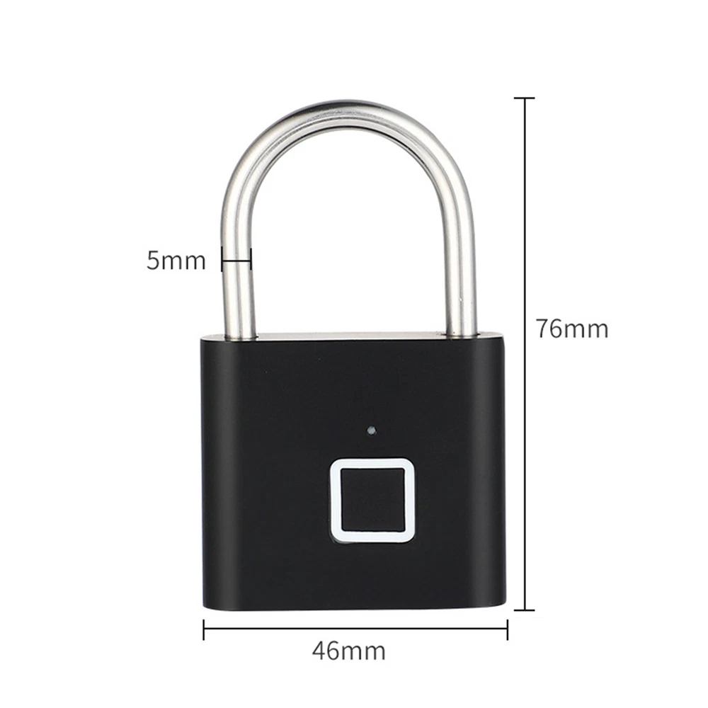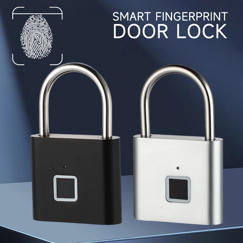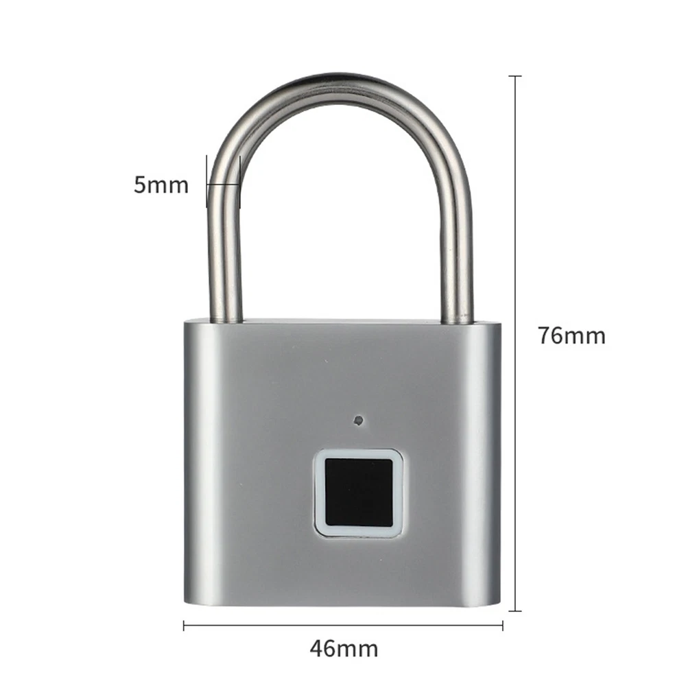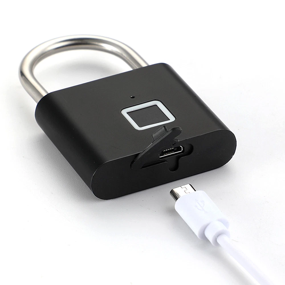 Smart Fingerprint Door Lock Keyless Anti-theft Security Padlock USB Rechargeable Features: *Safe and reliable ,unlock at one touch,your finger,is password now. *Unlock: It is easy to operate, stores up to 10 fingerprints, and is managed directly in the smart lock. *Unlocking Methods: This fingerprint padlock has 360 degree fingerprint acquisition function and only unlock for 1 second and quickly identify biometric locks to quickly identify your fingerprints. With LED Indicator: with red & blue indicator to represent different status. Fast Response: built-in advanced CPU, great identification, it only takes 1 second to unlock. *Superior Strength & Durability: made of zinc alloy body and stainless steel latch hook. *Low Battery Prompt: when battery capacity is low, the indicator will flash Red fast to remind you. *USB Rechargeable: Built in rechargeable lithium battery, Can be easily charged by USB cable (micro USB port is on bottom),Low power consumption and long standby time,If the battery is short of power, it can be unlocked in an emergency. The longest standby time is up to half a year; Specifications: Colour: Silver/Black; Model: O10; Material: Zinc alloy; Case material: kirsite; Lock Size: 46*40*16mm; Lock beam diameter: 5mm; Fingerprint shape: Square; Fingerprint capacity: Record 10 times and save 10 groups; LED light: Three color light: red / blue / green; Battery: 3.7V lithium battery; Working voltage: 3.0-4.2V; Charging + Emergency: USB interface: MICRO; Low battery alarm: 3.5V; full charging time:1-2hours; full charged unlock times:9000times; Standy Time:12 Months; Package Included: 1 x Fingerprint Padlock; 1 x USB-Micro Charging Cable; 1 x User Manual; 1 x Box;