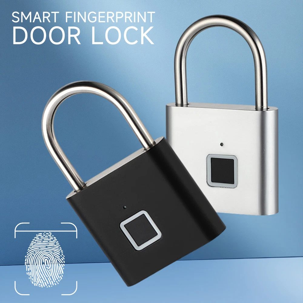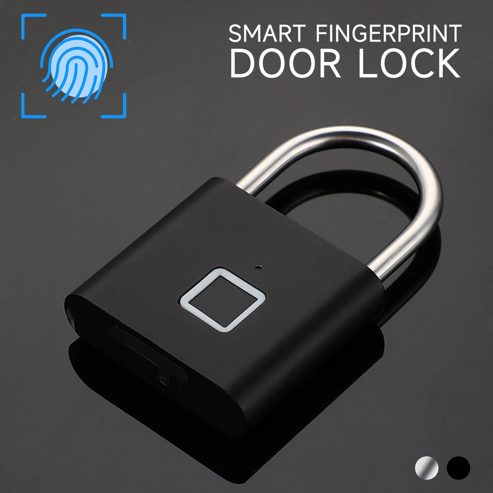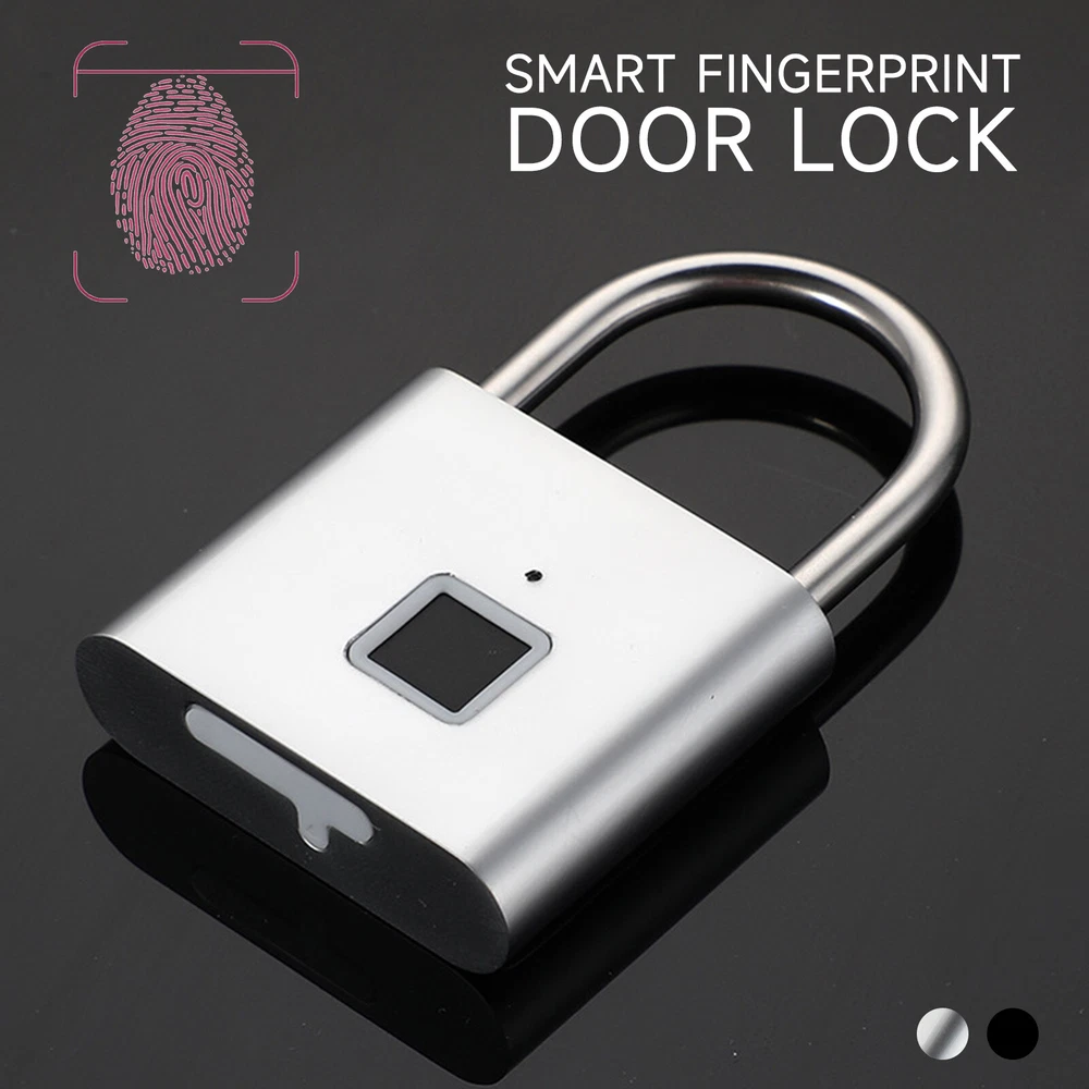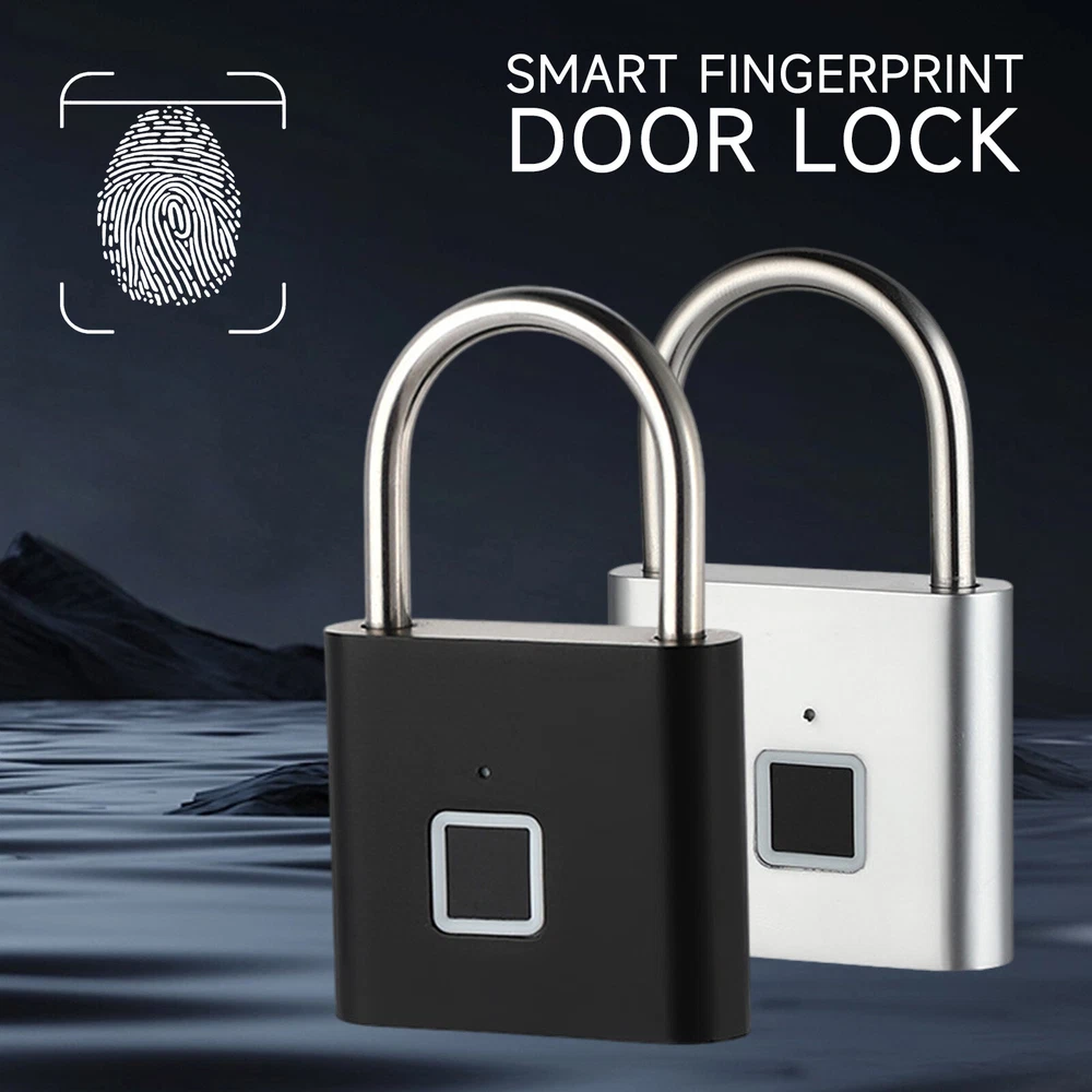 Smart Fingerprint Door Lock Keyless Anti-theft Security Padlock USB Rechargeable Features: *Safe and reliable ,unlock at one touch,your finger,is password now. *Unlock: It is easy to operate, stores up to 10 fingerprints, and is managed directly in the smart lock. *Unlocking Methods: This fingerprint padlock has 360 degree fingerprint acquisition function and only unlock for 1 second and quickly identify biometric locks to quickly identify your fingerprints. With LED Indicator: with red & blue indicator to represent different status. Fast Response: built-in advanced CPU, great identification, it only takes 1 second to unlock. *Superior Strength & Durability: made of zinc alloy body and stainless steel latch hook. *Low Battery Prompt: when battery capacity is low, the indicator will flash Red fast to remind you. *USB Rechargeable: Built in rechargeable lithium battery, Can be easily charged by USB cable (micro USB port is on bottom),Low power consumption and long standby time,If the battery is short of power, it can be unlocked in an emergency. The longest standby time is up to half a year; Specifications: Colour: Silver/Black; Model: O10; Material: Zinc alloy; Case material: kirsite; Lock Size: 46*40*16mm; Lock beam diameter: 5mm; Fingerprint shape: Square; Fingerprint capacity: Record 10 times and save 10 groups; LED light: Three color light: red / blue / green; Battery: 3.7V lithium battery; Working voltage: 3.0-4.2V; Charging + Emergency: USB interface: MICRO; Low battery alarm: 3.5V; full charging time:1-2hours; full charged unlock times:9000times; Standy Time:12 Months; Package Included: 1 x Fingerprint Padlock; 1 x USB-Micro Charging Cable; 1 x User Manual; 1 x Box;
