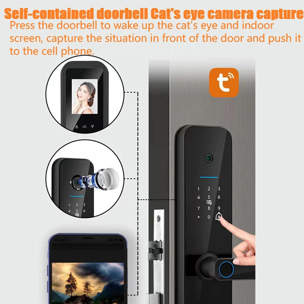FingerPrint Password Security Lock Smart Door Lock 3D Face Recognition Camera US Products Description: 【Multi-Unlocking Methods】this smart lock offers a variety of keyless entry options.face recognition+Fingerprint+password+key+IC Card+cell phone App. It's super convenient for you and your family members to enter home. 【Semiconductor Fingerprint Recognition】: By incorporating live fingerprint recognition technology, our lock achieves superior accuracy in identifying fingerprints and effectively prevents unauthorized access. Say goodbye to fake fingerprints and enjoy enhanced security for your home or office. 【Smart app control】: Smart lock technology enables the transfer of virtual keys to family members and friends and provides temporary access authorizations for one-time visitors. 【Door Viewer Camera】: The door lock is equipped with a peephole camera, and the indoor screen displays the image outside the door. The outdoor situation is clearly visible. 【Remote control】: no matter where you are, you can see your front door and control your lock via the APP, increase the security of your home, monitor your front door from anywhere and respond to visitors remotely. Specification: Item type: Intelligent lock with face recognition Unlock way : APP +Fingerprint + Password + Card + Key+Face Material: Aluminum alloy, ABS, Acrylic Door thickness: 35-60 mm / 1.38-2.36 in Fingerprint capacity: 100 users Fingerprint + password + IC card capacity: 300 users Password length: 6-8 digits Power input: DC 4.4 V-6.5 V Supported systems: for iOS 7.0 and above, for 4.4 and above Built-in lithium battery: 2500 mA (included) Lithium battery: 7.4 V ZNS-31B 2500 mAh/18.5 Wh Low power alarm: 4.7 V Standby current: <45uA Working current: <250mA Working temperature: -20~65°C / -4~149°F Working humidity: 15%~95% Communication: WIFI APP: for Tuya Factory default password: The factory default password is 123456, after the administrator reset, this password is invalid Payment Delivery details About Taxes About us Contact us Payment Payment is managed by eBay. We will ship to your eBay address. Please make sure your address setting is correct before checkout. Delivery details WORLDWIDE SHIPPING. (Except some countries and APO/FPO) Orders processed timely after the payment verification. The images shown are not the actual item and are for your reference only. SERVICE TRANSIT TIME is provided by the carrier and excludes weekends and holidays. Transit times may vary, particularly during the holiday season. About Taxes For all orders, please note that: Taxes and charges are not included in the item price or shipping charges. Please check with your country's customs office to determine what these additional costs will be prior to bidding/buying. About us We are committed to provide excellent service for all buyers. Welcome to our eBay store:) Contact us Our Working Time (Beijing): 9:00 am ~ 6:00 pm (Monday~Friday) If the item is defective or taking longer than usual to reach you, please do not leave us negative feedback. Send us a message through eBay and we will resolve the issue promptly. Thanks for your support and understanding! If you have any questions, please contact us via ebay mail, we will reply you on the working day in China. And there will be no reply as we are out of office during weekend, we will reply on Monday. Because the time zone between the seller and the buyer is different, please be patient and wait for your understanding. We will be happy to serve you.