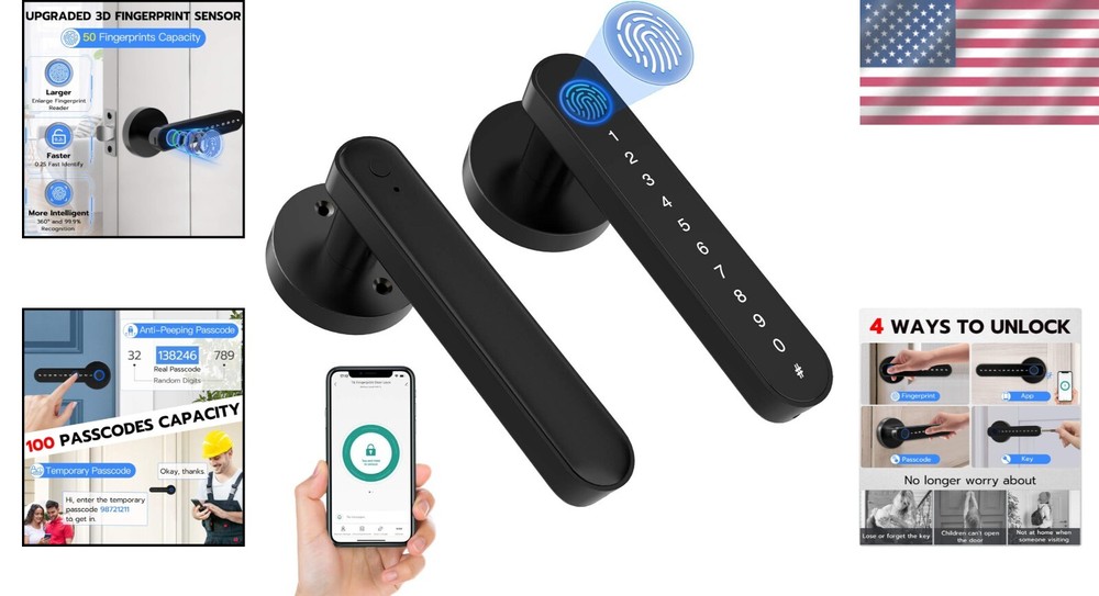 Smart Fingerprint Door Lock - Keyless Entry with App Control & 4 Unlock Methods ‹ › ‹ › ‹ › ‹ › ‹ › ‹ › ‹ › ‹ › Smart Fingerprint Door Lock - Keyless Entry with App Control & 4 Unlock Methods Unlock Your World Effortlessly: 4 Unlocking Methods: Seamlessly access your home with fingerprint unlock, passcode unlock, App control via Bluetooth, or a backup mechanical key. Experience the pinnacle of convenience and security. Impeccable Security Features: High Security & Durability: Crafted from robust Alloy Steel and Zinc, this door lock provides an added layer of safety, perfect for bedrooms, hotels, apartments, and private spaces. Simple Installation: DIY Friendly: Replace your original lock effortlessly with just a screwdriver (included). No additional drilling or locksmith needed. The reversible door handle caters to both left and right-handed doors. Extended Battery Life: Long-lasting Performance: This electronic lock offers low power consumption, assuring over a year of battery life. Receive timely reminders for low battery, and when in need, simply utilize a power bank for emergency access. Unmatched Customer Support: Peace of Mind: Enjoy a 12-month Free Trial and free lifetime technical support. Should you require assistance or wish to replace or refund, our hassle-free customer service stands by your side. Why Choose Our Smart Fingerprint Door Lock? Elevate your home's security with our Smart Fingerprint Door Lock, where cutting-edge technology meets exceptional convenience. With its versatile unlocking methods and robust construction, this lock is designed for modern living. Say goodbye to fumbling for keys and welcome a new era of intelligent home security. Transform your entryway today with our state-of-the-art Smart Fingerprint Door Lock. Shipping Free & Fast Shipping - We offer free shipping to most of the USA with a normal delivery time of 3-7 days. However, due to the current situation, additional delivery time (up to 3 weeks) may be required for some items. Alternative Carriers - We may use alternative carriers (e.g. USPS, FedEx, UPS, etc.) to ensure your package arrives safely and on time. Due to the use of multiple carriers, we are unable to provide a tracking number automatically. Handling Time - Orders are processed and shipped within 1-2 business days of receiving cleared payment. Shipping Restrictions - Shipping to Alaska, Hawaii, Puerto Rico, Guam, and other US territories may incur shipping charges or delivery restrictions. Please contact us before ordering, or your order can be refunded/cancelled. State Restrictions - There may be restrictions based on your state of purchase. For example, certain items may not be shipped to California due to state regulations. Contact for Tracking Updates - If you require tracking updates or have any concerns about the delivery of your order, please feel free to contact us, and we will be happy to assist you. Return 30-Day Hassle-Free Returns - We want you to be completely satisfied with your purchase. If you are not, you can return the item within 30 days of receiving it for a full refund or exchange. Easy Return Process - To start a return, simply contact us and we will provide you with a prepaid return shipping label and detailed instructions. Restocking Fee - There are no restocking fees for returns. However, the buyer is responsible for return shipping costs if the return is not due to a seller's error. Refund Processing Time - Refunds will be processed within 5 business days of receiving the returned item in its original condition. Payment We accept all major credit cards, PayPal, and Apple Pay for your convenience. Your payment information is secure and encrypted to ensure a safe and seamless transaction. Please complete your payment within 3 days of purchase to avoid any delays in shipping. Feedback Your feedback is extremely important to us. We strive to provide the best products and customer service possible. If you are satisfied with your purchase, please take a moment to leave us a positive review. If you have any concerns or issues with your order, please contact us before leaving negative feedback. We are committed to resolving any problems and ensuring your satisfaction. Contact Us If you have any questions or concerns, please feel free to reach out to our customer support team. You can contact us through the eBay messaging system. We are available Monday to Friday, 9:00 am to 5:00 pm EST, and we will do our best to respond to your inquiry within 24 hours. Buy it now and enjoy a pleasant shopping experience! UPC: Not Set Model: Not Set Unit Quantity: 2 Material: Alloy Steel,Zinc Suitable For: Front Door,Bedroom,Interior,Room,Home,Hotel,Garage,Apartment,Cloakroom,Pantry,Closet,Office,School Mounting: Universal Features: Keyless,Fingerprint Unlock,Passcode Unlock,App Controlled,Bluetooth Connectivity,Backup Mechanical Key Unlock,Auto Lock,Passage Mode,Anti-Peeping Passcode,Long Battery Life,Low Power Consumption Items Included: Key,Mechanical Keys,User Manual,Lock Latch,Spindle,Connecting Pipe,Screwdriver,All Screws,Front Handle,Rear Handle,Strike Plate,Strike Hole Cover Brand: Unbranded Type: Smart Lock Color: Black Finish: Oil Rubbed Throw Length: Not Set Item Height: Not Set Item Width: Not Set Cross Bore Diameter: Standard MPN: Not Set Number in Pack: 1 Style: Modern Item Depth: 2.6 in Country/Region of Manufacture: Not Set ANSI Grade: Not Specified Item Weight: 2 lb Door Handing: Universal/Reversible Manufacturer Warranty: Not Set Unit Type: lb Fixings Supplied: Not Set
