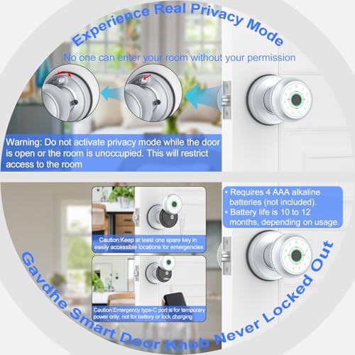 Return Policy Fast Delivery Trusted seller Fingerprint Door Lock-Smart Door Knob with Passcode Keypad-Finger Print Door Knob, App Control,Auto Lock,Privacy Mode - Ideal for Apartment, Bedroom, Office, Silver Product Description 【5-in-1 Access Flexibility】: Unlock your door in multiple ways—using a smartphone app, IC card, fingerprint scan, numerical code, or traditional key. This smart door knob provides versatile access options for unparalleled convenience and security. 【 Advanced Security Features】: Enhance your home security with anti-peep code protection, auto-lock functionality, and battery level alerts. Enjoy additional peace of mind with silent mode for quiet entry and privacy mode for extra protection. 【Quick & Easy Installation】: Designed for hassle-free installation on standard U.S. doors, our finger print door lock features an adjustable deadlatch (2-3/8" [60mm] or 2-1/8" [70mm]) and accommodates door thicknesses from 1-3/8" to 2-1/8" (35mm-55mm). Perfect for DIY projects. 【Never Worry About Lockouts】: Benefit from a battery life of 10-12 months with 4 AAA alkaline batteries (not included), depending on usage frequency. The smart lock includes backup mechanical keys and features an emergency Type-C port (not for charging the lock or batteries) for temporary unlocking using an external power bank (not included). 【Remote & Voice Control】: Pair with the gateway (sold separately) for advanced remote access and voice control. Seamlessly manage settings and door access from your smartphone or via Alexa and Google Assistant for added convenience. Shipping Returns Payment Shipping Shipping is FREE to all addresses other than APO/PO boxes in the lower 48 states. All our stock ships from US-based warehouses. Shipped via USPS or UPS (depending on location and package weight) Unless stated otherwise, all orders will ship within 24-72 hours of your payment being processed. Check our feedback to see the great reviews of FAST shipping we offer. Returns Seller does not accept returns Payment We currently accept payment via eBay managed payments only. Once payment is cleared, we will dispatch your shipment within 1-3 business days. Please refer to the "Shipping" tab for more information regarding shipping speed to your destination.