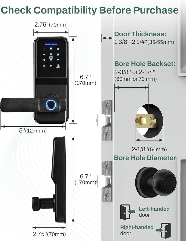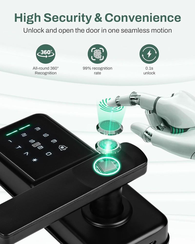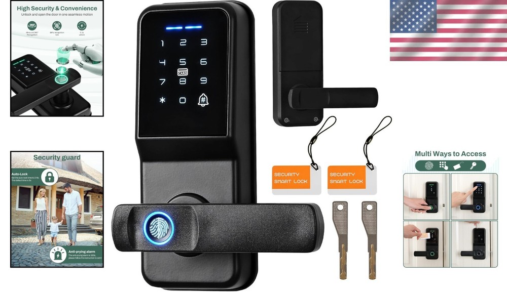 Electronic Door Lock with Fingerprint Scanner & Anti-Peeping Password Protection ‹ › ‹ › ‹ › ‹ › ‹ › ‹ › ‹ › Electronic Door Lock with Fingerprint Scanner Convenience Meets Security Five Unlocking Methods: Enjoy the flexibility of keypads, key lock, IC Card, and both fingerprint and keypad deadbolt options. Swift Access: The conveniently placed fingerprint scanner ensures you gain entry in just one second. Advanced Security Features: Auto-lock Function: For your safety, set a secure password with 6 to 12 digits and auto-lock time from 2 to 9 seconds. Temporarily Disabled Access: After five incorrect password attempts, the door lock will be disabled for 90 seconds, adding an extra layer of protection. Anti-Peeping Code: Safeguard your access with the ability to add random digits before and after your correct password, ensuring your security remains intact. Enhanced Reliability: Alert System: If tampering occurs, a loud alert will sound for 180 seconds, notifying you of any potential theft attempts. Long-lasting Battery: Operates for up to 8 months on a single charge, with low battery alerts, and easy recharging using 4xAA batteries (not included). Hassle-Free Installation: Quick and simple installation in just 15 minutes, with user-friendly instructions included. Dedicated Support: Our customer service team is readily available should you encounter any installation or usage questions. Why Choose Our Electronic Door Lock? Upgrade your home security with our Electronic Door Lock featuring a Fingerprint Scanner and Anti-Peeping Password Protection. Enjoy peace of mind with five unlocking methods, rapid access, and a formidable alert system. Its sleek design not only enhances your security but also complements your home decor. With long-lasting battery life and dedicated customer support, your security has never been more accessible. Choose safety, convenience, and elegance — order yours today! Shipping Free & Fast Shipping - We offer free shipping to most of the USA with a normal delivery time of 3-7 days. However, due to the current situation, additional delivery time (up to 3 weeks) may be required for some items. Alternative Carriers - We may use alternative carriers (e.g. USPS, FedEx, UPS, etc.) to ensure your package arrives safely and on time. Due to the use of multiple carriers, we are unable to provide a tracking number automatically. Handling Time - Orders are processed and shipped within 1-2 business days of receiving cleared payment. Shipping Restrictions - Shipping to Alaska, Hawaii, Puerto Rico, Guam, and other US territories may incur shipping charges or delivery restrictions. Please contact us before ordering, or your order can be refunded/cancelled. State Restrictions - There may be restrictions based on your state of purchase. For example, certain items may not be shipped to California due to state regulations. Contact for Tracking Updates - If you require tracking updates or have any concerns about the delivery of your order, please feel free to contact us, and we will be happy to assist you. Return 30-Day Hassle-Free Returns - We want you to be completely satisfied with your purchase. If you are not, you can return the item within 30 days of receiving it for a full refund or exchange. Easy Return Process - To start a return, simply contact us and we will provide you with a prepaid return shipping label and detailed instructions. Restocking Fee - There are no restocking fees for returns. However, the buyer is responsible for return shipping costs if the return is not due to a seller's error. Refund Processing Time - Refunds will be processed within 5 business days of receiving the returned item in its original condition. Payment We accept all major credit cards, PayPal, and Apple Pay for your convenience. Your payment information is secure and encrypted to ensure a safe and seamless transaction. Please complete your payment within 3 days of purchase to avoid any delays in shipping. Feedback Your feedback is extremely important to us. We strive to provide the best products and customer service possible. If you are satisfied with your purchase, please take a moment to leave us a positive review. If you have any concerns or issues with your order, please contact us before leaving negative feedback. We are committed to resolving any problems and ensuring your satisfaction. Contact Us If you have any questions or concerns, please feel free to reach out to our customer support team. You can contact us through the eBay messaging system. We are available Monday to Friday, 9:00 am to 5:00 pm EST, and we will do our best to respond to your inquiry within 24 hours. Buy it now and enjoy a pleasant shopping experience! UPC: Not Set Model: Not Set Unit Quantity: 1 Material: Stainless Steel,Plastic Suitable For: Interior/Room Door,Entry Door,Bedroom Door Mounting: Universal Features: Adjustable Backset,Easy to Install,Electronic,Keyless,Self Closing,Simultaneous Locking,With Key,Auto-lock,Anti-Peeping Code,Anti-Theft Items Included: Key,fob Brand: Unbranded Type: Smart Door Lock Color: Black Finish: Painted Throw Length: Not Set Item Height: Not Set Item Width: Not Set Cross Bore Diameter: 2 in MPN: Not Set Number in Pack: 1 Style: Smart Item Depth: 2 in Country/Region of Manufacture: Not Set ANSI Grade: ANSI Grade 1 (Best) Item Weight: 1.5 lb Door Handing: Universal/Reversible Manufacturer Warranty: Not Set Unit Type: lb Fixings Supplied: Not Set