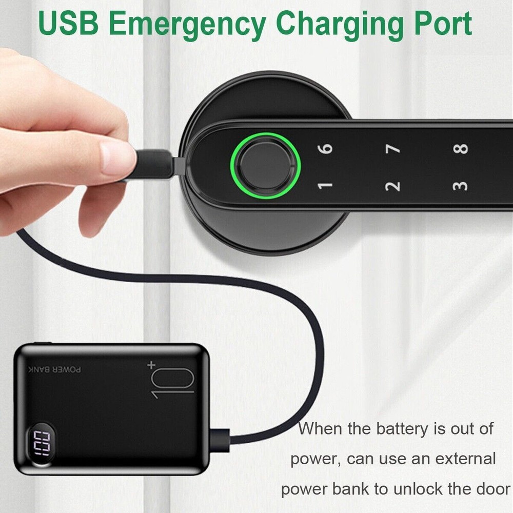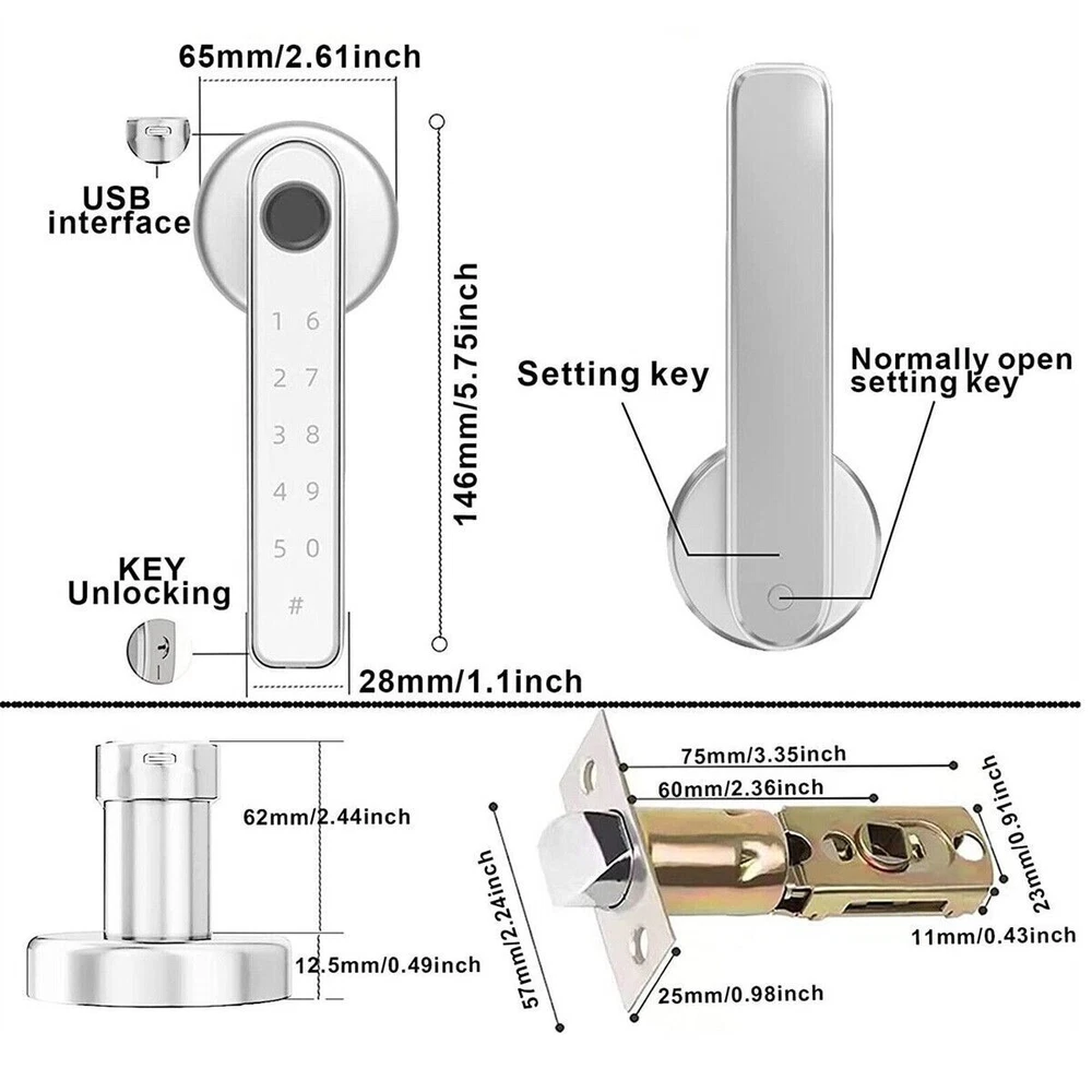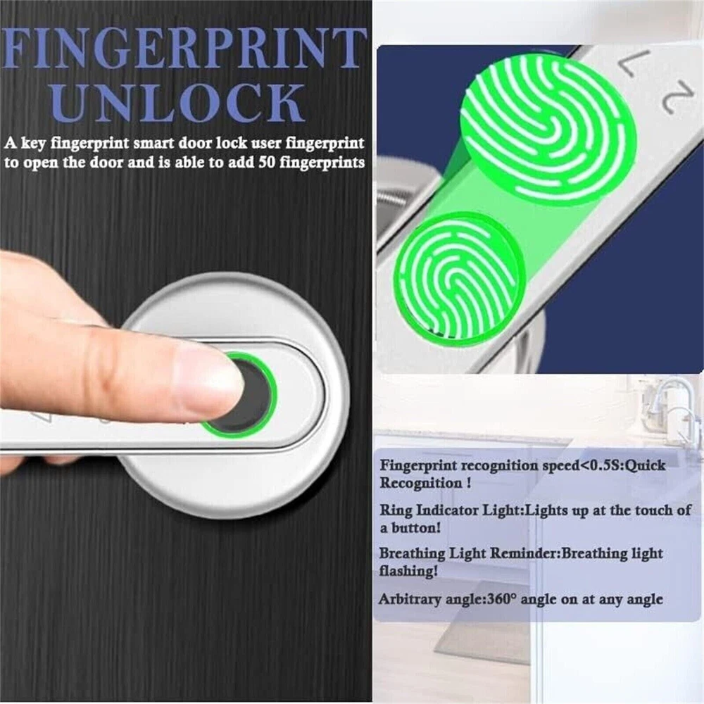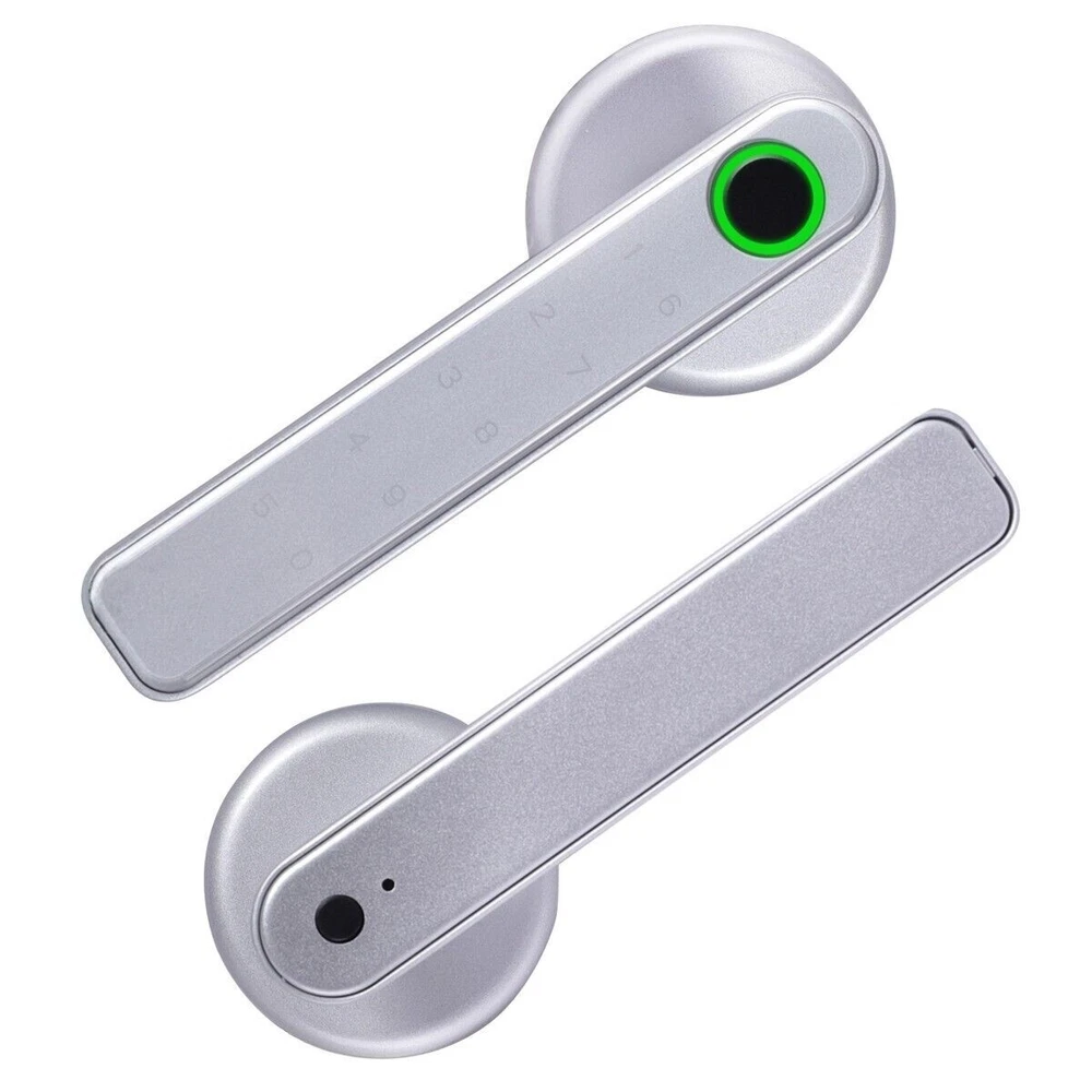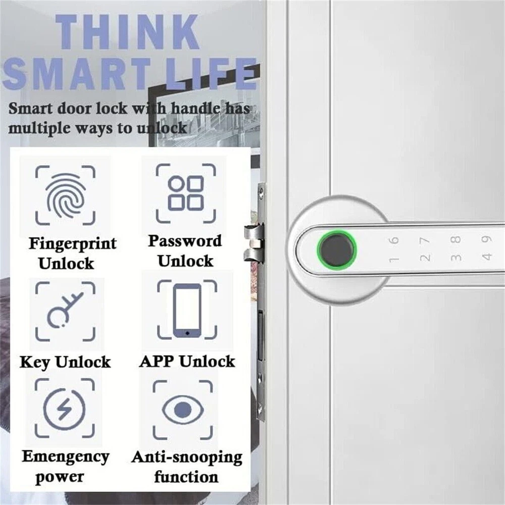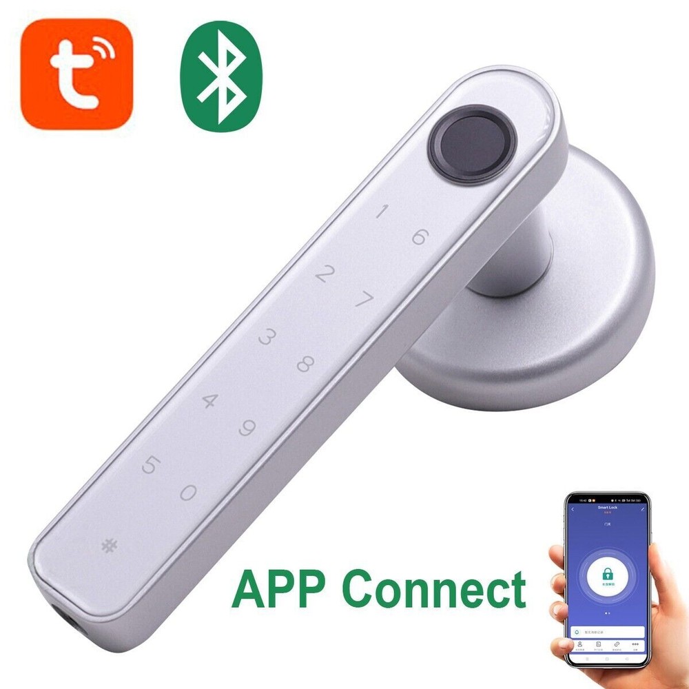 Fingerprint Smart Door Lock Biometric Door Lock With Handle & Tuya App Control Silver Password Door Locks Description Smart door lock has a fingerprint unlocking, APP unlocking, key unlocking, password unlocking four unlocking methods, is a perfect fingerprint smart door lock with handle! * Can be unlocked remotely by APP control * The temporary password can be seated to provide to visiting friends or other visitors FEATURES 4 in 1 SMART DOOR LOCK: This smart door lock has a fingerprint unlocking, APP unlocking, key unlocking, password unlocking four unlocking methods INTELLIGENT LIFE : A key Fingerprint smart door lock uses fingerprints to open the door and is able to add 50 fingerprints, and supports APP control, check the unlocking record through APP, you can set 100 passwords or set a temporary password and share it with friends, family or visitors, intelligent security technology will guard you and your family's safety! EASY INSTALLATION : The Fingerprint smart door handle door lock can be easily installed in minutes with a screwdriver, we have detailed installation instructions, very easy to install, no wiring and no drilling, fits most US doors, meets your every need! DETAILED PREMIUM DESIGN & HIGH QUALITY MATERIAL : Biometric door lock with handle is made of high quality aluminum alloy material, it is clear, smooth and easy to clean, and with classic door handle design, it also adds fingerprint lock, password lock and APP unlock function, it is the ideal choice of smart door lock for bedroom door, office, hotel, apartment! MODERN DESIGN : Hidden double row password lock, l ooks simple and modern APPLICATION This smart door lock is suitable for bedroom door, office, hotel, apartment! SPECIFICATION Material: Zinc Alloy Lock Cylinder : C-Class Single Tongue Lock Body Fingerprint Type : Semiconductor Unlocking Method : Fingerprint/Password/Keys /APP Fingerprint Capacity : 50 fingerprints, 100 passwords Gross Weight: 0.91kg/ 2lbs PACKING LIST: 1 * Set Lock Accessories for Installation TIPS: The smart door lock is suitable for wooden doors between 30-55mm , fire doors, security doors, etc. 4 AAA batteries are required for installation, when you low battery mode after the USB interface can also be used for emergency power supply, but please note that do not charge, replace the batteries again, if there are other problems feel free to consult us! - CAUTION Please allow the slight color difference caused by the shooting light and the 1-3 cm error due to manual measurement, and make sure you do not mind before ordering. -NOTES We CAN NOT deliver to the APO/FPO/PO BOX address If your address includes an APO/FPO/PO BOX address, please modify it to your home address PAYMENT eBay item number, your full name and shipping address MUST be included in the PayPal payment. All our items will be shipped to buyer's Paypal address, Please update your address in Paypal before payment. - SERVICE We accept return within 14 days after consumer receive item. And supply 1 years warranty for this item. And consumer shall be responsible for the shipping fee. On Jun 26, 2024 at 06:05:10 PDT, seller added the following information: On Jan 15, 2025 at 18:23:46 PST, seller added the following information: