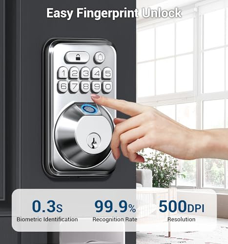 Return Policy Fast Delivery Trusted seller Fingerprint Keypad Deadbolt Lock with Wireless Doorbell - Digital Keyless Entry Door Lock with Electronic keypad - Secure Code Access, 38 Chimes Product Description 【2 in 1 Smart Fingerprint Lock & Doorbell plus one Chime】Get all at once! No extra doorbell needed. This 2 in 1 doorbell lock and chime set combines a smart fingerprint keypad deadbolt lock with built-in doorbell press key and a portable wireless plug-in ring chime with 38 chimes, 5 level of volume from 0-120db, led indicator, and 300ft wirless range. 【4 in 1 Keyless Entry Lock】Unlock with up to 20 fingerprints, 20 user codes(including a onetime pin code), or 2 physical keys depending on your convenience. Self-learning AI chip priviedes 0.3s speedy fingerprints recognition. 3 essential code types, including a master code, 20 user codes and a one-time code, ensure a simple code management experience. 【Auto Locking or One-Touch Locking】Want to leave piece of mind? With autolock mode on you can customize your auto lock time delay between 10 and 99 seconds depending on your need. Besides, you can always enjoying one-touch locking function by press press any key on keypad for only 2 seconds. 【Convenient & Secure Living】2 additional modes—Silent Mode & Vacation Mode—switch when needed for a better living experirence 【Ultra Durability & Security】 Fingerprint Keypad Keyless Entry Door Lock with Doorbell is certified BHMA, ANSI Grade 3 and IP54 weatherproof. Enduring 158℉ to -22℉ high and low temperature resistance, 200,000 Times Keypad life test, 5337N Fastening Screw Pull Test, 100J Face Plate Impact Test, and 240 Hour Salt Spray Test. 【15-Min Quick Installation】 DIY Installation can be done in a breeze with just a screwdriver,no hardwiring required. Hassle-free fit on standard residential doors(35-50mm door thickness, and 38 or 54mm door hole). Automatically identify the direction of the door, compatible with both left and right handed doors. Shipping Returns Payment Shipping Shipping is FREE to all addresses other than APO/PO boxes in the lower 48 states. All our stock ships from US-based warehouses. Shipped via USPS or UPS (depending on location and package weight) Unless stated otherwise, all orders will ship within 24-72 hours of your payment being processed. Check our feedback to see the great reviews of FAST shipping we offer. Returns Seller does not accept returns Payment We currently accept payment via eBay managed payments only. Once payment is cleared, we will dispatch your shipment within 1-3 business days. Please refer to the "Shipping" tab for more information regarding shipping speed to your destination.