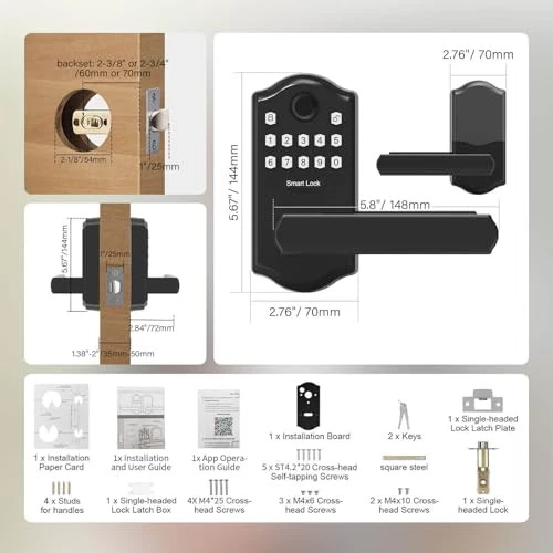 Return Policy Fast Delivery Trusted seller Keyless Entry Door Lock with Keypad, Smart Lock with Fingerprint and Door Knob for Front Door,Electronic Digital Door Lock with Handle,Easy to Install, Matte Black Product Description [Unlock Your Door with 4-In-1 Versatility] Experience unparalleled convenience and security with our state-of-the-art keyless entry door lock. Unlocking options include fingerprint recognition, personalized passcodes, Bluetooth-enabled mobile app control,mechanical keys, Enjoy the freedom to choose the unlocking method that best suits your needs and preferences [Easy Installation]: Our smart lock is designed for hassle-free installation, taking as little as 10 minutes to fit most standard American wooden front doors. The reversible handle ensures compatibility with both left and right-handed doors, simply replace the existing handle, knob, or deadbolt with a screwdriver,no additional drilling required .Voice reminders and Bluetooth-enabled mobile app make installation easier. [Exceptional Weather Resistance]: Come rain or shine, our electronic door lock stands strong. The aluminum alloy panel ensures durability in temperatures ranging from -22°F to 158°F (-30~70℃), while its IP63 waterproof rating allows it to function flawlessly in any weather. It's sunproof, waterproof, and freeze-resistant, suitable for both indoor and outdoor use, providing reliable home security [One-time Password & Anti-Peeping Code]: We've taken password protection to the next level. One-time passwords provide convenience for temporary guests, automatically clearing after use for enhanced security and efficiency. The anti-peeping virtual code safeguards your privacy - you can input any digits before and after the correct password as long as it contains the correct sequence, effectively preventing peeping [Emergency Charging] With 4pcs AA dry batteries, the smart door lock runs around 12 months, with a built-in low-battery indicator and USB Type-C emergency power port. *Battery life may vary based on usage frequency* [Worry-free ] We not only provide detailed installation guides and clear user instructions, but also provide 12-month warranty and free technical support. If you have any questions, please feel free to contact us,we will get back to you within 24 hours Shipping Returns Payment Shipping Shipping is FREE to all addresses other than APO/PO boxes in the lower 48 states. All our stock ships from US-based warehouses. Shipped via USPS or UPS (depending on location and package weight) Unless stated otherwise, all orders will ship within 24-72 hours of your payment being processed. Check our feedback to see the great reviews of FAST shipping we offer. Returns Seller does not accept returns Payment We currently accept payment via eBay managed payments only. Once payment is cleared, we will dispatch your shipment within 1-3 business days. Please refer to the "Shipping" tab for more information regarding shipping speed to your destination.