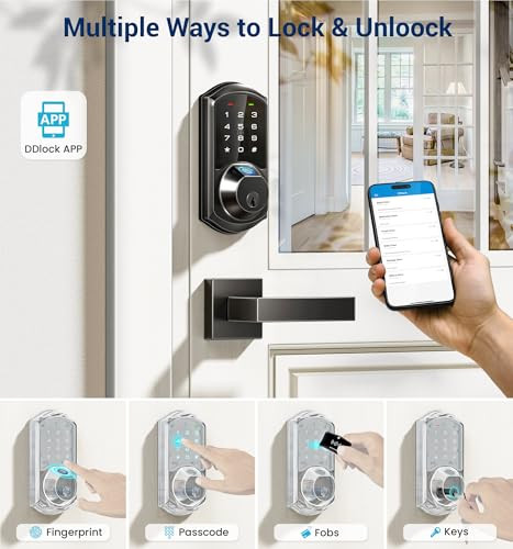 Return Policy Fast Delivery Trusted seller Fingerprint Smart Locks for Front Door with 2 Lever Handle Set, App Control, Keyless Entry, Electronic Digital Keypad Deadbolt, Auto Lock, Waterproof, Easy to Install, Matte Black Product Description Total Control: Smart Lock grants access management via fingerprint, password, fobs, keys, Apple Watch, and voice control (Requires G2 Gateway) Instant Keyless Entry: Fingerprint or IC card swiftly unlock in 0.3 s. Auto-lock in the time customized or one-touch locking, ideal for busy people and those who lock themselves out Convenience & Security: Work with DDlock App to share eKeys, manage users and set various access codes. With anti-peep code, wrong code limit to secure safety Remote Control (Requires G2 Gateway): Once connected, you can access remotely via Alexa, Google Home, and monitor in real time for ultimate peace of mind Effortless Installation: Install quickly with just a screwdriver. Compatible with standard US doors. Its chic design seamlessly complements home decor and is more duarable with weatherproof rating Reliable and Reassured: offers one-year warranty, technical support, phone service on weekdays 9 AM to 5 PM PST and 24/7 after-sales email service Note: Avoid changing master password via keypad before pairing with the app. Touch keypad to activate lock before pairing. If the app fails to connect, perform a reset Shipping Returns Payment Shipping Shipping is FREE to all addresses other than APO/PO boxes in the lower 48 states. All our stock ships from US-based warehouses. Shipped via USPS or UPS (depending on location and package weight) Unless stated otherwise, all orders will ship within 24-72 hours of your payment being processed. Check our feedback to see the great reviews of FAST shipping we offer. Returns Seller does not accept returns Payment We currently accept payment via eBay managed payments only. Once payment is cleared, we will dispatch your shipment within 1-3 business days. Please refer to the "Shipping" tab for more information regarding shipping speed to your destination.