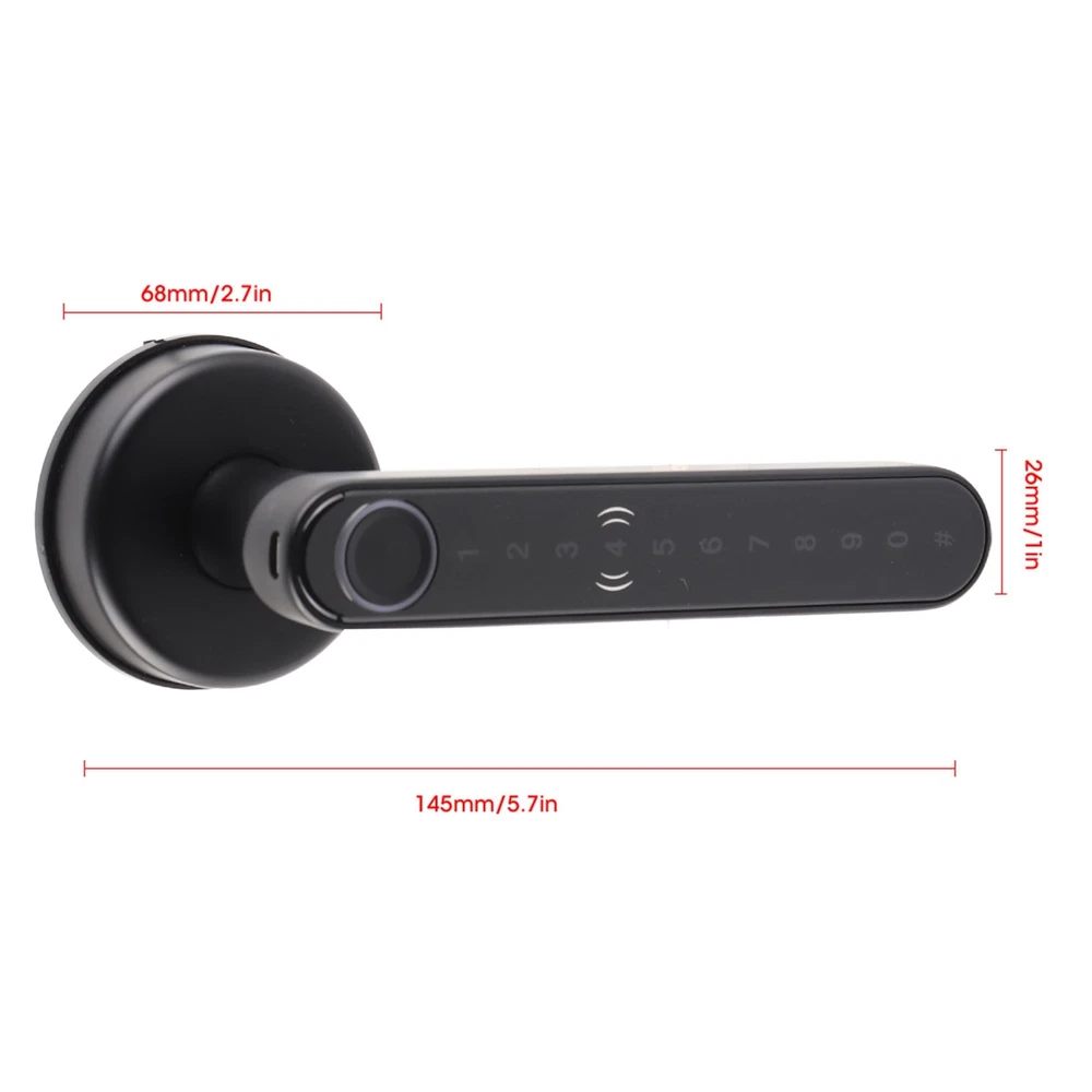 Feature: 1. Intelligent biometric lock, four unlocking methods: fingerprint, password, APP, key unlock. 2. Semiconductor fingerprint sensor, second‑speed fingerprint recognition, 360 degree self‑learning memory algorithm, extremely accurate. 3. The password handle can set a temporary dynamic password. If remote unlocking is required, one or a group of dynamic passwords can be set. After unlocking, the password automatically becomes invalid. 4. Real‑time monitoring, after the user unlocks, the administrator can find the record in the unlocking record on the APP. 5. Four AAA batteries (not included) power supply, longer standby time. USB charging port, smart charging, simple and convenient. 6. Low voltage alarm function, when the battery power is low, the smart lock will emit a low battery alarm. 7. Enter garbled characters before and after unlocking the password, as long as there is a continuous correct password in the middle, the door can be unlocked to prevent people from peeping and trying to open the door. Specification: Conditon: Brand New Item Type: Fingerprint Handle Lock Material: Zinc Alloy Color: As Pictures Shown Lock Lever Size: Approx. 145 x 26mm/5.7 x 1.0in Standard: 4.1BLE Support Mobile Phone System: Support for 4.3/for IOS 7.0 or above Fingerprint Number: 120 Number of Passwords: Custom Password: 120 groups APP Send Password: Unlimited Power Supply: 4 x AAA batteries (not included) Emergency Power Supply: USB Charging Recognition Speed: 0.5s Fingerprint Sensor: Semiconductor Service Life: >200,000 times Unlocking Method: fingerprint/password/ App/key Working Temperature: -20-70℃ Package List: 1 x Fingerprint Lock Front Panel 1 x Rear Panel 1 x Single Tongue Lock Body 1 x Lock Box 1 x Lock Catch 1 x Instruction Manual 1 x Installation Kit Bag 1 x Square Steel Bar 2 x Key Note: This product is generally only available for wooden doors, other doors need to be able to install a lock body before they can be used. 1. Our listing price includes the value of goods,packaging cost,and export taxes,not including international duties. 2. duties,taxes,and charges are not included in the item price or shipping fee. 3. T he duties are buyers' responsibility .Please check with your country's customs office determine what these additional costs will be prior to your purchase. 4. All disputes arising from the duties will be submitted to ebay for solution. 1. Any questions, pls. contact us via ebay message or email us. We will reply your message within 48 hours. If you do not receive our reply within 48 hours, pls. post a message again because sometimes our message system may block some emails. 2. If you are satisfied with our service, pls. kindly leave us a positive feedback and give us the Detailed Seller Rating with all " 5 " in very area 3. Our aim is to provide Customer Service, your recognition will encourage us greatly and serve you better. We strive to keep all our customers satisfy. We will do our up most to exceed your expectations in customer service, communication and dispatching of your orders.
