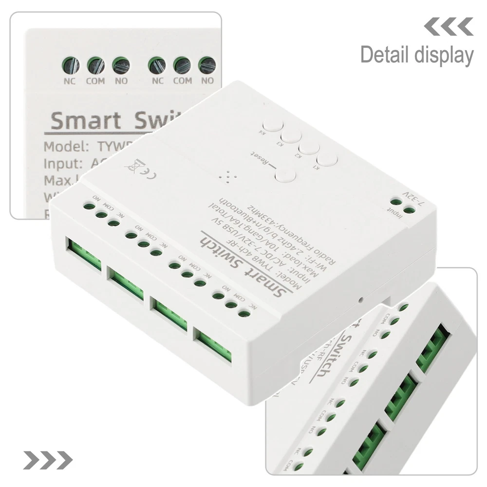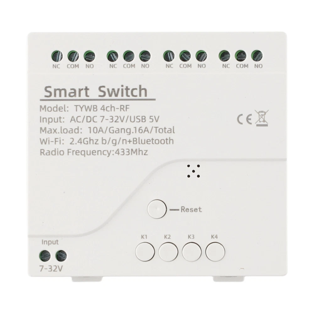 Smart For Tuya WIFI RF Control Module Switch 4CH Relay Module Switch DESCRIPTION Features: *Made of high-quality materials, sturdy and *Your smartphone or tablet is connected to 2.4G WiFi with Internet access (5G WiFi is not supported yet) *If your wireless router is set up with FOR MAC address filtering, please enter the router's background to turn off the FOR MAC filtering function. *Must be used with FOR FOR . *Supports FOR for Alexa voice control, FOR Home voice assistant control, mobile APP control and multi-language control Specification: *Input voltage: DC/AC 5-32V or AC 85-250V * USB: 5V *Maximum current: 2200W/10A *Wireless standard: FOR *RF: 433MHz *Working temperature: -20℃~70℃ *Model: 4CH DC5-32V without casing, 4CH DC5-32V with casing, 4CH AC85-250V with casing (optional) Package Included: 1X Wifi remote control module 1X User Manual Notes: 1. Due to factors such as display brightness and light brightness, the actual color of the product may be slightly different from the website picture. 2. Please allow a slight deviation between the data and the manual measurement. POLICES Shipping Payment WARRANTY We only ship to confirmed ebay Order addresses. Please comfirm that your Order address is in line with your shipping address. Please kindly note that the c ombined shipping is not provided because the shipping fee is calculated by weight. Also, the each additional item means exactly the the same color and size. It takes about 7 -15 working days to US; about 10-30 working days to other countries. Transit time may be a little delayed because of the bad weather and customs inspection . If you do not receive your item within 30 working days since payment finished, please contact us immediately for further assistance. Payment must be completed within 5 days. If you have any problems about payment, please contact us via ebay message. We strive for 100% customer satisfaction! Positive Feedback is very important to us. If you have any questions, p lease feel free to contact us via "Ask seller a question" . We will reply your email within 24 working hours. On Nov 12, 2024 at 07:12:31 PST, seller added the following information: