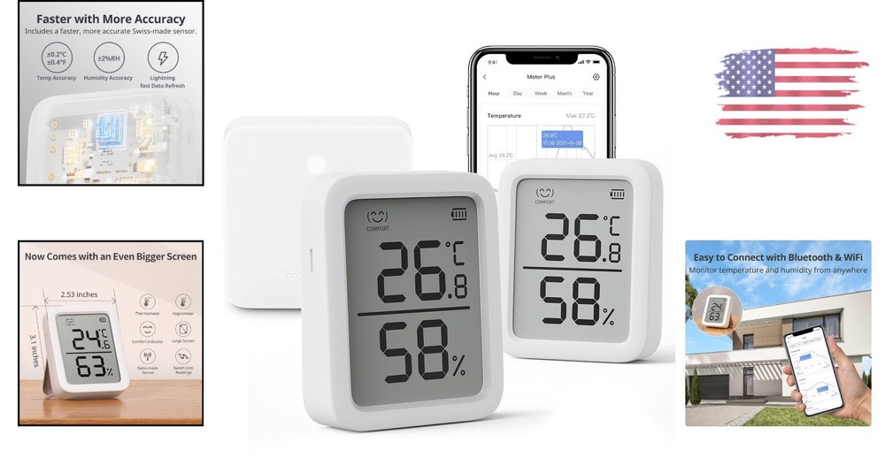 Voice Assistant Compatible Indoor Thermometer Hygrometer - Smart Home Monitoring ‹ › ‹ › ‹ › ‹ › ‹ › ‹ › ‹ › ‹ › ‹ › ‹ › ‹ › Voice Assistant Compatible Indoor Thermometer Hygrometer -Smart Home Monitoring Features: Smart Wi-Fi Temperature Sensor with Hub Mini and 2 Meter Plus devices included Built-in Swiss-made sensor for more accurate temperature and humidity readings 3-inch bold display for clear data visibility Exportable data for analysis Works with Amazon Alexa, Google Assistant, and more Can be placed anywhere with 3 angles Benefits: Check temperature and humidity remotely via app More accurate readings with Swiss-made sensor Easy to read data with bold display Store and export data for analysis Compatible with voice assistants for hands-free control Versatile placement options for various environments Why choose our Voice Assistant Compatible Indoor Thermometer Hygrometer? Take your home monitoring to the next level with our smart Wi-Fi temperature sensor. With accurate readings, a clear display, and the ability to integrate with voice assistants, this thermometer hygrometer is the perfect addition to your smart home setup. Monitor your indoor environment from anywhere and make sure your room conditions are always optimal. Don't settle for less - choose our indoor thermometer hygrometer for reliable and convenient monitoring. Upgrade your home monitoring experience today with our Voice Assistant Compatible Indoor Thermometer Hygrometer! Shipping Free & Fast Shipping - We offer free shipping to most of the USA with a normal delivery time of 3-7 days. However, due to the current situation, additional delivery time (up to 3 weeks) may be required for some items. Alternative Carriers - We may use alternative carriers (e.g. USPS, FedEx, UPS, etc.) to ensure your package arrives safely and on time. Due to the use of multiple carriers, we are unable to provide a tracking number automatically. Handling Time - Orders are processed and shipped within 1-2 business days of receiving cleared payment. Shipping Restrictions - Shipping to Alaska, Hawaii, Puerto Rico, Guam, and other US territories may incur shipping charges or delivery restrictions. Please contact us before ordering, or your order can be refunded/cancelled. State Restrictions - There may be restrictions based on your state of purchase. For example, certain items may not be shipped to California due to state regulations. Contact for Tracking Updates - If you require tracking updates or have any concerns about the delivery of your order, please feel free to contact us, and we will be happy to assist you. Return 30-Day Hassle-Free Returns - We want you to be completely satisfied with your purchase. If you are not, you can return the item within 30 days of receiving it for a full refund or exchange. Easy Return Process - To start a return, simply contact us and we will provide you with a prepaid return shipping label and detailed instructions. Restocking Fee - There are no restocking fees for returns. However, the buyer is responsible for return shipping costs if the return is not due to a seller's error. Refund Processing Time - Refunds will be processed within 5 business days of receiving the returned item in its original condition. Payment We accept all major credit cards, PayPal, and Apple Pay for your convenience. Your payment information is secure and encrypted to ensure a safe and seamless transaction. Please complete your payment within 3 days of purchase to avoid any delays in shipping. Feedback Your feedback is extremely important to us. We strive to provide the best products and customer service possible. If you are satisfied with your purchase, please take a moment to leave us a positive review. If you have any concerns or issues with your order, please contact us before leaving negative feedback. We are committed to resolving any problems and ensuring your satisfaction. Contact Us If you have any questions or concerns, please feel free to reach out to our customer support team. You can contact us through the eBay messaging system. We are available Monday to Friday, 9:00 am to 5:00 pm EST, and we will do our best to respond to your inquiry within 24 hours. Thank you for supporting our small family business!
