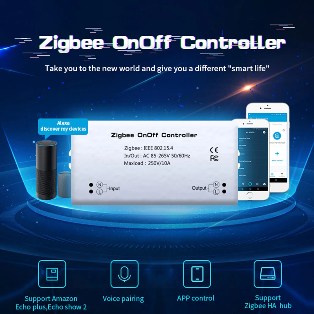 Smart Home Zigbee Wireless Switch Module For Echo/Smart Things Hub Module Features: Function: remote control, timing delay, energy saving, status feedback Direct support for alexaAPP and Samsung Smart Things APP without APP Support Smart Things Hub/Wink Hub/Zigbee HA Hub Supported smart audio: For Echo Plus/Echo Show2,/Echo dot (requires For Samsung Smart Things APP) (with HA Gateway, all for Echo series are supported.) Single volume: 92.8 × 42.2 × 23.6mm Single weight: g Housing material: V0 flame retardant material Working voltage: AC 85V~265V Working frequency: 50/60Hz Rated current: 10A Wireless frequency: 2.412~2.484GHz Wireless IEEE Standard: IEEE 802.15.4 Self-power consumption: ≤0.3W Working conditions: temperature -30~60°C Product include: 1 X Smart Module