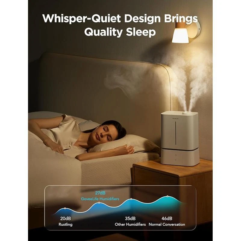 You may also like Simple Design Computer Writing Desk W/ Shelves Durable Compact Easy Assembly New 36.11 USD 38.01 USD Free shipping 5% off Eco-Friendly Computer Desk W/ CPU Shelf Two Drawer Storage Home Office Portable 39.01 USD 41.06 USD Free shipping 5% off Machine Washable Non Slip Kitchen Rugs Set Absorbent Floor Mats Entrance Hallway 74.44 USD 78.36 USD Free shipping 5% off Cordless Angle Grinder 18V Battery Powered Metal Tool Adjustable Handle Green 55.09 USD 57.99 USD Free shipping 5% off 73 Compartment Tool Storage Box Organizer W/ Trays Durable Plastic Structure New 26.27 USD 27.65 USD Free shipping 5% off Luxury Bath Sheet Set 2 Soft Absorbent Cotton Terry Towels Hotel Quality 35x66In 129.15 USD 135.95 USD Free shipping 5% off Wood Jewelry Display Riser Set 5pcs Hexagon Stand Rings Necklaces Earrings New 42.15 USD 44.37 USD Free shipping 5% off 3-In-1 Coat Rack Shoe Bench Organizer 9 Hooks Storage Industrial Easy Assembly 69.44 USD 73.09 USD Free shipping 5% off Pentero 29 Inch Tall Fireclay Pedestal Bathroom Sink Stand Modern Fixture New 75.05 USD 79.0 USD Free shipping 5% off Touchscreen 2-Slice Toaster Quick View Function 30 Sec Control Sleek Design New 51.16 USD 53.85 USD Free shipping 5% off Carbon Steel Non-Stick Stir Fry Pan/Wok Easy Clean Soft Handle Healthy Cooking 27.81 USD 29.27 USD Free shipping 5% off Stainless Steel 2-Slice Toaster LCD Countdown Defrost Reheat Bagel Functions New 67.01 USD 70.54 USD Free shipping 5% off About this item Auto Humidification Control: This bedroom humidifier has a built-in high-precision temperature & humidity sensor, which detects the surrounding temperature and humidity in real time, and automatically adjusts humidification based on set target humidity. Convenient Voice & App Control: Compatible with smart assistants such as Alexa and Google Assistant, this humidifier offers complete the setup with just one sentence, all while freeing your hands. Control remotely with the APP. Large Capacity & Efficient Humidification: The 4. 5L water tank with top-fill design not only provides up to 40 hours of humidification, but also makes cleaning and water refills easier. The 300ml/h max mist output helps reach target humidity faster. 2-in-1 Scent Diffuser & Humidifier: This humidifier features a scent box at the base. Just a few drops of your favorite scent helps to relieve stress and freshen up the home. Multiple Mode Options: Auto mode adjusts humidity based on the set target, while Manual mode follows the set level. Sleep mode promotes restful sleep by shutting off any lights and using science to nudge you to sleep with humidification. Brand GoveeLife Special Feature Night Light, Adjustable Humidity Control, Auto Shut Off, Leakproof, Aroma Diffuser Color White Filter Type Pre Filter Floor Area 370 Feet Capacity 4. 5 Liters Runtime 40 hours Material Acrylonitrile Butadiene Styrene Power Source ac_dc You may also like Simple Design Computer Writing Desk W/ Shelves Durable Compact Easy Assembly New 36.11 USD 38.01 USD Free shipping 5% off Eco-Friendly Computer Desk W/ CPU Shelf Two Drawer Storage Home Office Portable 39.01 USD 41.06 USD Free shipping 5% off Folding Bar Stools Set of 2 Heavy-Duty Indoor Compact Chairs W/ Padded Seats New 47.45 USD 49.95 USD Free shipping 5% off Retro Wooden Toy Chest Storage Bench Safety Hinges Easy Access Organizer Greige 69.48 USD 73.14 USD Free shipping 5% off 90°/180°rotatable Extension Pole Cordless Pole Saw 3.87-6.72 Foot Telescoping US 75.99 USD 79.99 USD Free shipping 5% off Cast Aluminum 10-In Fry Pan Nonstick Dishwasher Oven Safe Kitchen Essential New 27.94 USD 29.41 USD Free shipping 5% off 3 Pcs Black Jewelry Bust Display Stand Necklace Holder Mannequin Organizer New 39.88 USD 41.98 USD Free shipping 5% off Three-Light Indoor Island Pulley Pendant Vintage Industrial Metal Fixture New 164.48 USD 173.14 USD Free shipping 5% off Digital 2-Slice Toaster Touch Display Defrost Bagel High-Lift Easy Eject Kitchen 36.45 USD 38.37 USD Free shipping 5% off Airtight Kitchen Food Storage Containers 8 Pack Easy Lock Lids Organization Set 32.29 USD 33.99 USD Free shipping 5% off Solar LED Path Lights 20 Lumen Outdoor Landscape Lighting Eco-Friendly 2-Pack US 24.85 USD 26.16 USD Free shipping 5% off Ice Maker Assembly Kit IM116000 Refrigerators Appliance Repair Genuine Parts New 87.23 USD 91.82 USD Free shipping 5% off