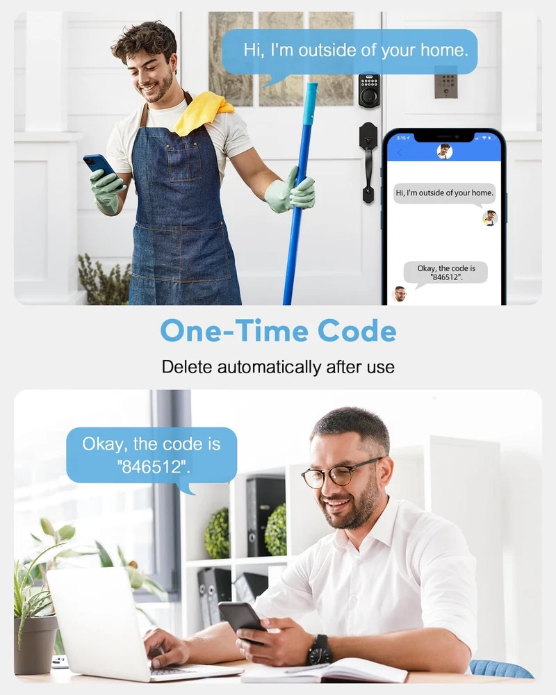 Features . 2 Access Methods: Keypad/key. -. Applies to Left-hand door and right-hand door. -. Add/Delete user’s code individually. -. Temporarily disable user code. -. One-time user code available. -. System will shut down for 45s if wrong user codes are entered over 5 times consecutive. -. Power efficient design and low battery alarm. -. Deadbolt Detection: Keypad deadbolt with auto latch bolt locking detection prevents any incomplete door locking, and the lock. Specification Power supply: 4 x AA Batteries Password: 4 to 10 digital Number of Users: 20 sets of user code, 1 set of master code Material: Stainless Steel Stamping (Exterior), Plastic (Interior) Latch: 2.34 or 2.76 inch, 60 or 70 mm Door Thickness: 1.37 to 1.77 inch, 35 to 45 mm Package Includes 1 x Electronic Keypad Deadbolts 1 x Handle set 1 x Instruction manual 1 x Door hole diagram Keyless Entry: This keypad deadbolt provides 20 access codes for family members and a temporary code for the one-time guests. This is the best solution for Airbnb, vacation rentals or family homes. Auto-Locking: The Anti-peeking password feature ensures your home security, Automatic lock or one-touch-locking effectively avoids the incomplete lock. This keypad door lock allows you to set automatically lock in 10-99 seconds or apply 1 touching motorized locking, so you never have to worry about leaving your door unlocked. Easy Installation - front door lock set comes with adjustable latch to fit most standard door preparations, including necessary hardware components. You can install it easily with just a head screwdriver. Stylish Design: This digital lock adds taste to your building with its unique shape lock and high-quality atmospheric handle combination. You won't need to buy an extra door handle. Built to Last: With a sturdy zinc alloy, Electronic Keypad Deadbolt was tested to handle the comings and goings of a busy household for over 30 years. Its IP65 rating makes it weather-resistant to keep your front door protected, no matter rain or shine. Customer Service: offers a 30-day customer commitment, along with a 1-year product support on all parts, lifetime phone support from Monday to Friday 9 AM to 5 PM PST, and 24/7 after-sales email service