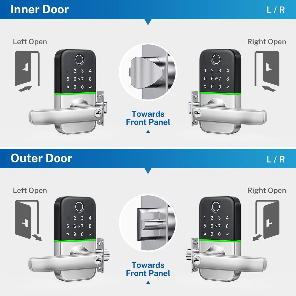 🔥【Easy DIY Installation】Easily upgrade your front door, experience hassle-free installation with just a screwdriver in 10 mintues– no additional drilling or specialized tools needed. Its compact design seamlessly allow to quick replace your door levers, knobs, deadbolts, or locksets. The reversible handle fits for both left and right door opening. 🔥【Multiple Keyless Access】Enjoy fingerprint + pin code + smartphone app + key fob + mechanical keys, what's more, you still can use Alexa voice (Wi-Fi Gateway required) and remote unlock (Wi-Fi Gateway required) for your door. This multifunctional smart lock provides personalized access for your children, elderly family members. Versatility at its finest! 🔥【Effortless App Control】 Command your exterior door from your phone. Authorize permissions for family or friends by app. Generate one-time or permanent code remotely. Real-time access tracking keeps you in the loop even you're outside. Auto lock feature keeps your back always safe. 🔥【Multi-Property Management】Elevate property management with an integrated free-for-life NICE DIGI app that offers convenient control of all your smart locks. Perfect for Airbnb hosts, apartment rental managers, and self-housing residents, it provides a hassle-free solution for landlords with multiple properties. 🔥【Secure Peace of Mind】Elevate your home security with the smart door lock. Enjoy a lifetime of free app access, backed by 30-day money-back guarantee, 1-year product warranty, and lifetime after-sales support from the date of purchase. Don't compromise on your safety——get the best-in-class protection today.