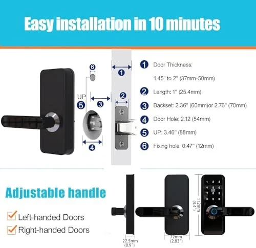 Menu 1. We require immediate payment. 2. We currently accept payment via eBay managed payments only. 3. Once payment is cleared, we will dispatch your shipment within 1-3 business days. Please refer to the "Shipping" tab for more information regarding shipping speed to your destination. Door Lock with Keypad, Keyless Entry Door Locks for Front Door, Bedroom, Fingerprint Smart Lock Deadbolt, APP Control, Easy Installation Product description 5 Ways to Unlock, Convenient & Secure: Fingerprint+ App +Passcode+Fob keycard+Mechanical Key. No more fumbling for keys! Fingerprint recognition is fast and accurate, while the keypad provides a reliable backup. Traditional key and card access offer added convenience for guests or emergencies. This smart lock can be installed securely in minutes—simply drill one small hole for added stability and use a screwdriver to finish the setup effortlessly. Using 4 AA batteries(not included), the battery life is up to 1 year. Low battery alerts remind you to replace them in time, ensuring uninterrupted security. Ideal for Homeowners & Rental Hosts: offering keyless entry, remote access, and temporary passcodes. Easily manage property access from anyw—no physical keys needed. Ideal for short-term rentals or multi-unit properties, they combine security and convenience for hassle-free living. Upgrade today! Effortless Access Control via App: Manage access seamlessly with our user-friendly app. Assign permanent or temporary access to family, create one-time codes for guests, and monitor unlock logs—all from your smartphone. Stay connected and in control, anytime, anyw. Sleek Design, Fits Any Home: This smart lock features a modern, minimalist design that complements any door style. Its compact size and stylish finish add a touch of sophistication to your home’s entrance. Notes: 1. Please scan the QR code put in the box to connect to the lock. (Each lock has a unique ID, and the QR code is included inside the packaging.) 2. When linking the smart lock with the APP, press the S button to confirm (the S button can be found after removing the battery cover). 3. If you lose or change your phone, please do not worry, refer to the instruction manual to use the S button to restore the lock to its factory default PLEASE MESSAGE US IF YOU HAVE ANY OTHER QUESTIONS, AND MANY THANKS FOR READING ALL OF THIS. Copyright ©#. All Rights Reserved.