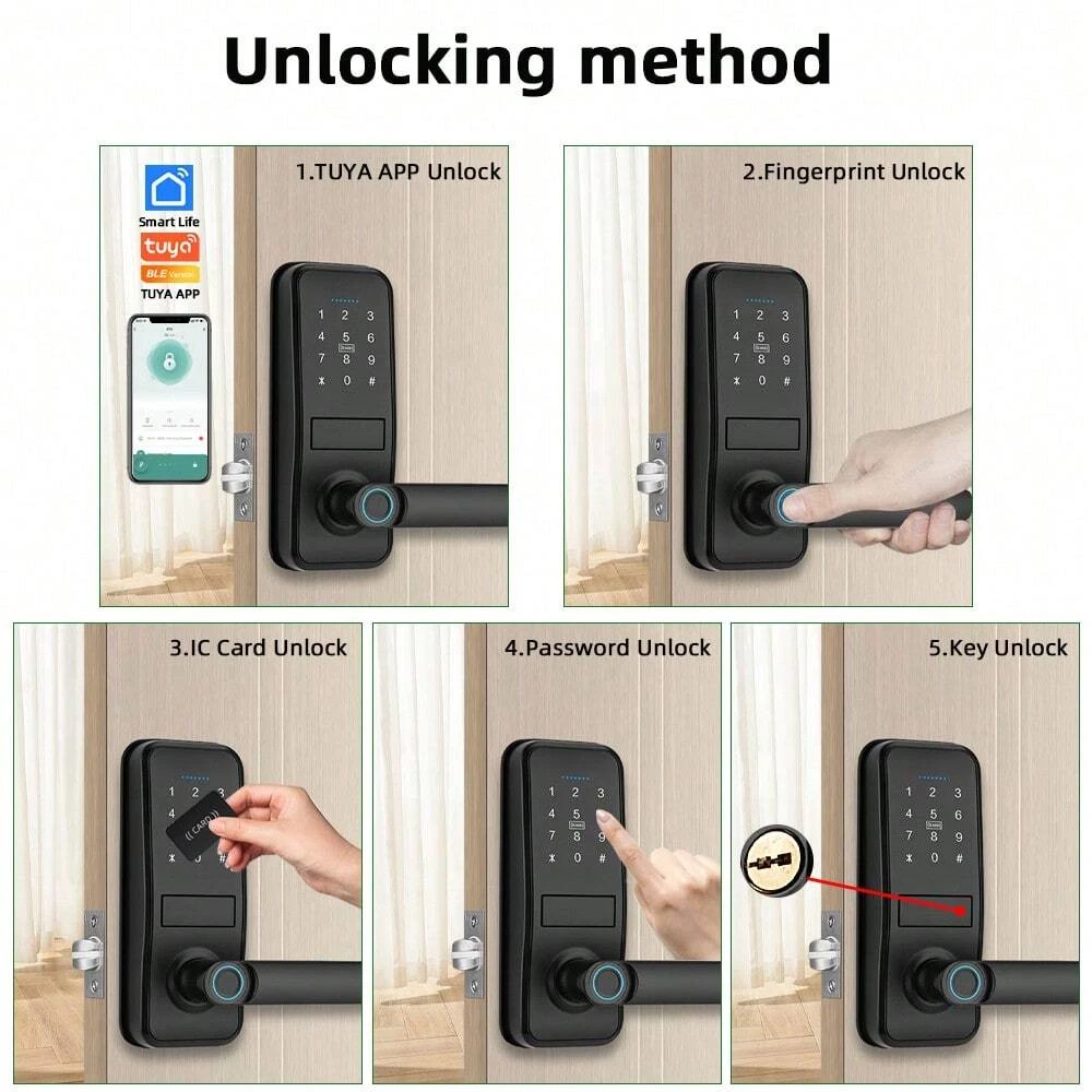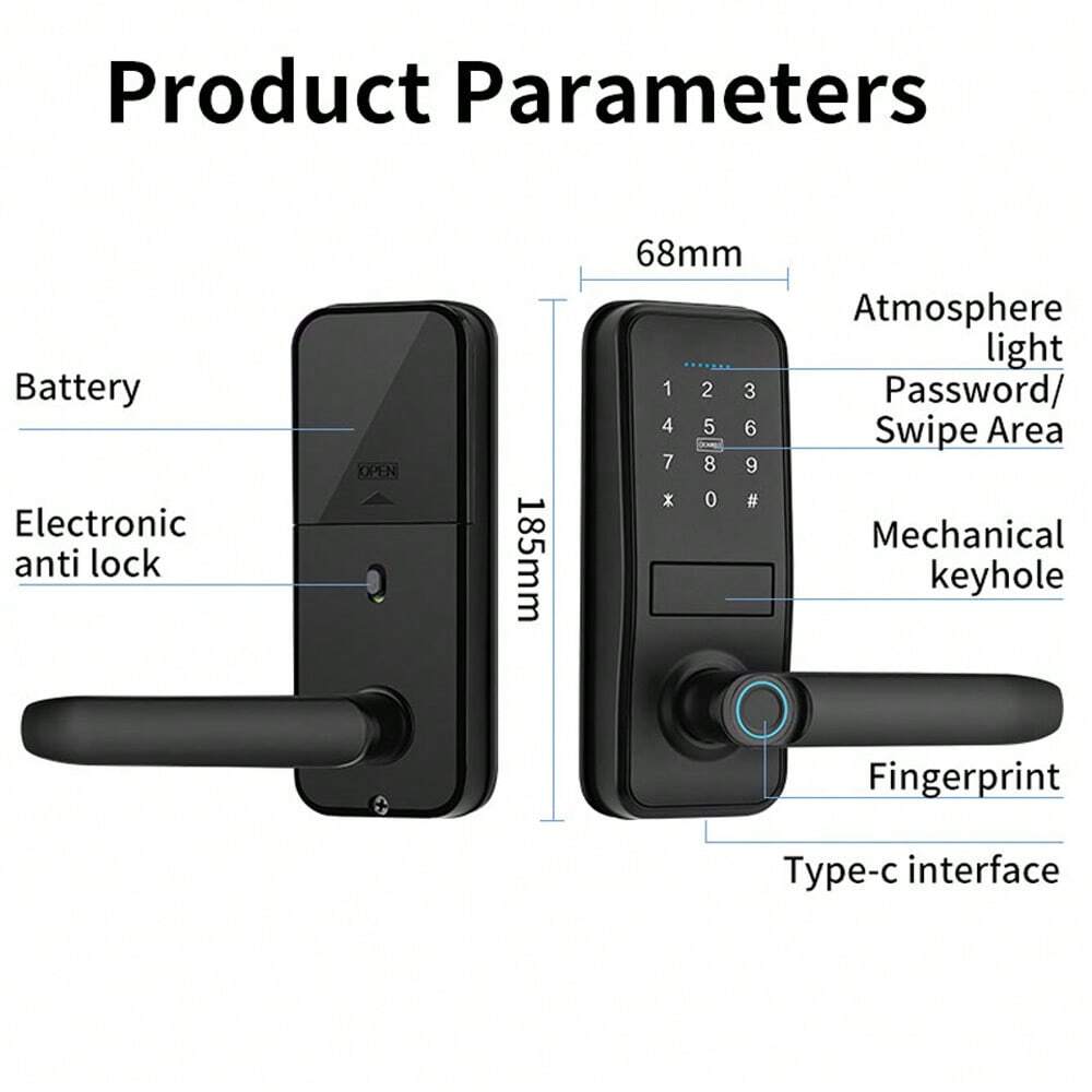 Easy to install, various unlocking methods, support fingerprint unlocking, password unlocking, APP unlocking, key unlocking Purchase Notes 1: Supports connecting TUYA gateway and Zigbee gateway. If you connect to the gateway, you can unlock it remotely and push unlock notifications in real time. 2: If there is no gateway, you can only unlock it at close range (you need to purchase the gateway separately, we do not provide it) 3: Before purchasing, please check the size parameters and whether the lock body specifications are suitable for your door Power Supply: Battery Powered(Others Battery) Material: Iron Batteries Included: No