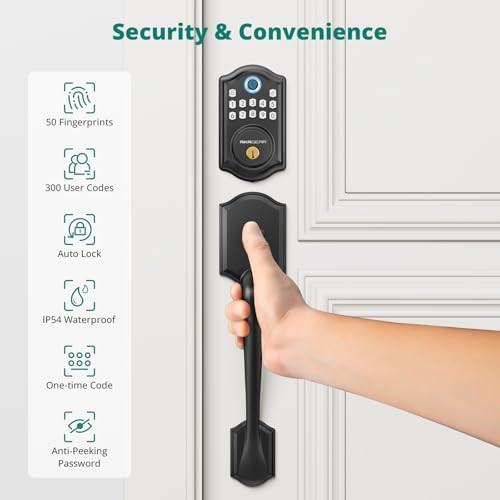 Menu 1. We require immediate payment. 2. We currently accept payment via eBay managed payments only. 3. Once payment is cleared, we will dispatch your shipment within 1-3 business days. Please refer to the "Shipping" tab for more information regarding shipping speed to your destination. Keyless Entry Door Lock with Handle Set- Fingerprint Door Lock, Electronic Keypad Deadbolt, Smart Lock for Front Door, Auto-Lock & One Touch Locking, Easy Installation - Matte Black Product description Multiple Unlocking Options: This keyless entry door lock solves the problem of being unable to open the door due to forgetting keys. You can use your fingerprints, electronic passwords, or backup keys to unlock, which is very convenient. Secure Fingerprint Unlock: The biometric fingerprint identification technology enhances security and allows users to unlock the door in one second without keys or cumbersome passwords. The smart door lock can store up to 50 user fingerprints, recognizing your fingerprint in just 0.3 seconds for effortless unlocking within 1 second. User-Friendly of Keyless Entry: 's DS10 fingerprint smart door lock handle set offers unparalleled convenience and security features. With up to 50 user fingerprints and 300 access codes, create temporary codes for guests. Additionally, it comes equipped with two spare keys for family members, further enhancing accessibility and peace of mind. Convenience and Security: Easily lock the door with a button without a key, streamlining the locking process. Set the automatic locking to activate within 5-59 seconds, ensuring property security even if manual locking is overlooked. Long Battery Life & Backup Power: With low power consumption, 4 AA batteries can operate for a year or up to 7,000 cycles, eliminating the need for frequent battery changes and saving time. The door lock features a low-battery alert. If the lock runs out of power, simply recharge it with backup power. Note: 4 AA batteries are not included. Voice Guidance: The DS10 smart door lock handle set enhances traditional operation guides with the addition of voice guidance functionality. This innovative feature provides clear instructions to help users unlock or adjust settings accurately. By offering this capability, users can swiftly and precisely set up and operate the door lock, improving their overall user experience. Additionally, if the user finds the voice prompts too loud, they can easily disable this feature according to their preferences. Easy to Install: With just a screwdriver, set up your lock in a few minutes for all US standard left and right-handed doors. No need to select the correct version; automatic recognition s seamless operation without manual adjustments. PLEASE MESSAGE US IF YOU HAVE ANY OTHER QUESTIONS, AND MANY THANKS FOR READING ALL OF THIS. Copyright ©#. All Rights Reserved.