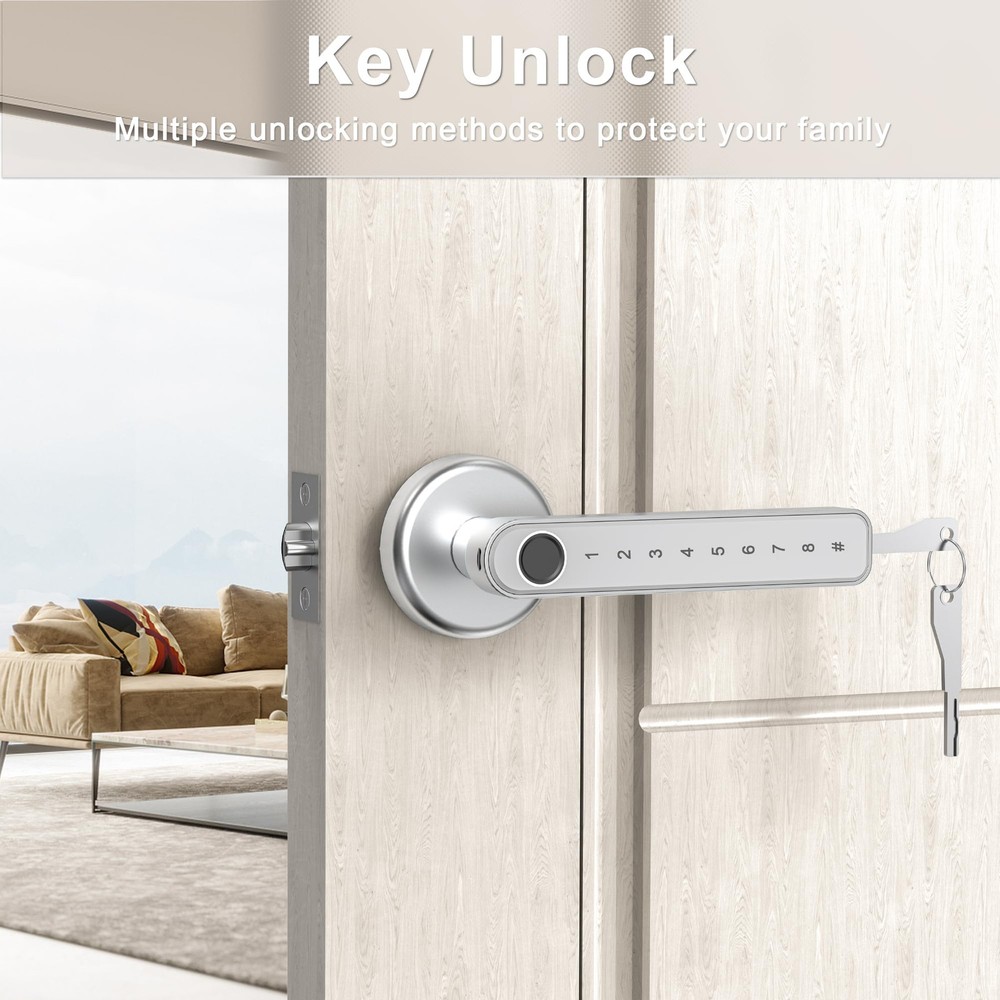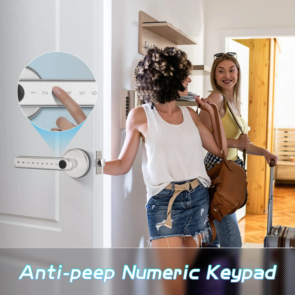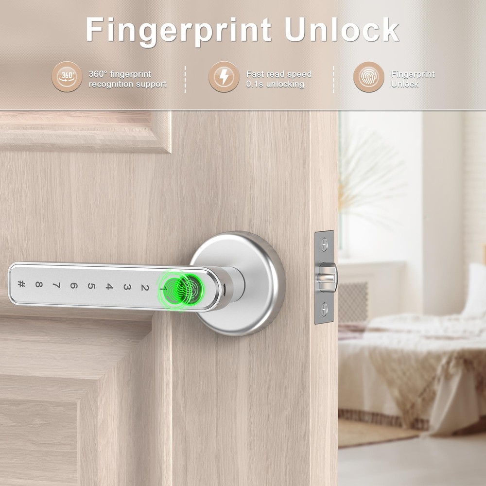 This smart door lock is a game-changer! Super easy to install with no wiring needed, and it works perfectly on standard US doors. Love the fast fingerprint recognition—unlocks in just a second! No more fumbling for keys, and the anti-peep password adds extra security. Super convenient with multiple unlock options, and it stores up to 50 fingerprints. Highly recommend for hassle-free, keyless entry!