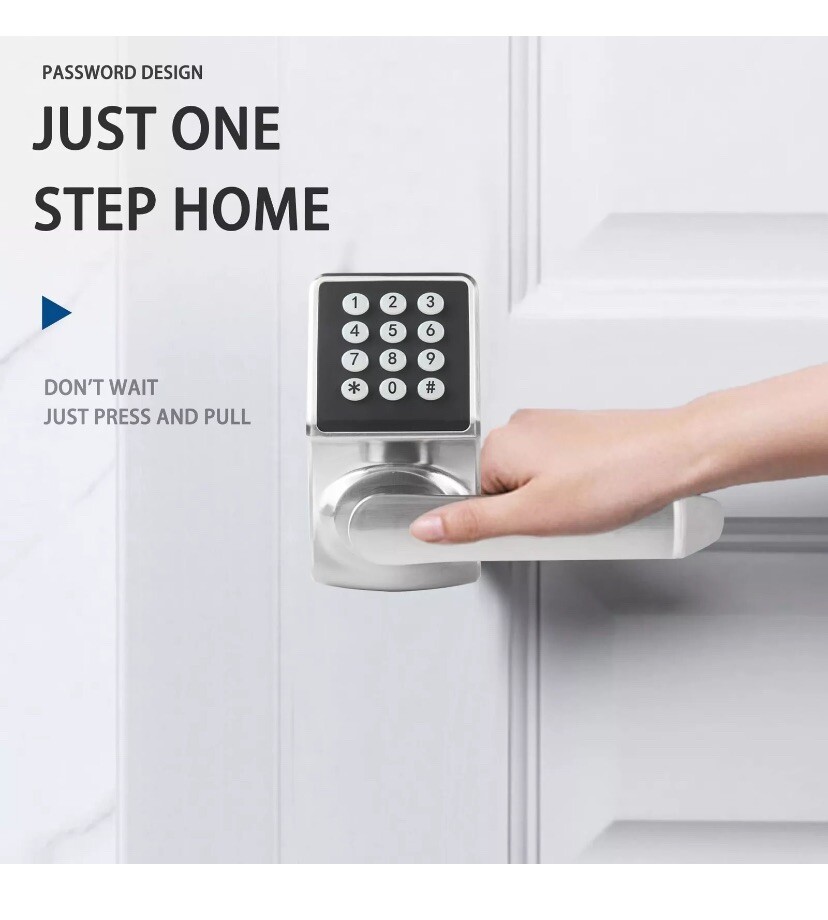 Control Access: This electronic door lock can setup 1 admin code+20 one-time code +78 user code. Grant access, and revoke them again whenever you need to. It’s up to you. Smart Reminder: digital door lock with keypad set will remind you to replace the battery. if worried about forgetting to replace the batteries, keypad door lock with a type-c interface enables connecting an external power bank for emergency power supply; also low battery indication will notify you when the batteries are getting low 3-in-1 Electronic Door Lock: Passcode + Key Fob + Emergency Key.After somebody enter incorrect passcode 6 times, this digital door lock will be automatically locked for 1 minute and anti peep pass code support. Longer Lifespan & More Reliable: Both the front and back panel of this keyless entry door lock with handle are made of Zinc Alloy, Anti-impact & suitable for harsh environments. ( Waterproof Level: IP65; Operating Temp Range: -20℃~70℃ ), customer support following the date of purchase. EASY INSTALLATION: All it need is just a small screwdriver, about 15 minutes you can install the digital locks for doors. Compatible with exterior doors where keyed entry & Fits most standard residential door (the door thickness of 1.3 inch to 2.04 inch).