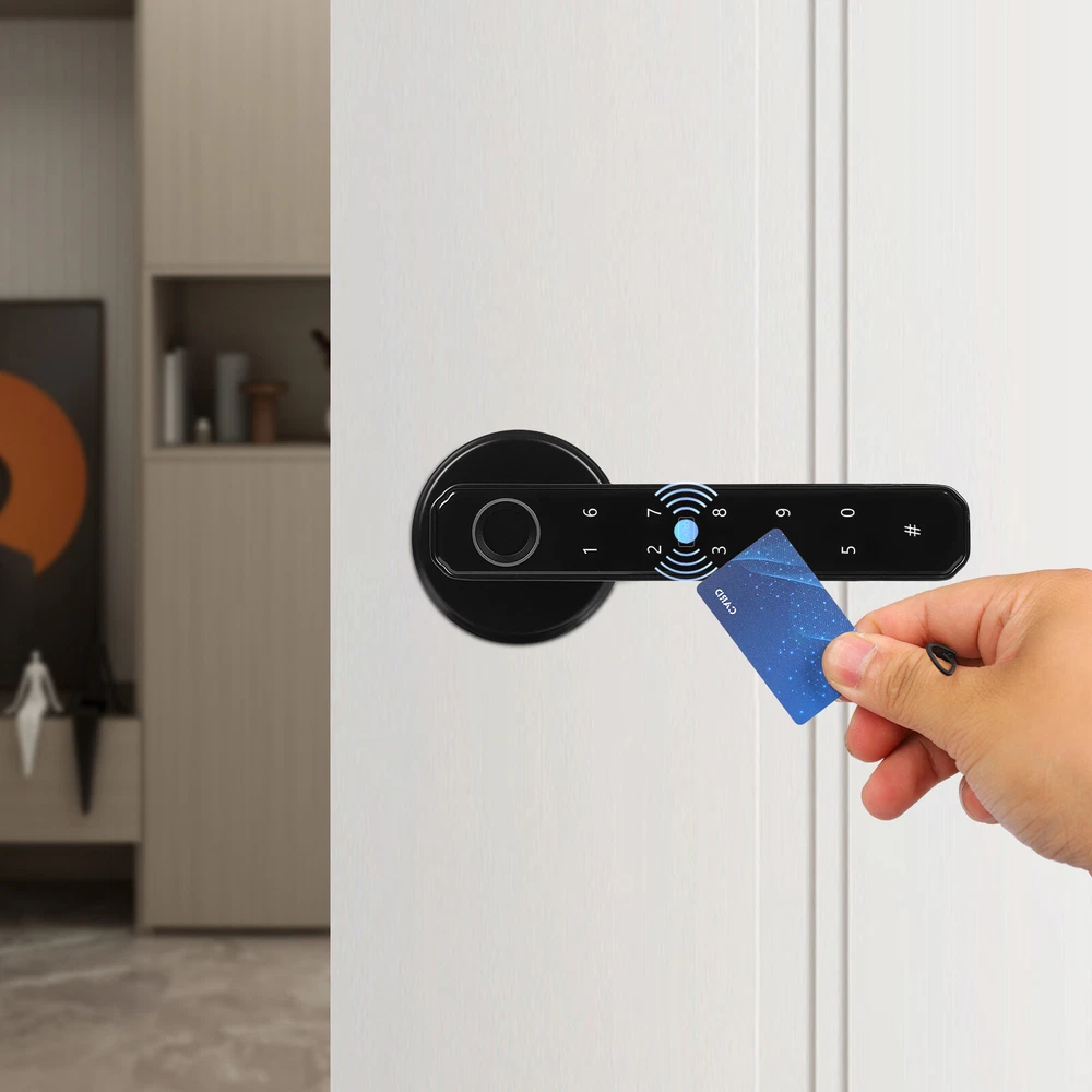 Specifications Process: Painting Material: Aluminum Alloy Number of Door Tongue: Single Tongue Unlock Method: Fingerprint, Password, IC Card, Bluetooth, Key Emergency Power Supply: Type-C Interface Assembly Required: Yes Power Source: 4*AAA Batteries User Support: 1 Administrator, 99 Common Users Applicable Door Thickness: 35-55mm/1.37-2.17in Storage Capacity: 200( Including Passwords, Fingerprints, and Cards ) Unlocking Times: >100000 Times Service Life: 90000 Times Scanning Time: <0.2s Recognition Rate: <0.0001% Rejection Rate: <0.01% Working Temperature: -20°C~60°C/-4℉~140℉ Working Humidity: 20-93% Base Diameter: 6.5cm/2.56in Handle Size: 15*2.8cm/5.91*1.1in Package Included 2* Handles 1* Lock Cylinder 2* IC Cards 2* Keys 1* English Manual All Accessories for Assembly Description Application This product is suitable for homes, apartments, offices, etc. The applicable installation door thickness is 35-55mm. Specifications Colour: Black Process: Painting Material: Aluminum Alloy Number of Door Tongue: Single Tongue Unlock Method: Fingerprint, Password, IC Card, Bluetooth, Key Emergency Power Supply: Type-C Interface Assembly Required: Yes Power Source: 4*AAA Batteries User Support: 1 Administrator, 99 Common Users Applicable Door Thickness: 35-55mm/1.37-2.17in Storage Capacity: 200 ( Including Passwords, Fingerprints, and Cards ) Unlocking Times: >100000 Times Service Life: 90000 Times Scanning Time: <0.2s Recognition Rate: <0.0001% Rejection Rate: <0.01% Working Temperature: -20°C~60°C/-4℉~140℉ Working Humidity: 20-93% Base Diameter: 6.5cm/2.56in Handle Size: 15*2.8cm/5.91*1.1in Package Size: 22*18*8cm/8.66*7.09*3.15in Gross Weight: 0.95kg/2.09lbs Net Weight: 0.8kg/1.76lbs Package Included 2* Handles 1* Lock Cylinder 2* IC Cards 2* Keys 1* English Manual All Accessories for Assembly Description The fingerprint smart door lock adopts advanced technology to ensure your home and office are safe and secure. It is made of aluminum alloy with a painting process , with a stylish appearance, reliable quality, and high anti-theft performance. It can be unlocked by the fingerprint, password, key, and so on. Our product is simple to operate and easy to maintain. It is a protective barrier in your home and gives you peace of mind. Key Features Built to Last: The products are mainly made of aluminum alloy with a painting process, so they have high hardness, strong abrasion resistance , good anti-rust performance, and long service life. Multiple Opening Methods: This product provides you with multiple authentication methods ( fingerprint, password, IC card, Bluetooth, and key ), which improves security and reliability while allowing for easy opening. With it, you no longer have to worry about forgetting your keys and therefore not being able to enter your home. High Security: Compared with traditional mechanical locks, it is equipped with more sophisticated encryption technology (the keypad will be locked for 3 minutes after 5 consecutive incorrect passwords are entered), thus effectively preventing unauthorized intrusion. In addition, this product has a password anti-snooping function and supports fake password operation. It is also possible to set a single password, temporary password, cycle password and permanent password on the application program as needed. Large Storage Capacity: This smart lock can store up to 200 passwords(including passwords, fingerprints, and cards) , so whether you use it at home or in the office, you can accommodate multiple people using it at the same time. This is very convenient and efficient. Precise Identification: The product adopts advanced fingerprint identification technology with a rejection rate of less than 0.01%, and it takes only 0.2s to unlock and supports over 100,000 unlocks. Stylish Appearance: The classic black color and simple style make it stylish and it will look great on most doors. Easy to Install: The simple product structure, complete installation parts, and an English manual can help you install it quickly and easily. Ideal Gift: With a beautiful appearance and practical performance, it is a great surprise for your family, friends, or loved ones. Buy with Confidence: We stand behind all our guests and look forward to assisting you with your purchase. It is our pleasure to answer your confusion and questions. The end of the story between us is not "we sell and you buy". Details Ergonomic Handles: They are designed with ergonomic and smooth lines to give you a comfortable grip. 2 Keys: It comes with two keys, so you can easily carry one while leaving the other at home to prevent the inconvenience of losing keys. Low Battery Alarm: When the battery is t oo low, it will remind you to replace batteries in time. Emergency Power Port: The Type-C port can be used as a backup power port, allowing you to unlock the lock even if you forget to replace the battery. Notes Please check the product size and your door size before purchasing. Please read the instructions carefully before use. We sincerely recommend professional installation. Please allow the slight color difference caused by the shooting light and 1-3cm error due to manual measurement, and make sure you do not mind before you order. Payment Delivery details Terms of sales About us Contact us Payment We accept ebay payment 。 Fees such as import duties, taxes are not included in the item price or shipping costs. These charges are the buyer's responsibility. Delivery details Shipping: 2-9 working days to: USA Terms of sales We maintain high standards of excellence and strive for hundred percent customer satisfaction. Feedback is very important to us. We hope that you contact us immediately before you give neutral or negative feedback, so that we can address your concerns. It is impossible to address issues if we do not know about them! About us Your satis faction is our ultimate goal. We work hard to earn your trust and future business. Our certified technicians have tested each item 